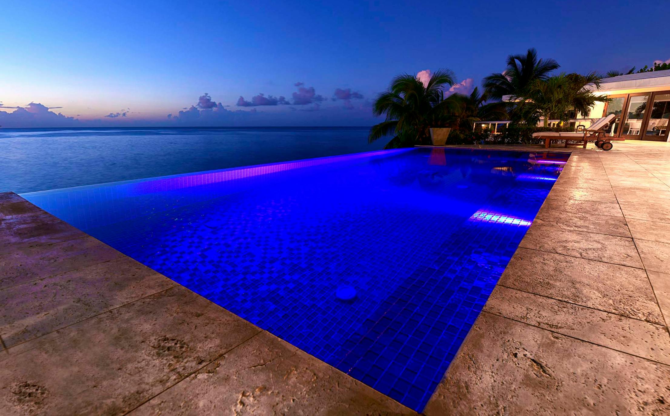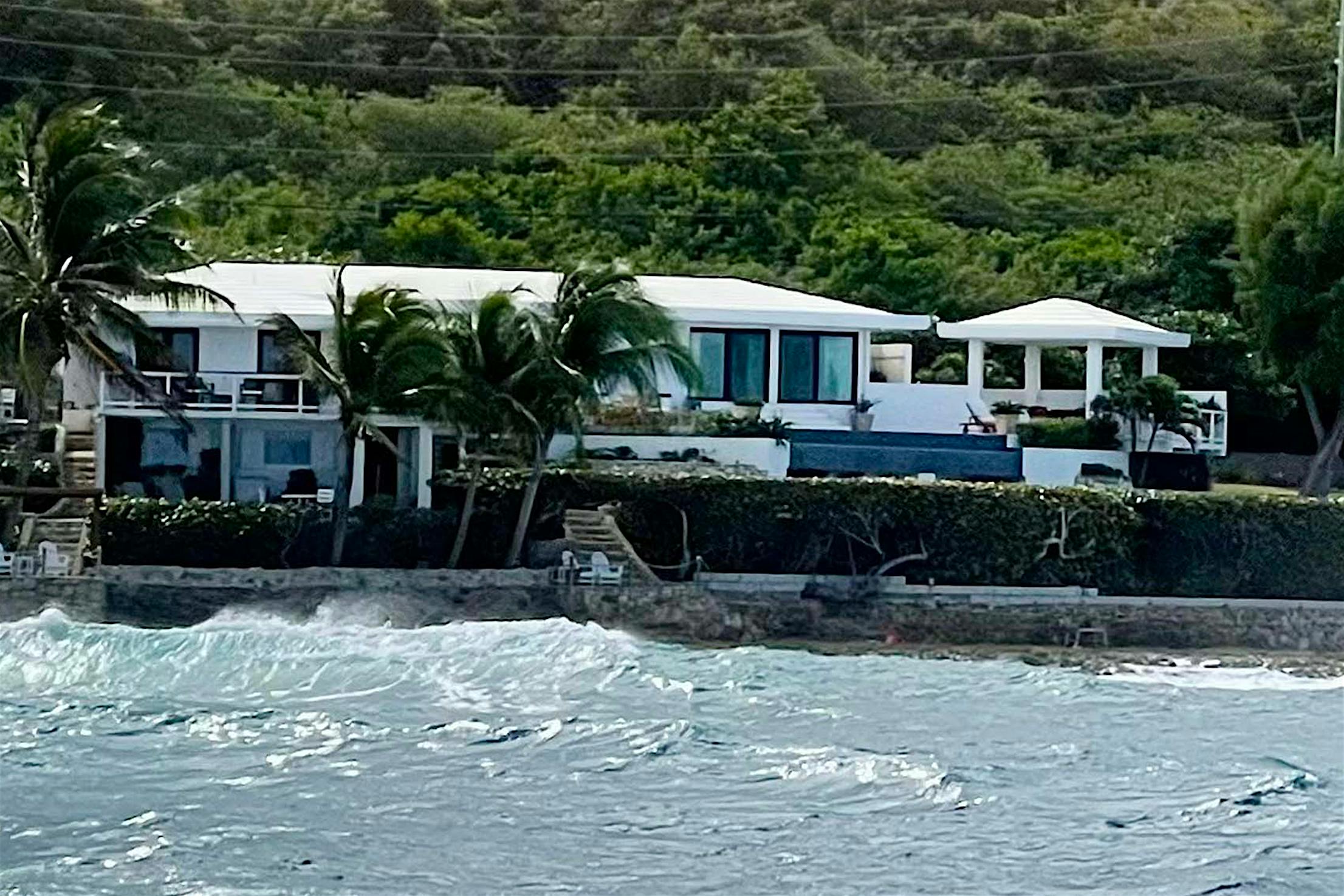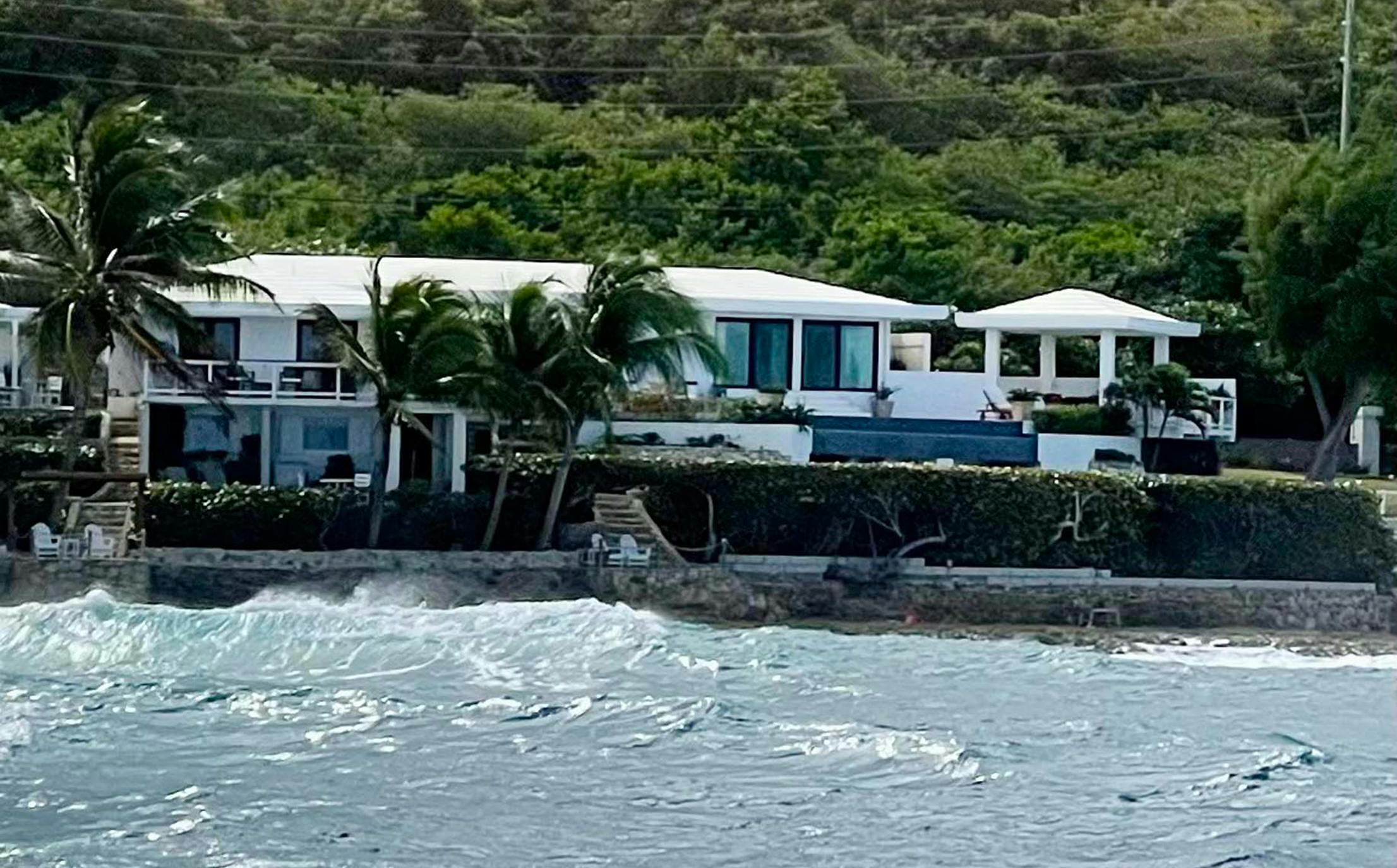Framing the calming waters of the Caribbean Sea, a disappearing folding glass door opens this US Virgin Islands home to peaceful relaxation.