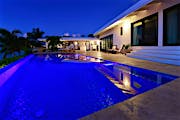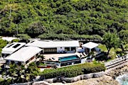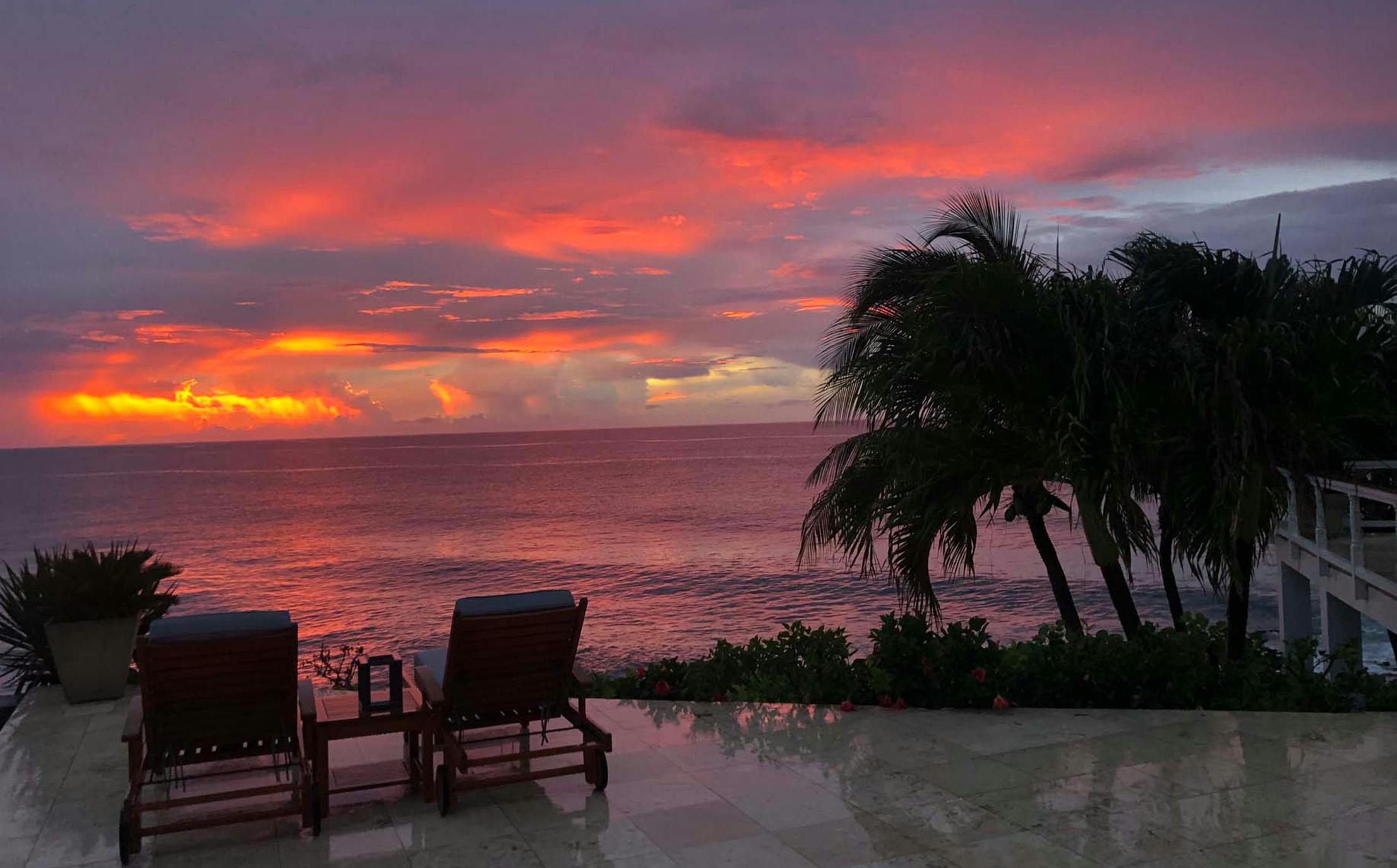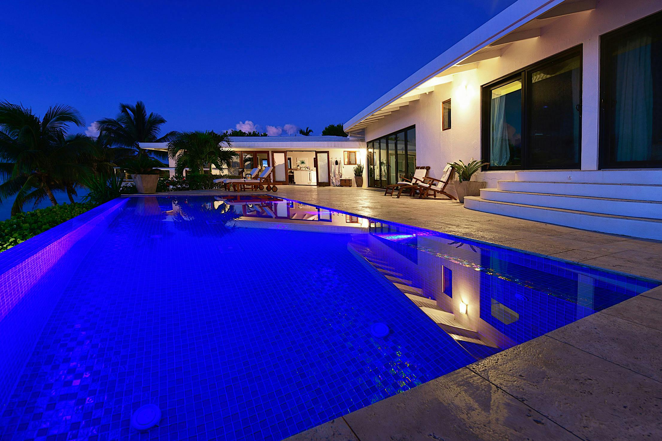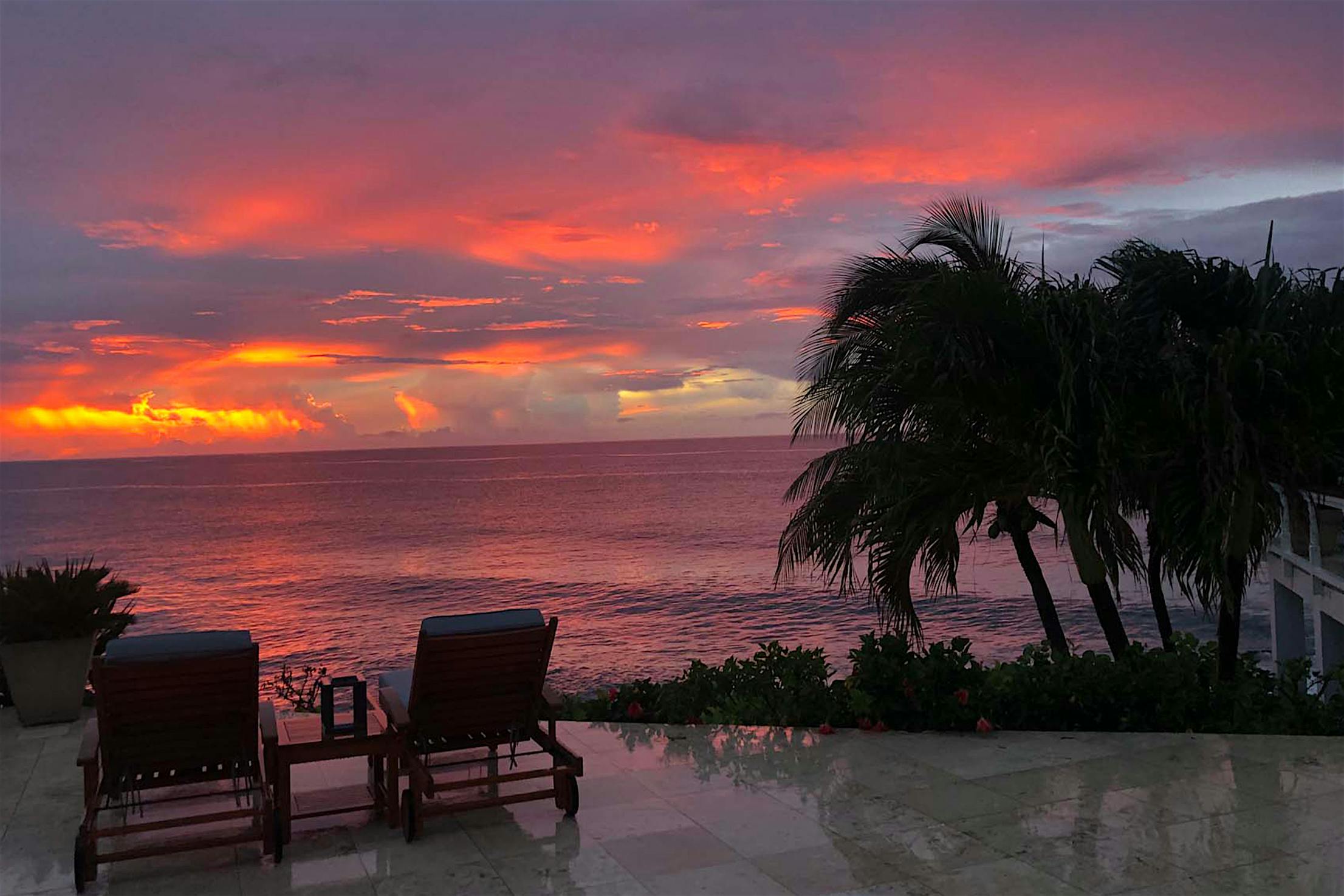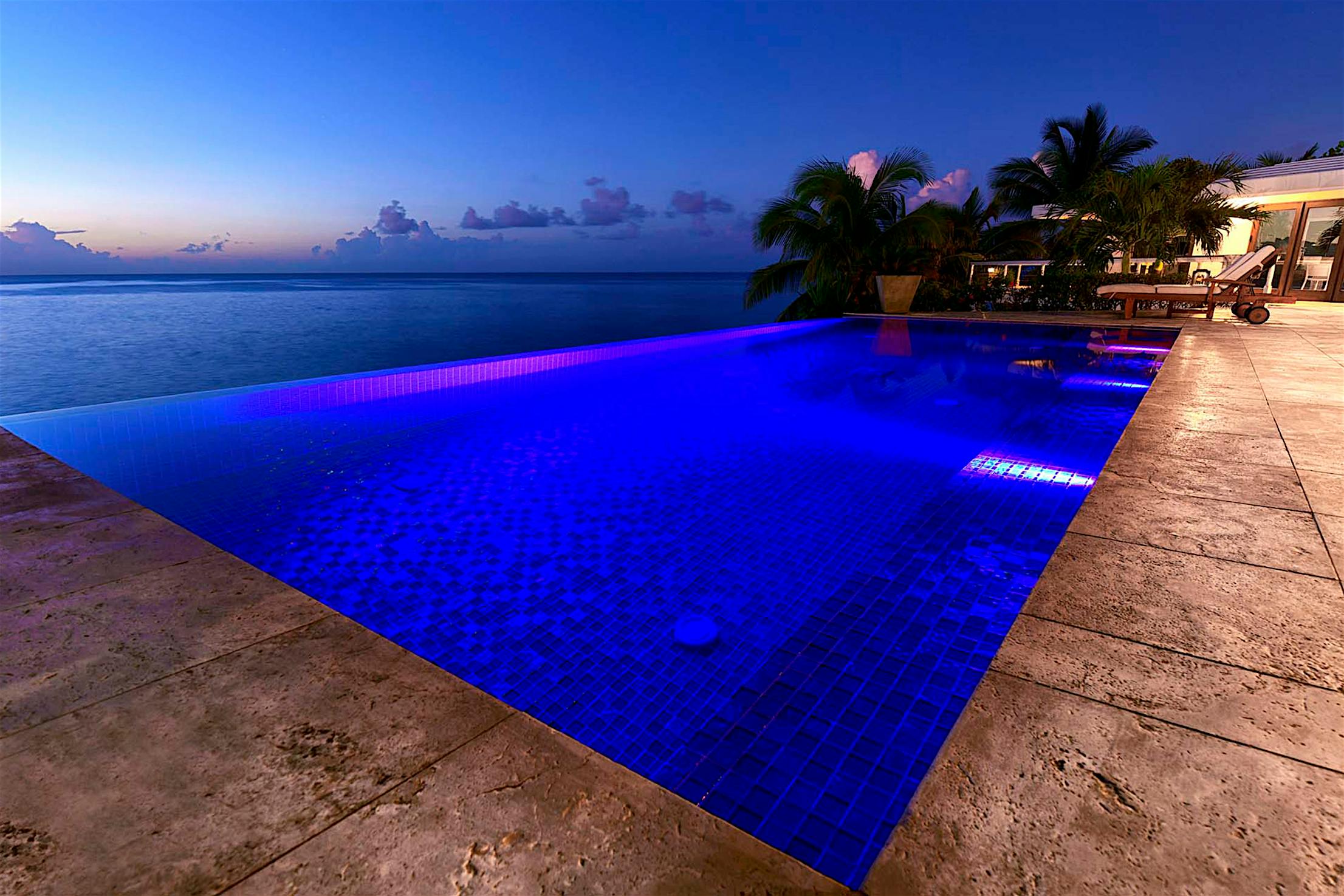 Framing the calming waters of the Caribbean Sea, a disappearing folding glass door opens this US Virgin Islands home to peaceful relaxation.