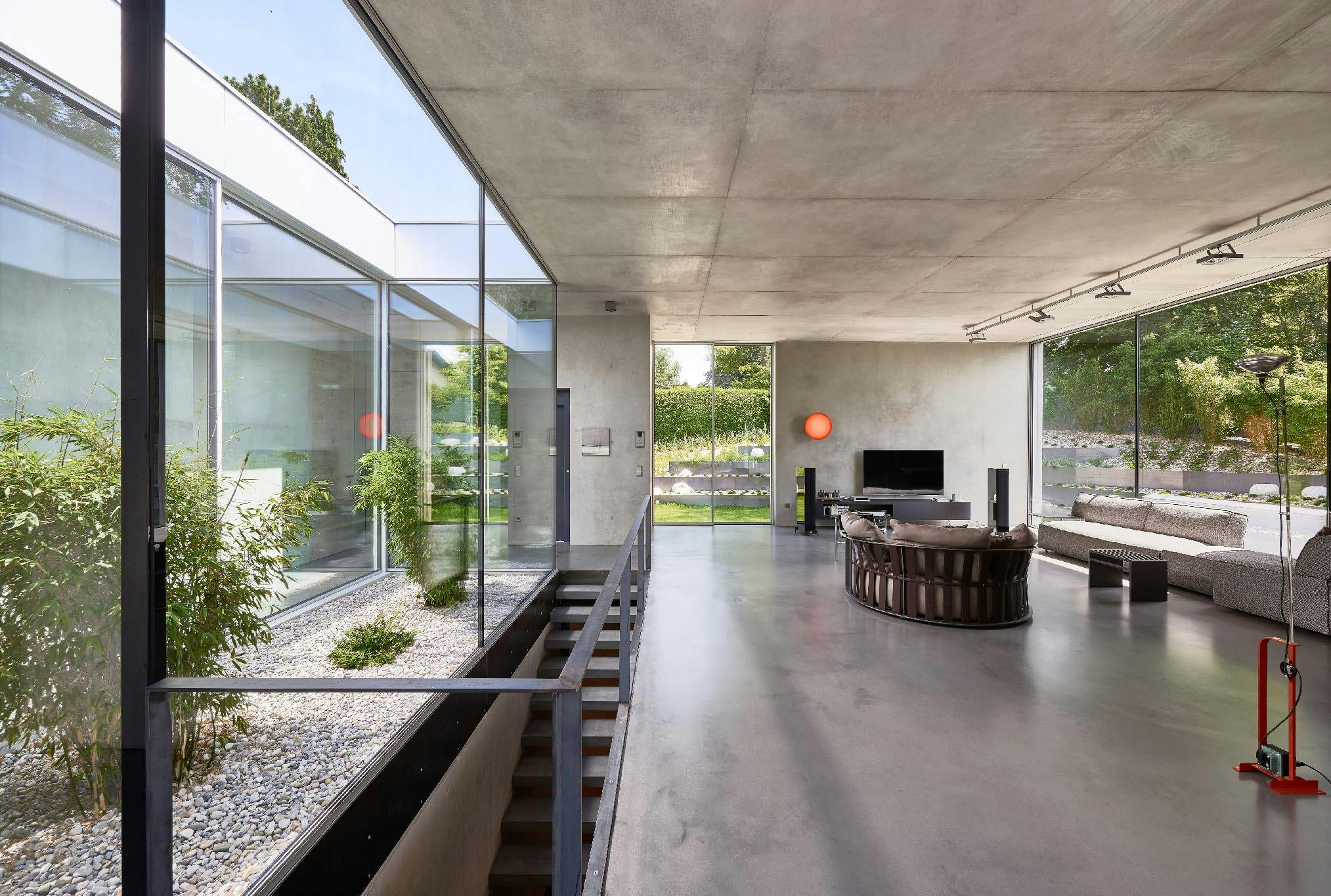 From the glass wall systems leading to the large outdoor patio to the perfectly carved path leading to the boat dock, the home integrates open-air spaces and immersive outdoor recreation experiences.