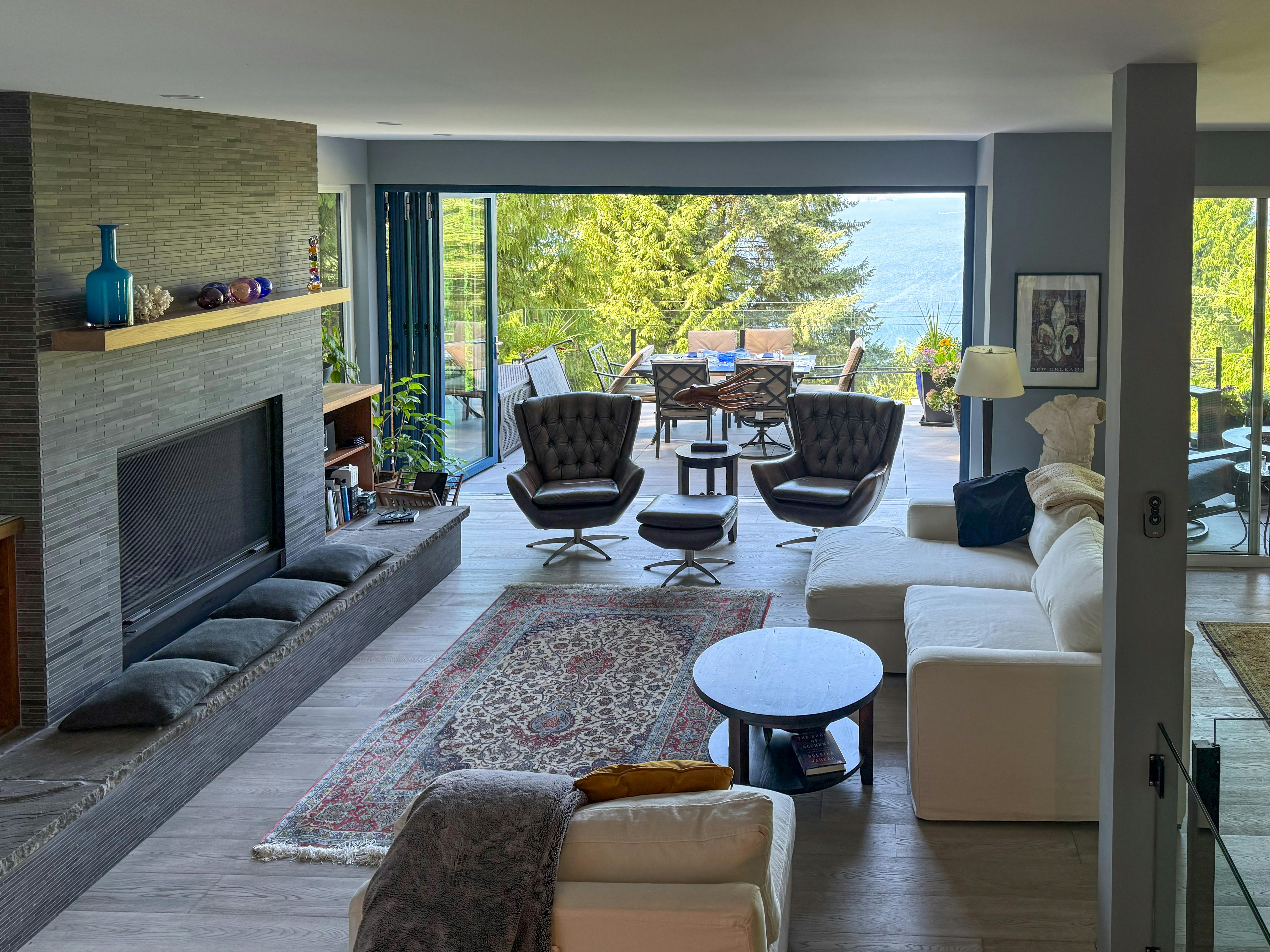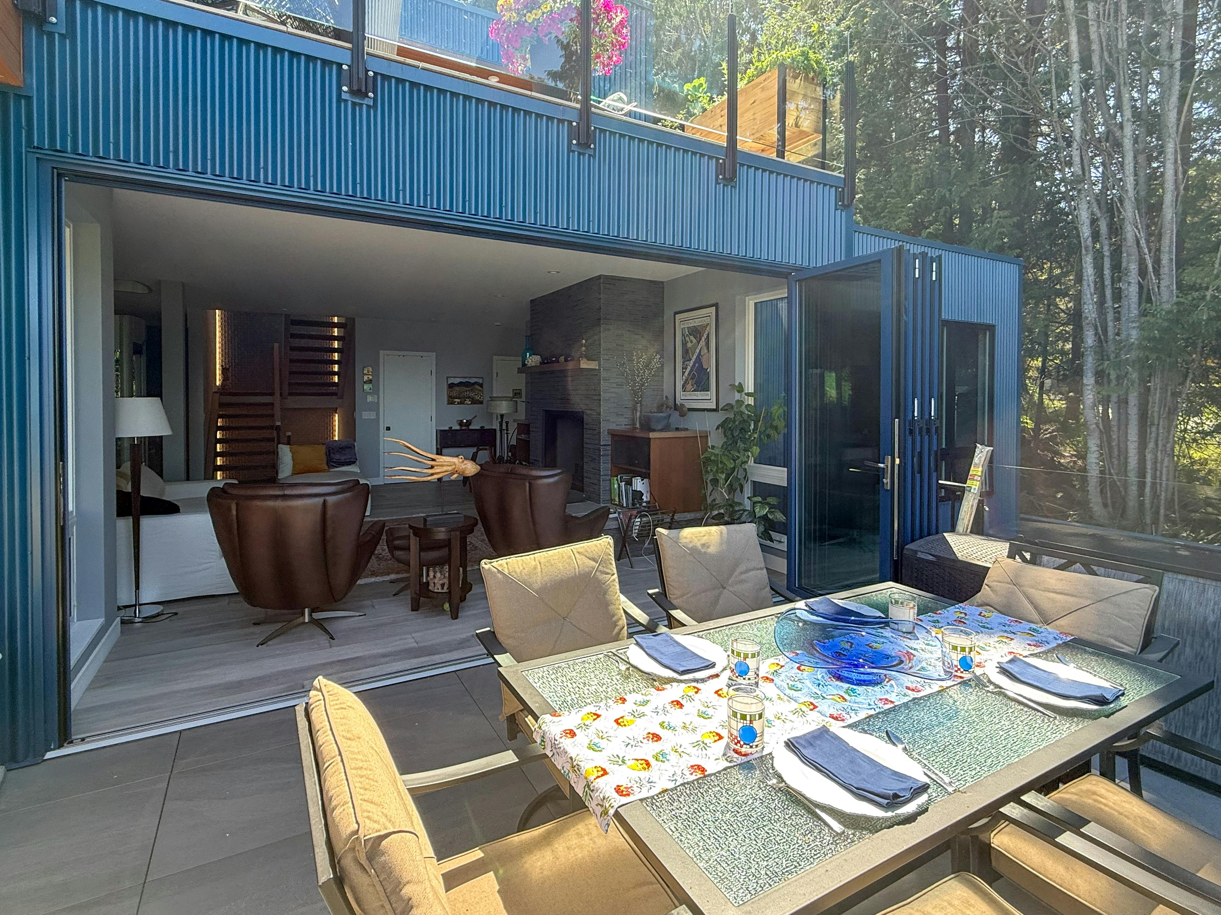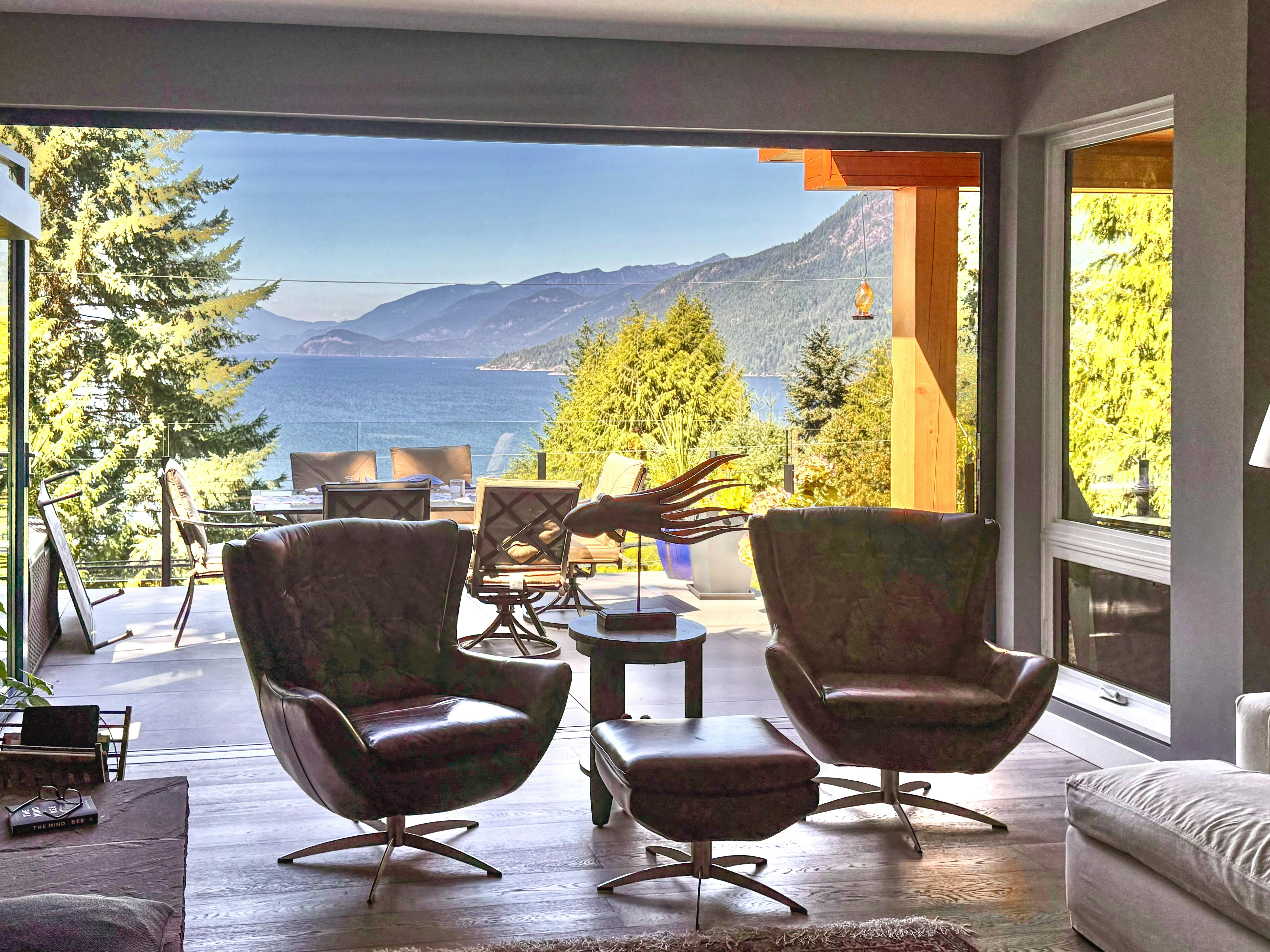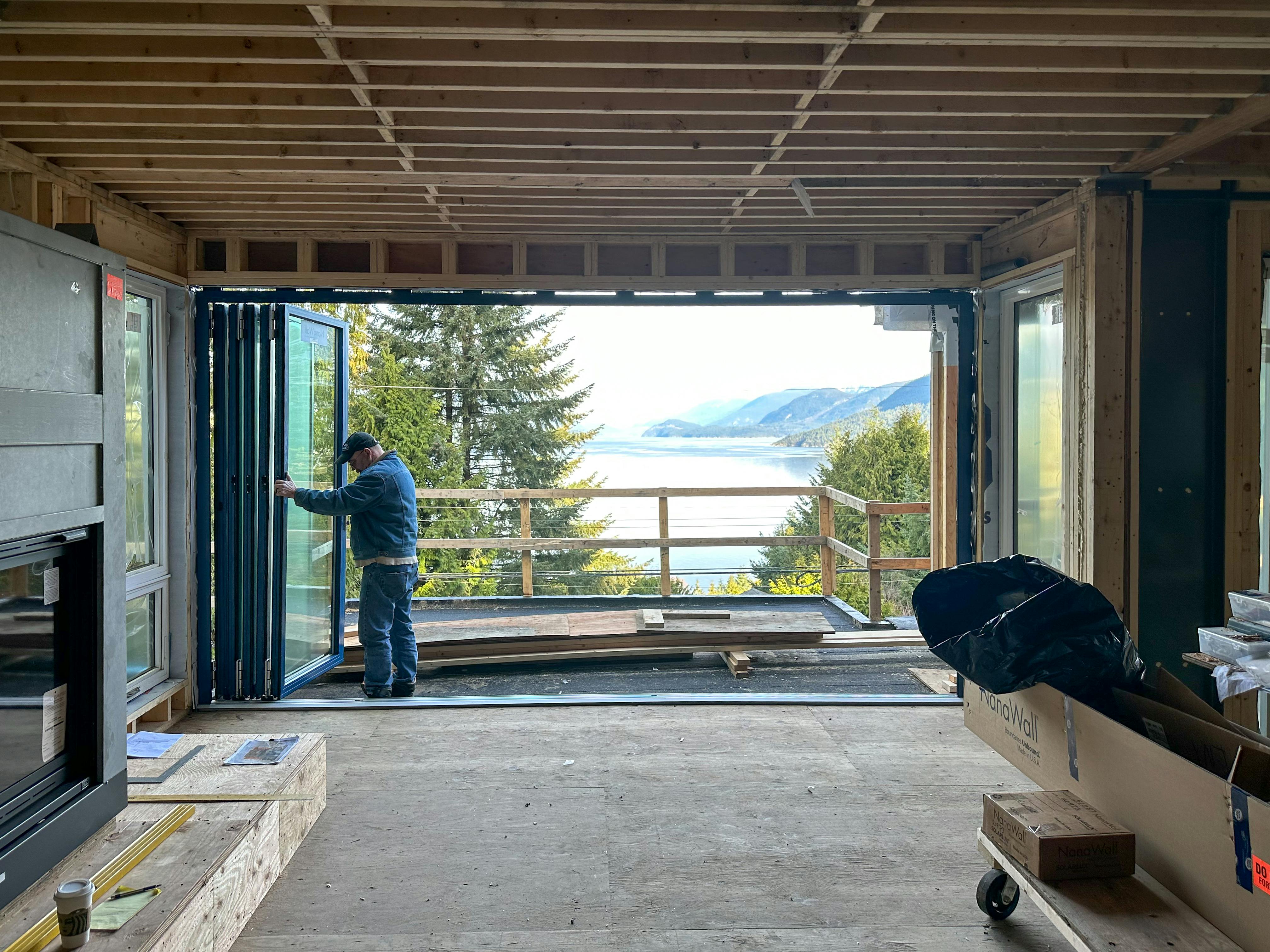 This British Columbia waterfront home embraces the Sechelt Inlet with natural materials and a NanaWall bifold door that brings in fresh breezes, scents, and uninterrupted views.