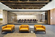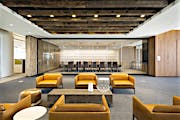The Dairy Farmers of America (DFA) is the fourth largest dairy product company in the world. Their new office, a purpose-built three-story building in Kansas City was designed to express the organization’s identity. “This is a farmer-owned cooperative and represents and honors the farmer,” explains Eric Linebarger of HOK, Des Moines, lead designer of the project.