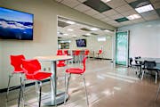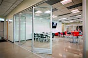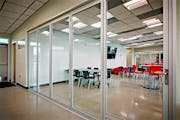 Although the school’s original vision included fixed metal and glass walls that would form two separate classrooms, the architect proposed a more dynamic design with acoustic glass wall systems to provide maximum flexibility of space.