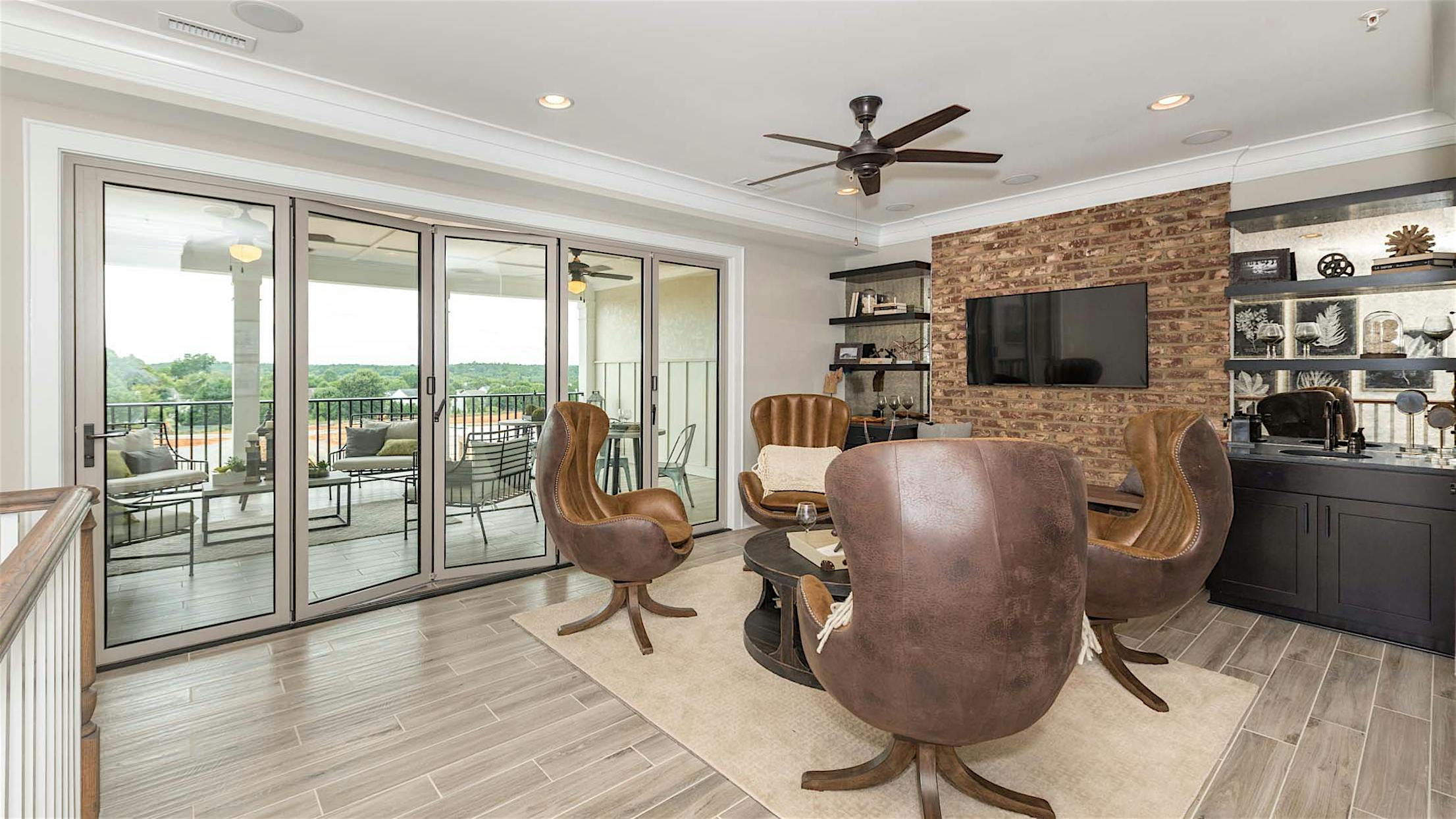 Josh Goldschmidt installed one in his own single-family suburban home as well. Now, Eagle is offering them as an option in their newest luxury community, a South Carolina-inspired development in northwest Richmond called The Blufftons. In these single-family applications, the wall joins the great room to the screened-in porch, creating flexible space that works in any weather.