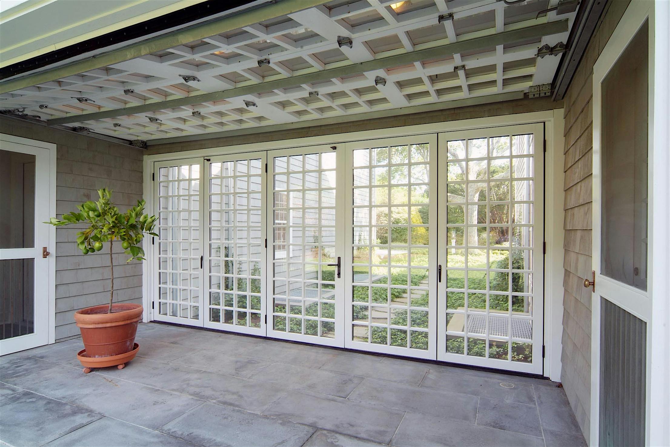 The two 15-foot-wide folding patio doors, each featuring five panels with a convenient swing door, allow entertaining to spill into the covered patio and poolside.