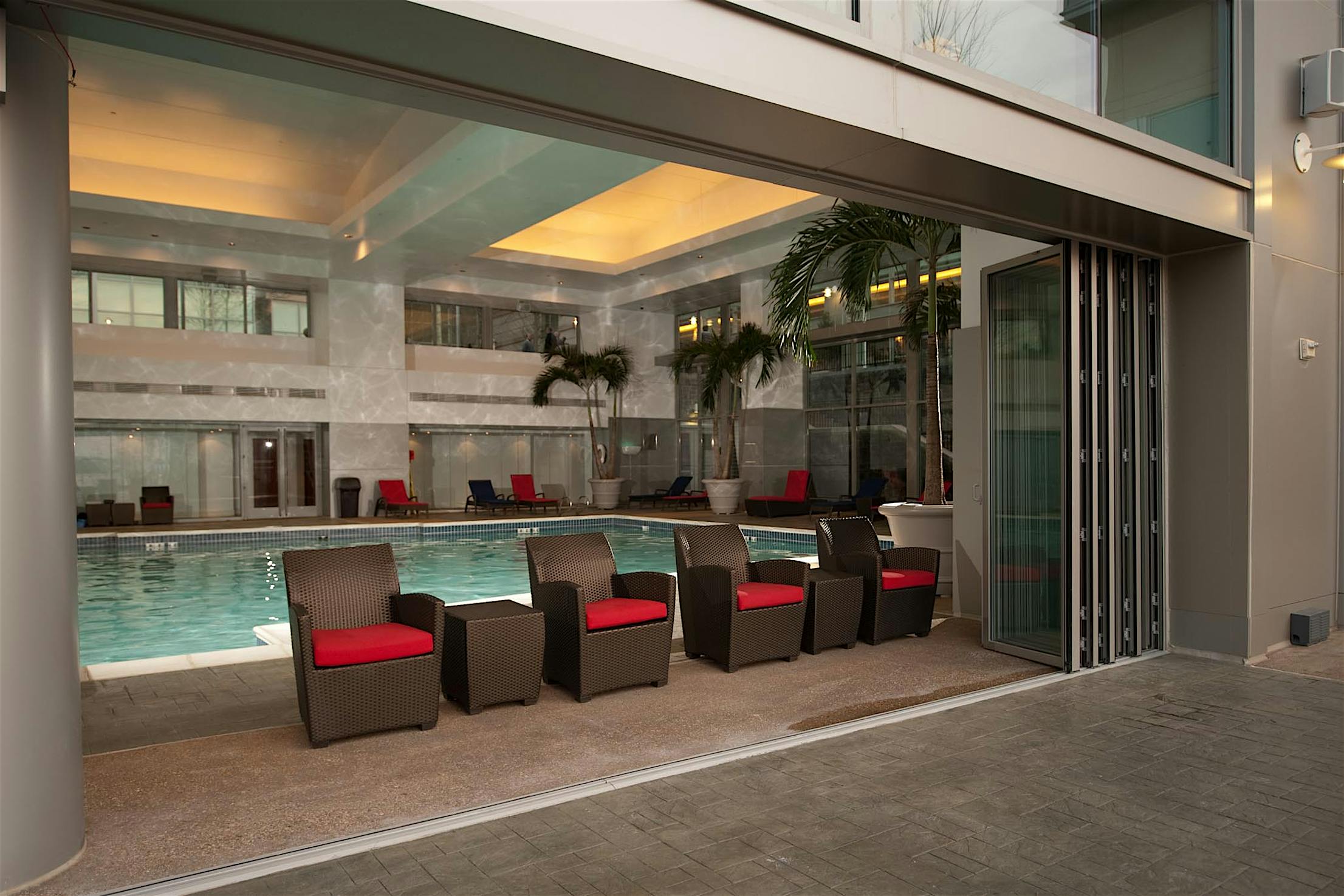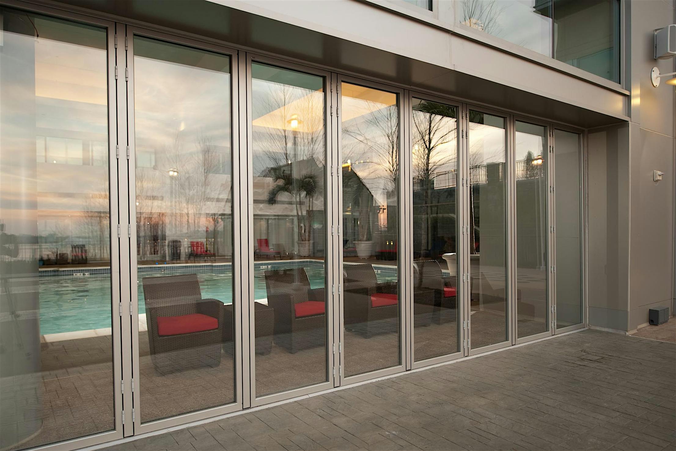 "NanaWall’s system helped open it up to get indoor/outdoor connectivity. Lobby guests can smell the ocean breeze, and easily maneuver to the outdoor space.”