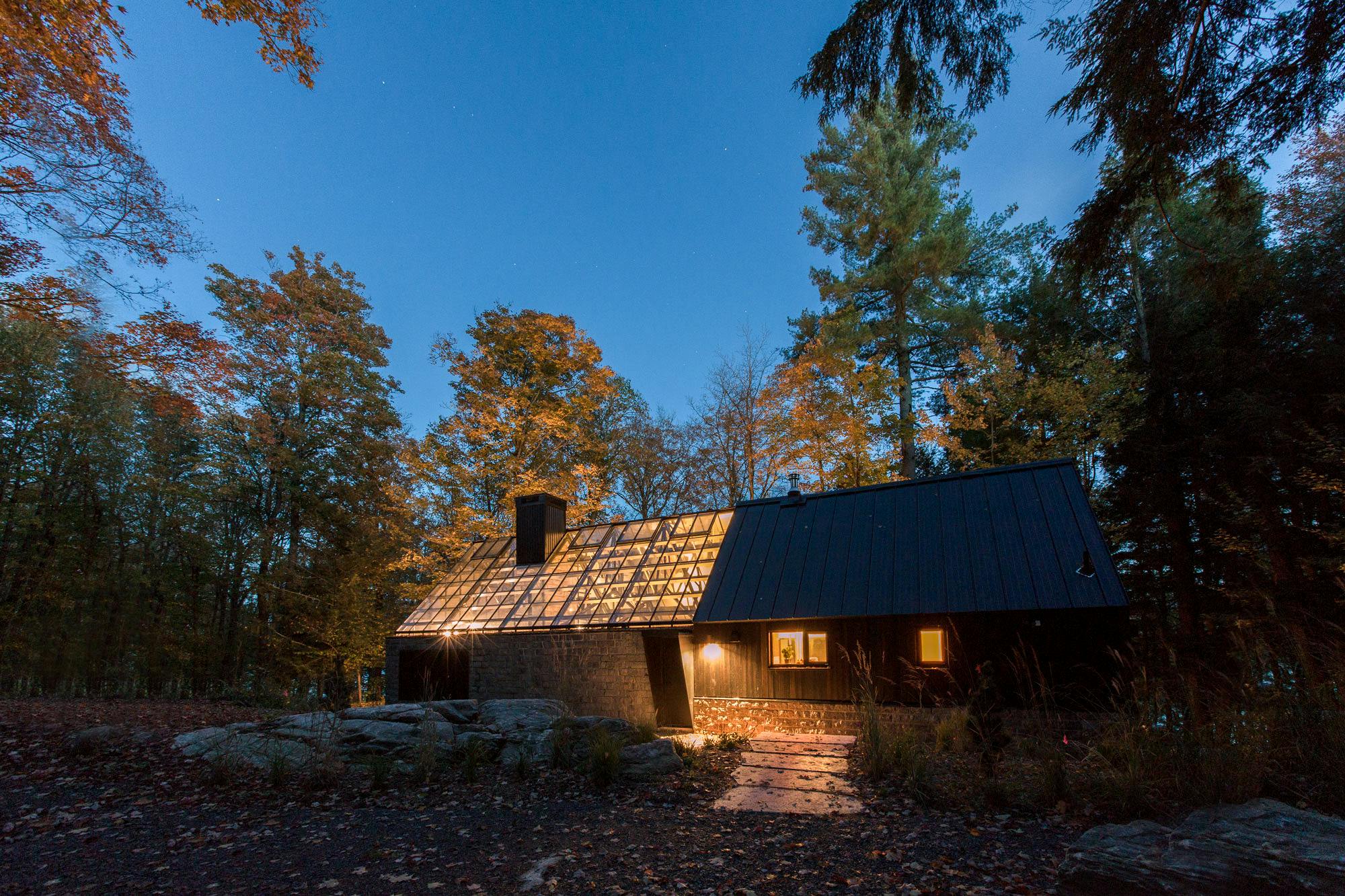 This greenhouse cottage in Haliburton, Ontario, aimed to be a space based on efficiency: a very well-insulated small house for winter use with the ability to extend during the warmer seasons. In upper Ontario, -30°C (-22°F) is to be expected. Staheli Architecture wanted to keep energy consumption low during that time. For this, the greenhouse is a passively sun-heated space which allows for an extended use of the cottage, both in space and season.