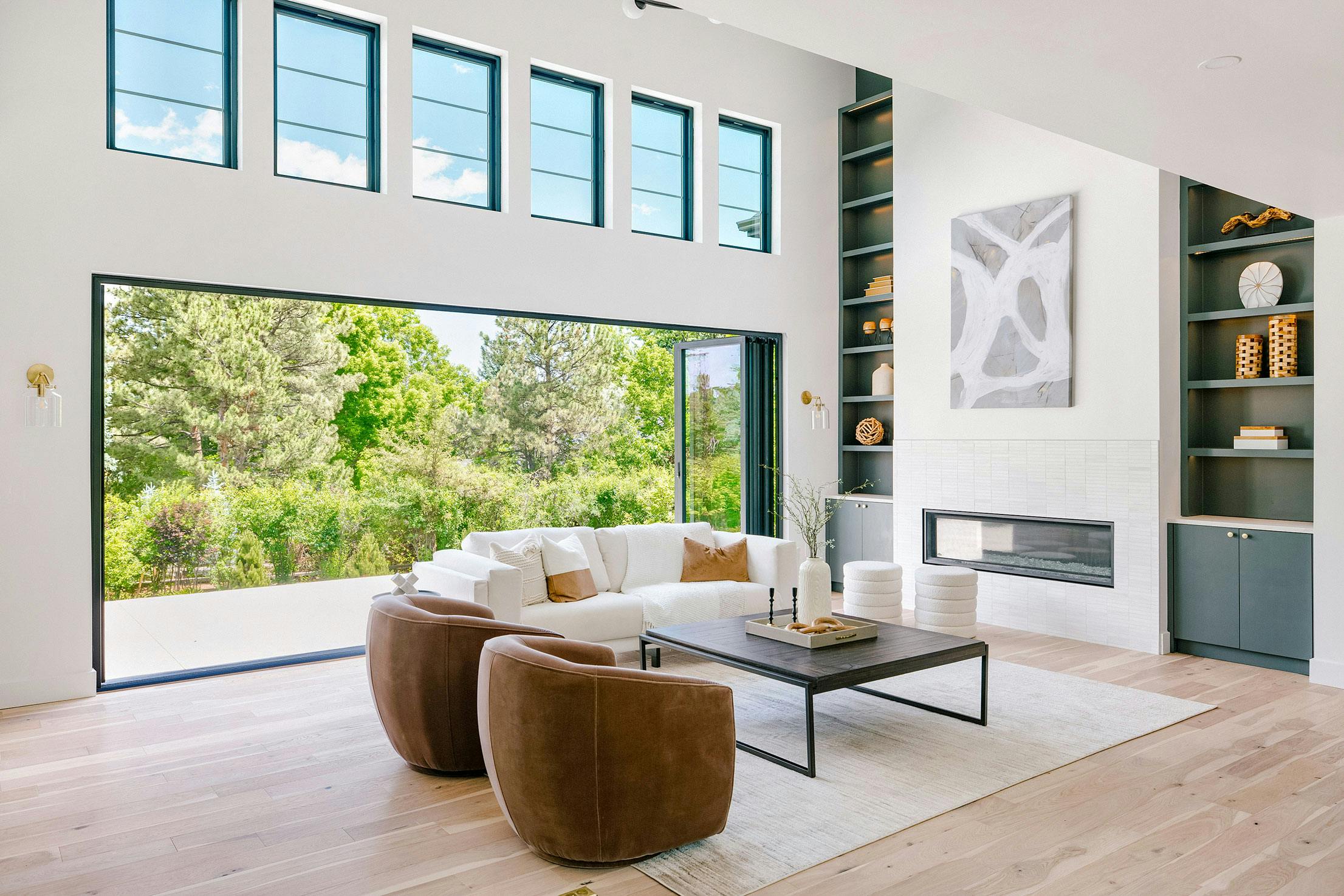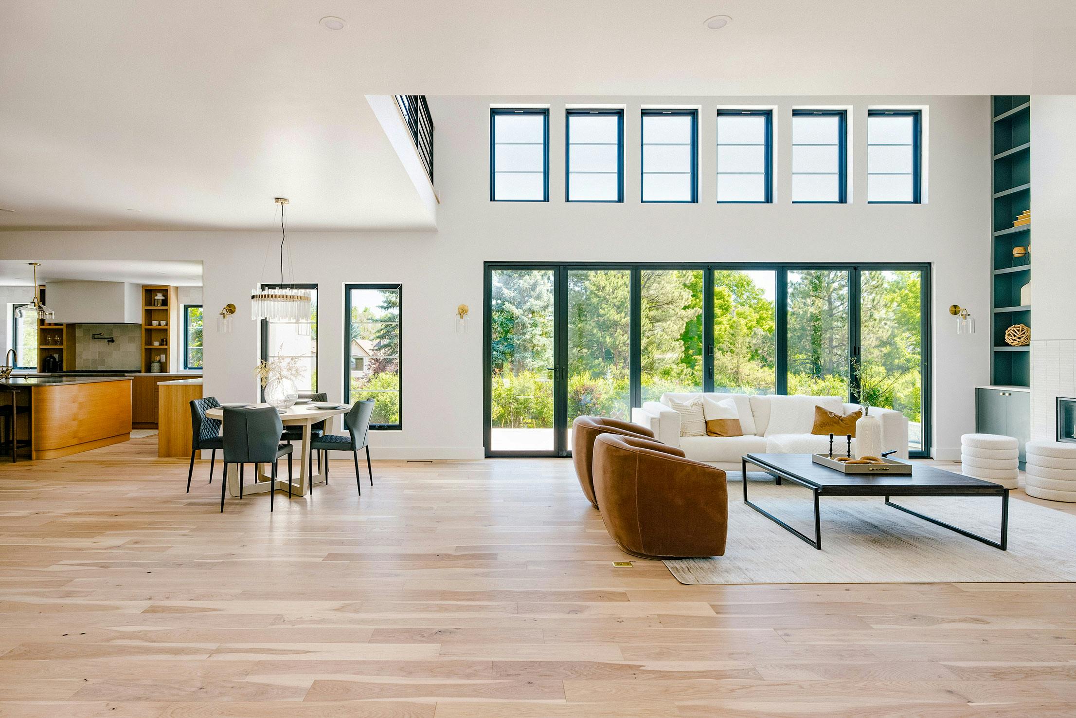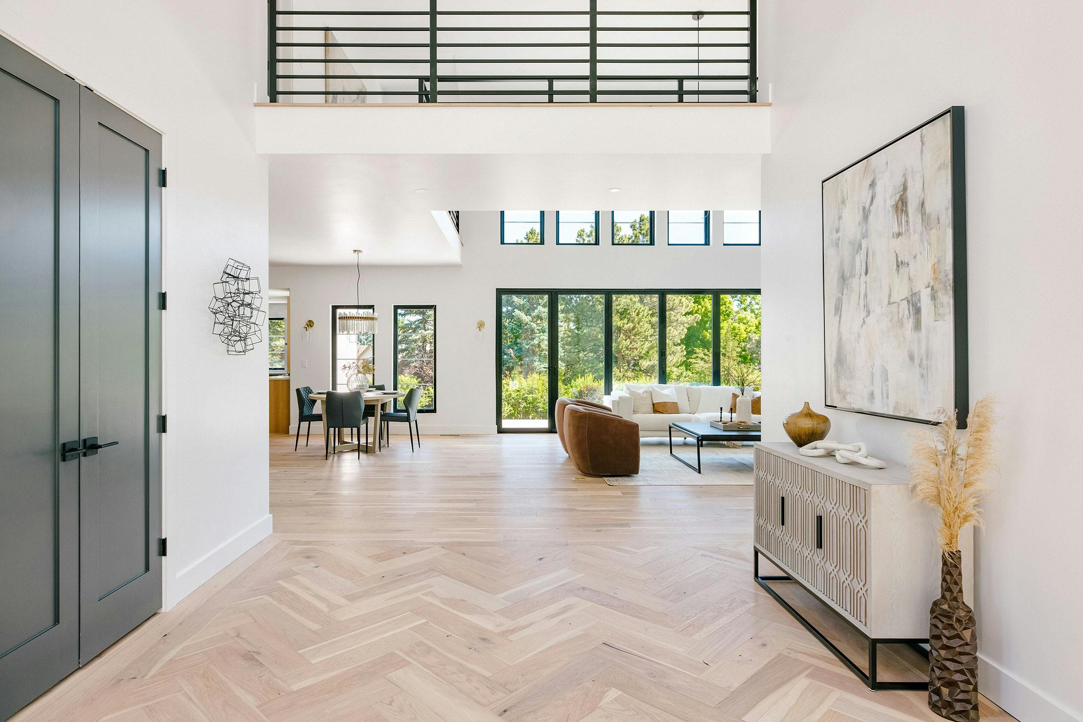 Picture Greenwood Village, CO, a Pacific Northwest gem renowned for its unique blend of historic charm and modern living. For a husband-and-wife home flipping team, a tri-level fixer-upper in the highly sought-after Belleview Village neighborhood offered the bones for a promising home renovation. Enlisting the expertise of Cult Creative architecture, the original 5,900 square foot floorplan was transformed into a light-filled 6,639 square foot residence ideal for Colorado living. Modern design elements, convenient amenities, and dynamic transitions between the indoors and outdoors using bifold doors create the ideal family home for living, working, and communal bonding. Key to the home renovation was maximizing natural light with contemporary fenestration and operable bifold doors that make indoor/outdoor living a breeze.