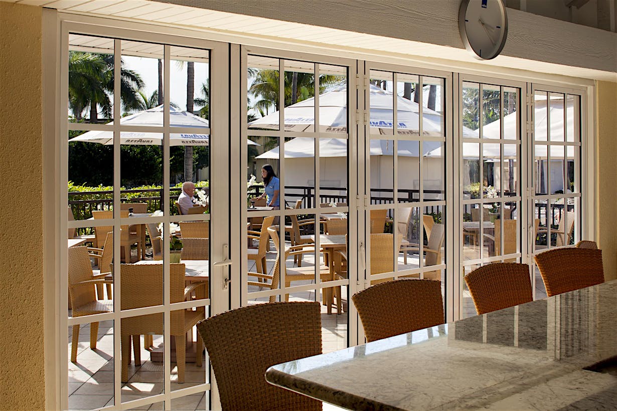 According to Hyatt Regency Pier Sixty-Six’s Vago, the option to customize the restaurant size throughout the day through the use of a NanaWall System was key to the restaurants’ functionality and aesthetic appeal: “Our restaurant handles 50 to 350 people, and we needed moveable walls to help us divide the large room,” he explains. “During low occupancy days, we open just one section of the restaurant.
