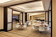 The president of Design Continuum, Woody Faust, explains how the solution arose: “We selected a wood folding wall system – the NanaWall WD65 which proved to be an ideal choice for the Hyatt renovation,” he says. The glass walls allow the restaurant to divide the space to accommodate as many people as needed, according to the hotel’s Tamas Vago, the food and beverage manager.