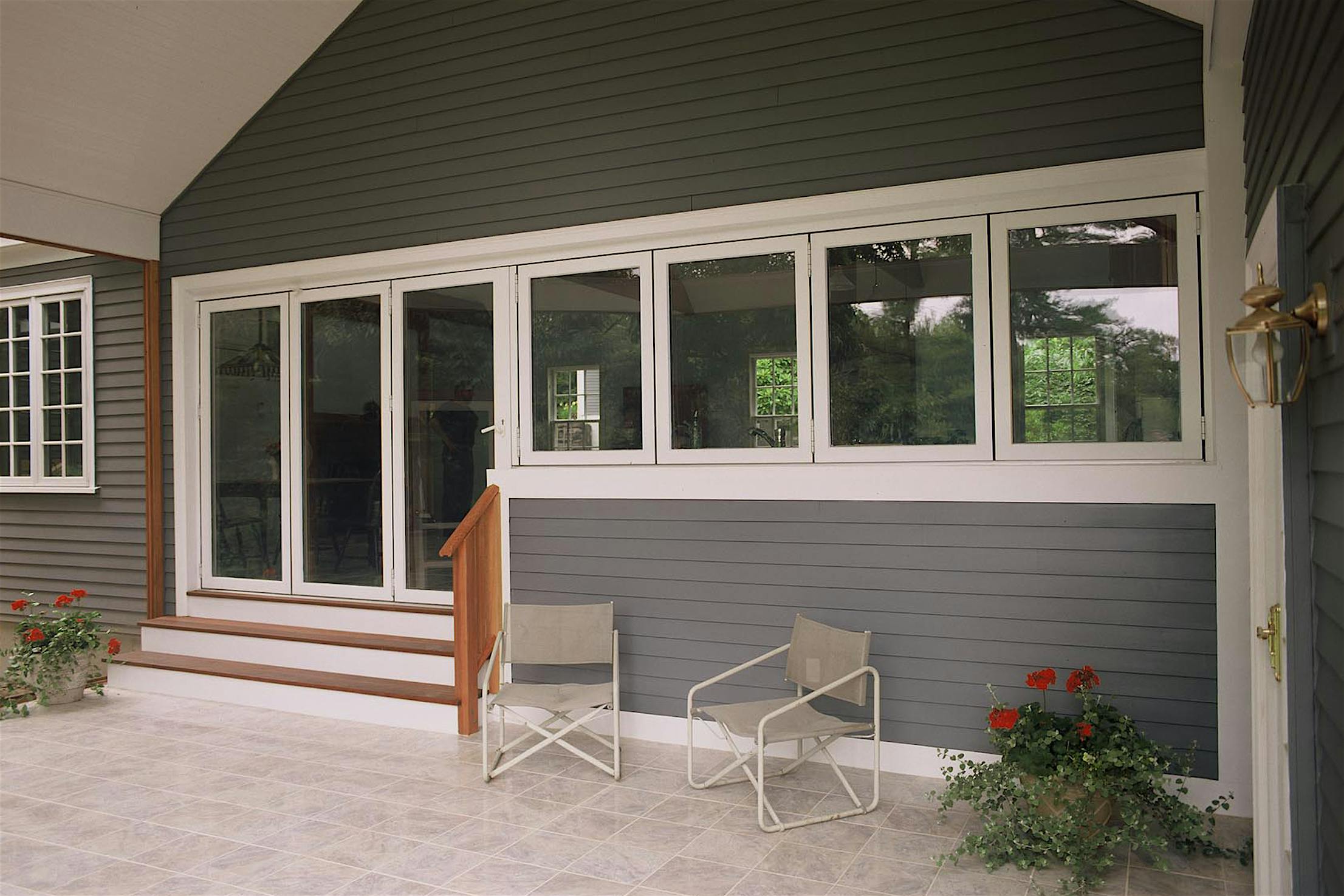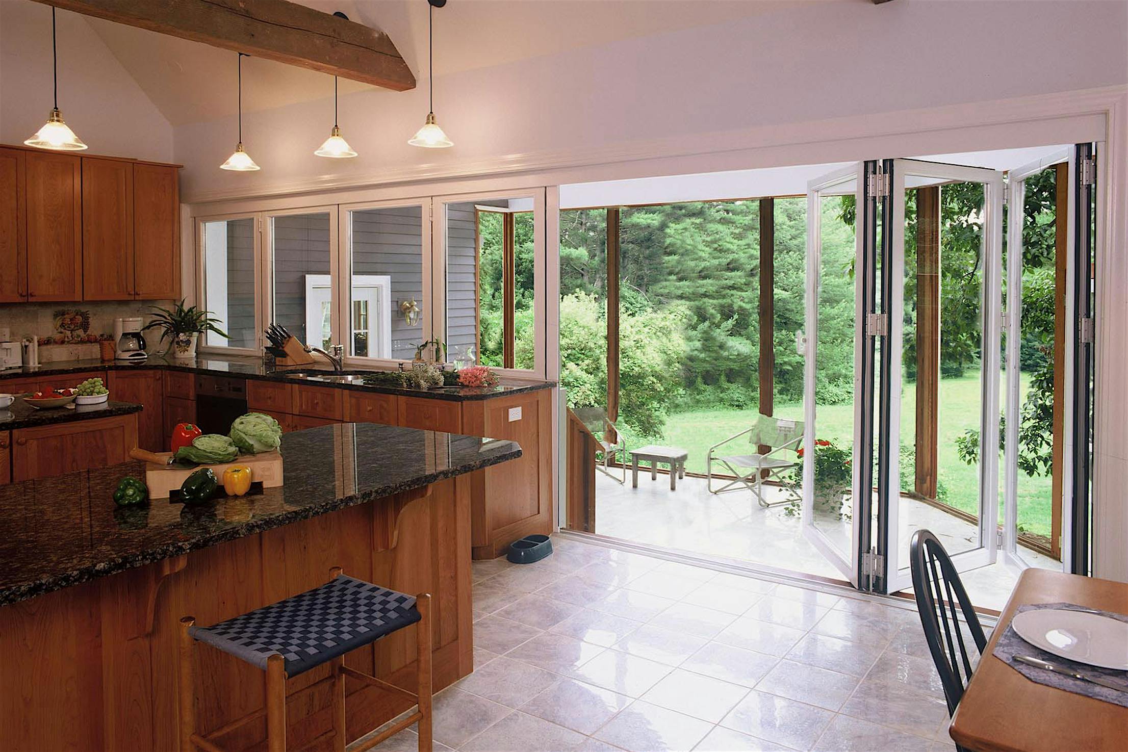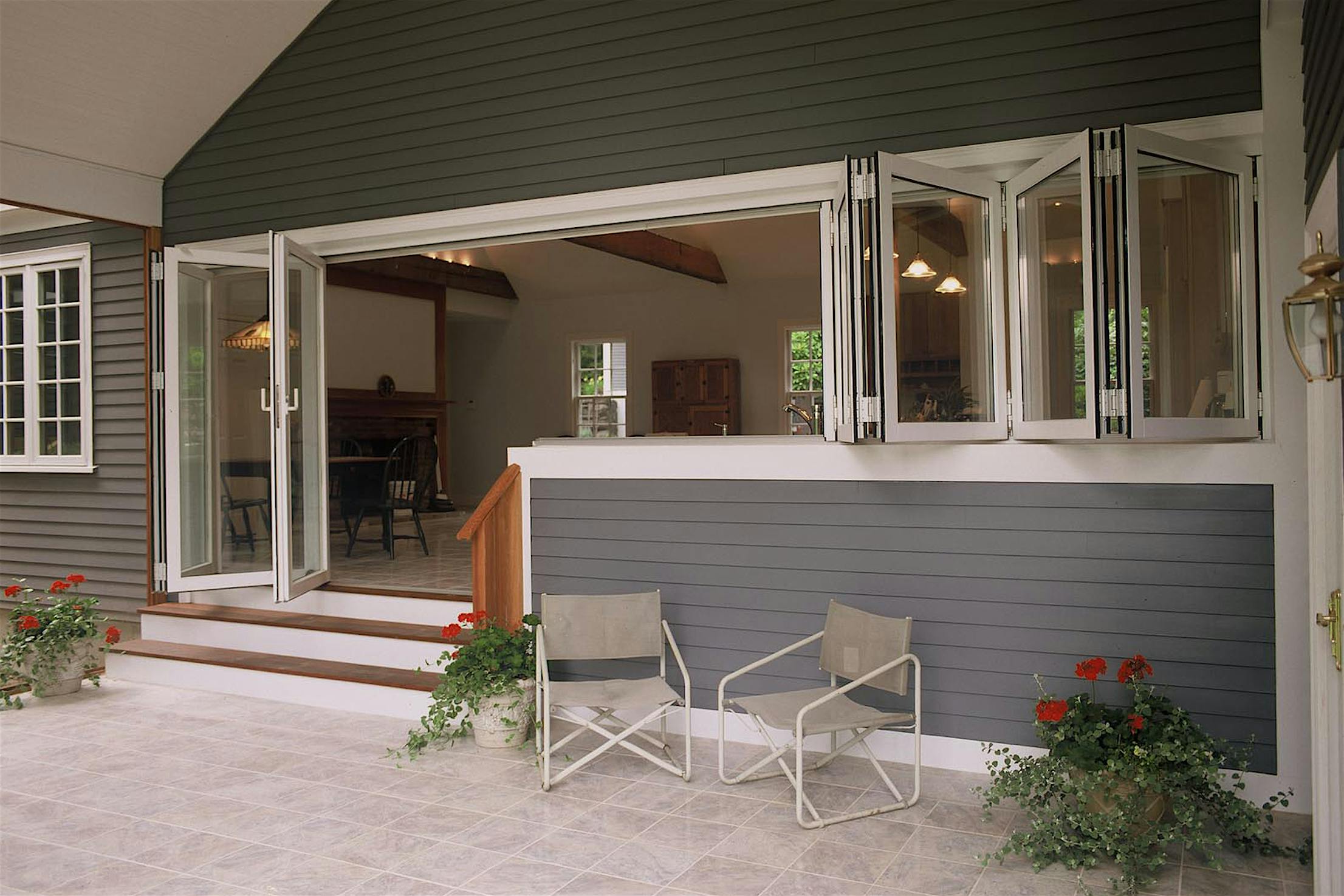 For this kitchen project the decision was to install a folding window/wall combination to give the homeowners the indoor/outdoor kitchen and entertainment area flexibility they desired.