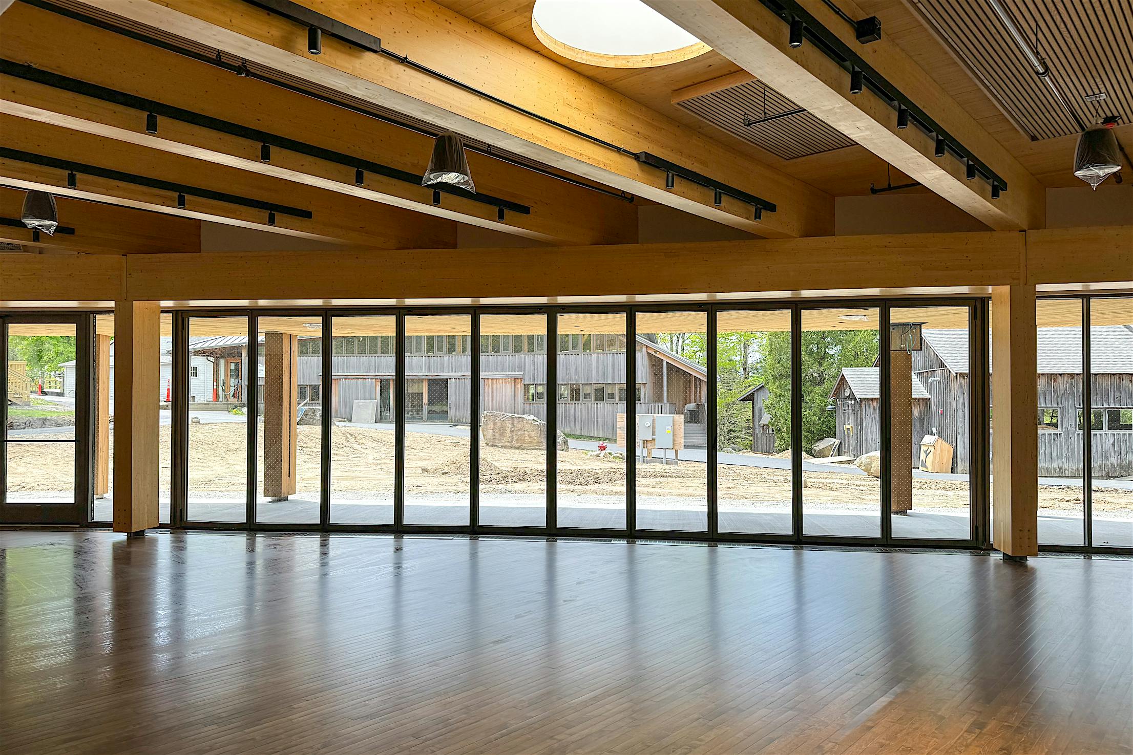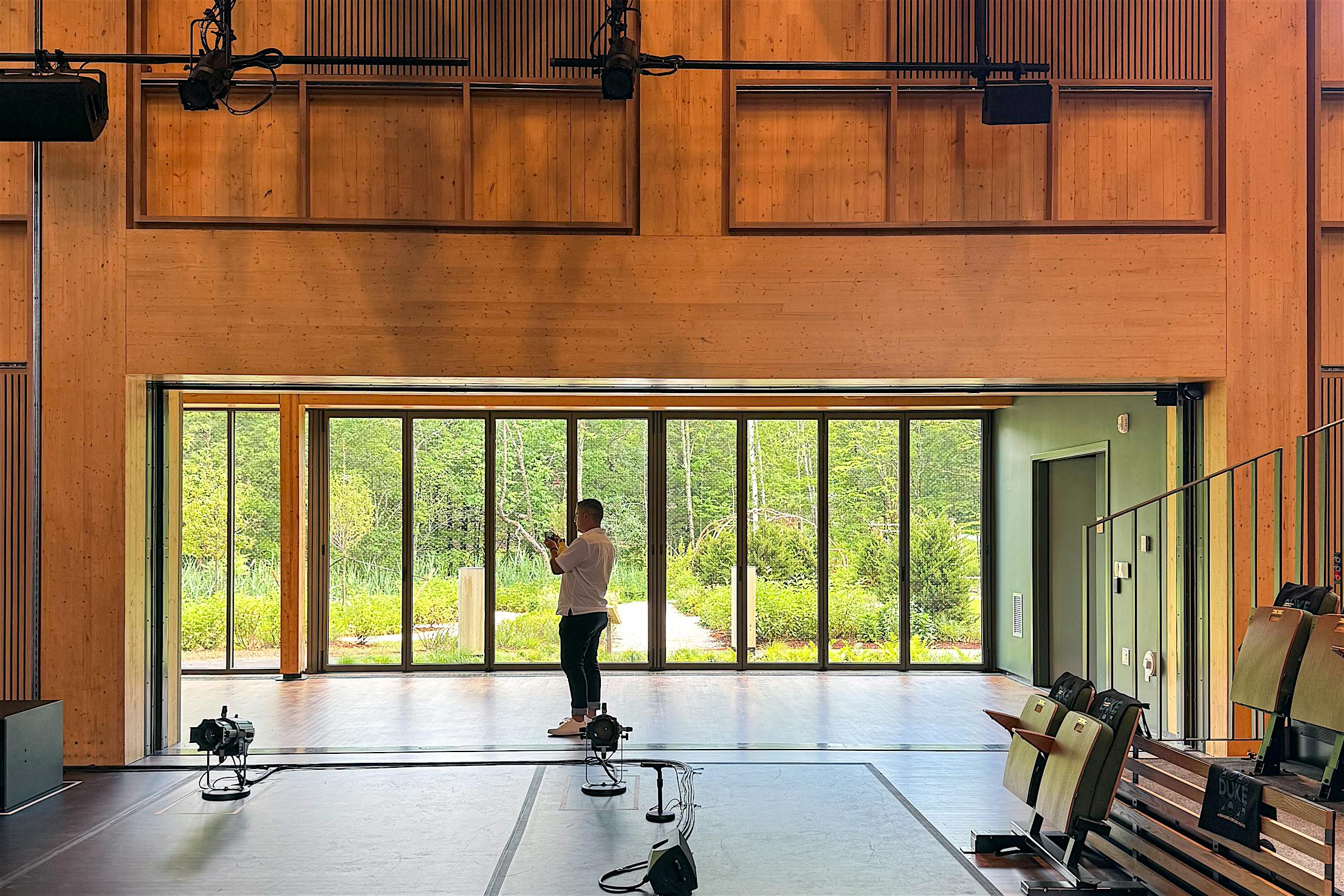 At the heart of the new Doris Duke Theatre at Jacob's Pillow in Becket, MA, lies a celebration of movement, space, and connection. Designed by Mecanoo architects and built by Allegrone Companies, the new 19,300-square-foot timber mass pays homage to the local natural landscape and human creativity. Further enhancing the structure’s connection to the true movements of nature, two expansive NanaWall folding glass doors open interiors to the outdoors, where every element evokes the feeling of movement in space.