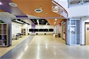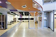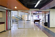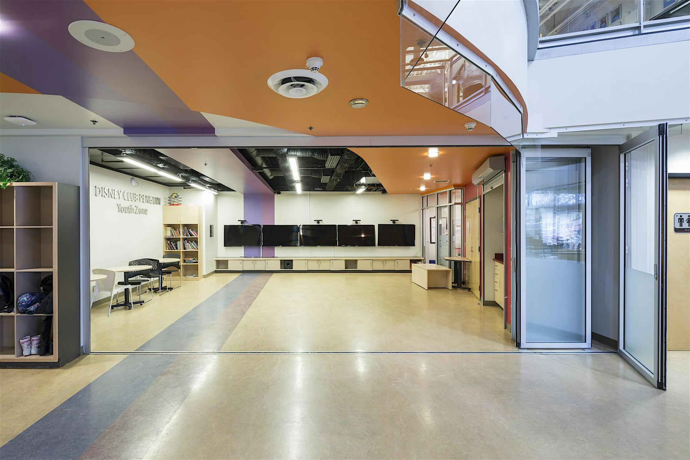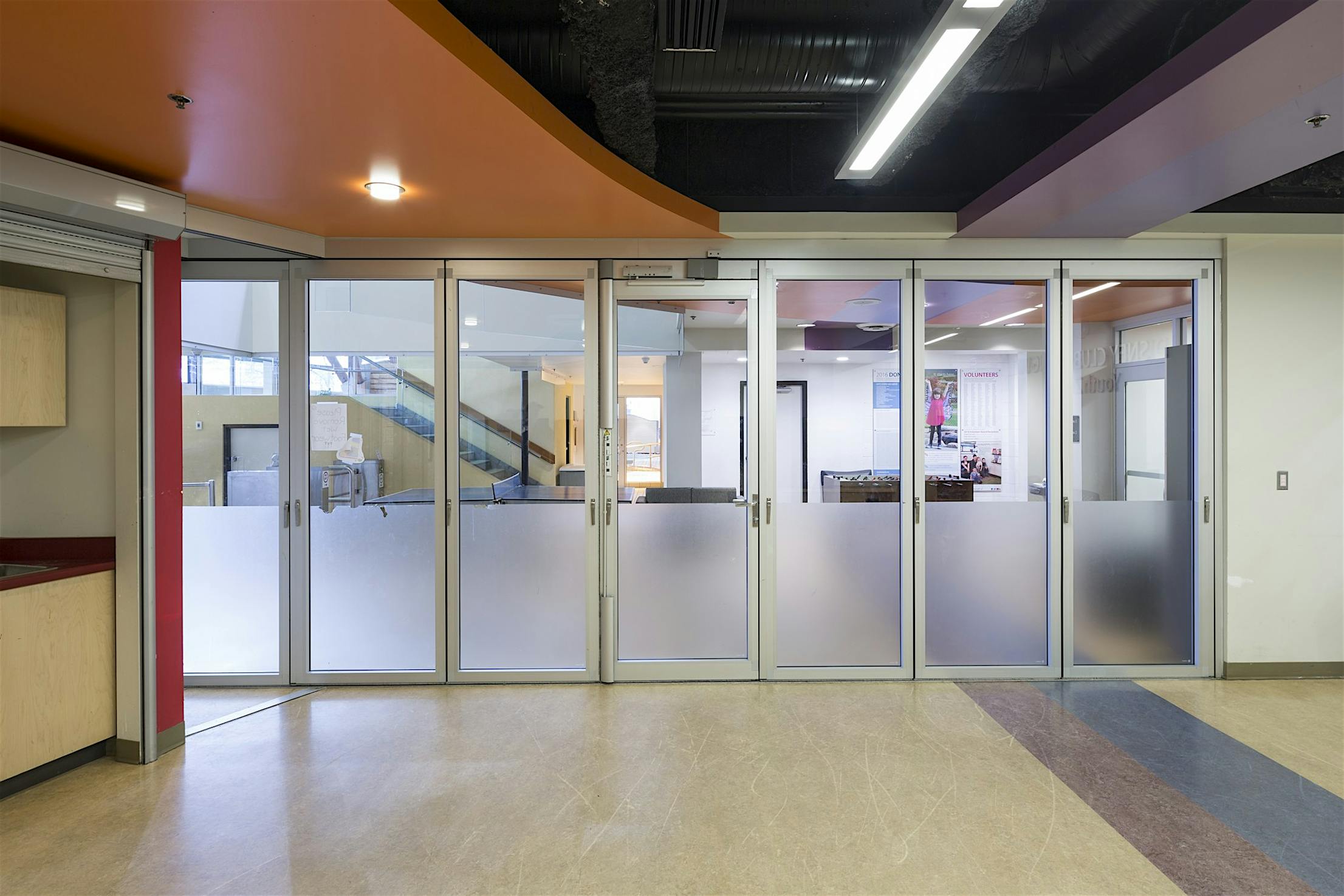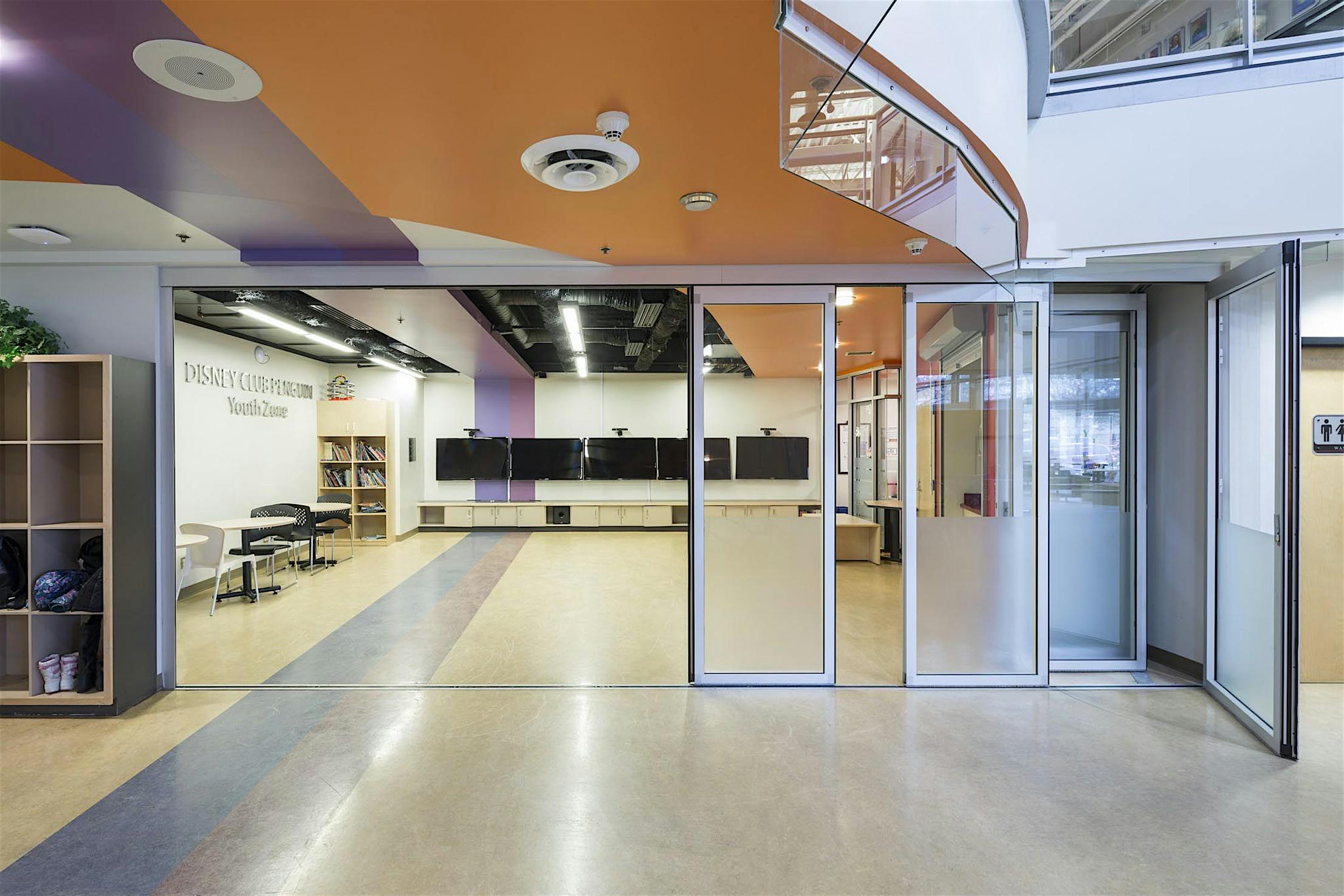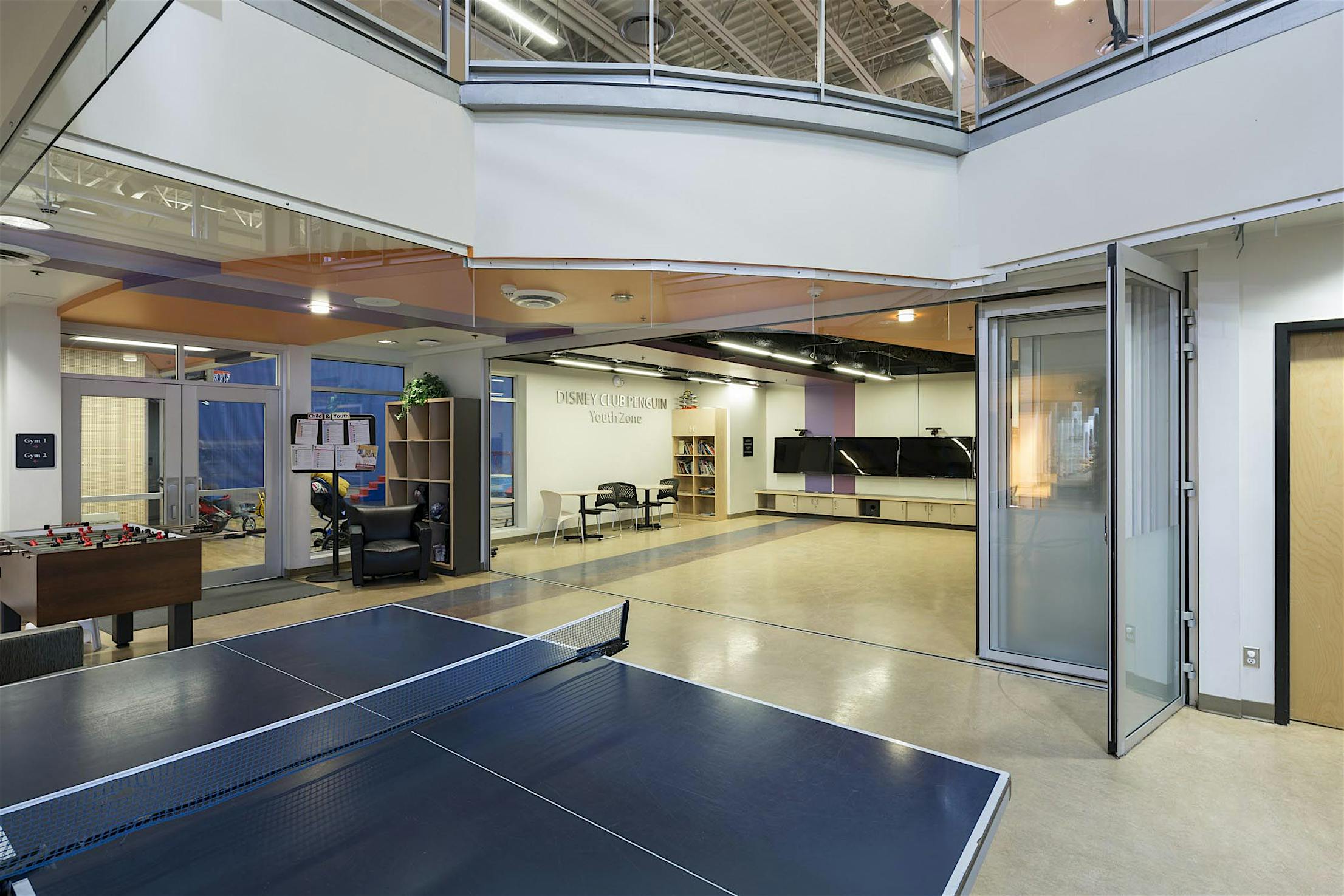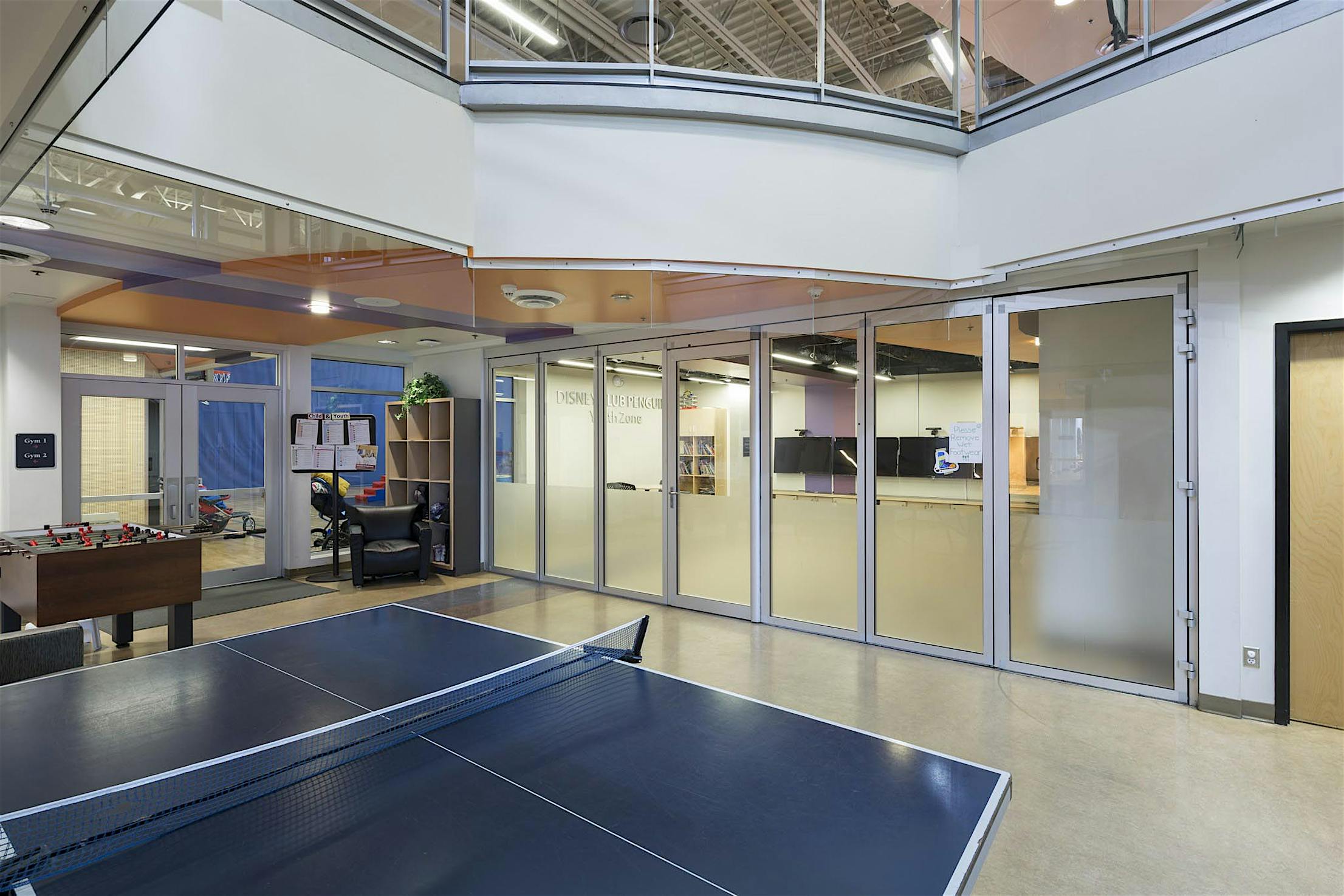 To meet the needs of the multigenerational community using this recreation facility, a seamless transition was created to integrate the courtyard with the facility’s lobby.