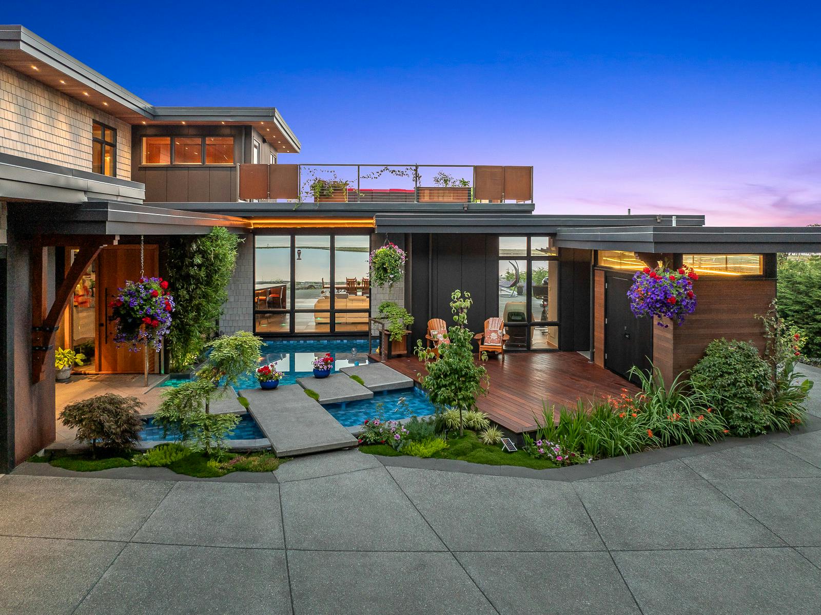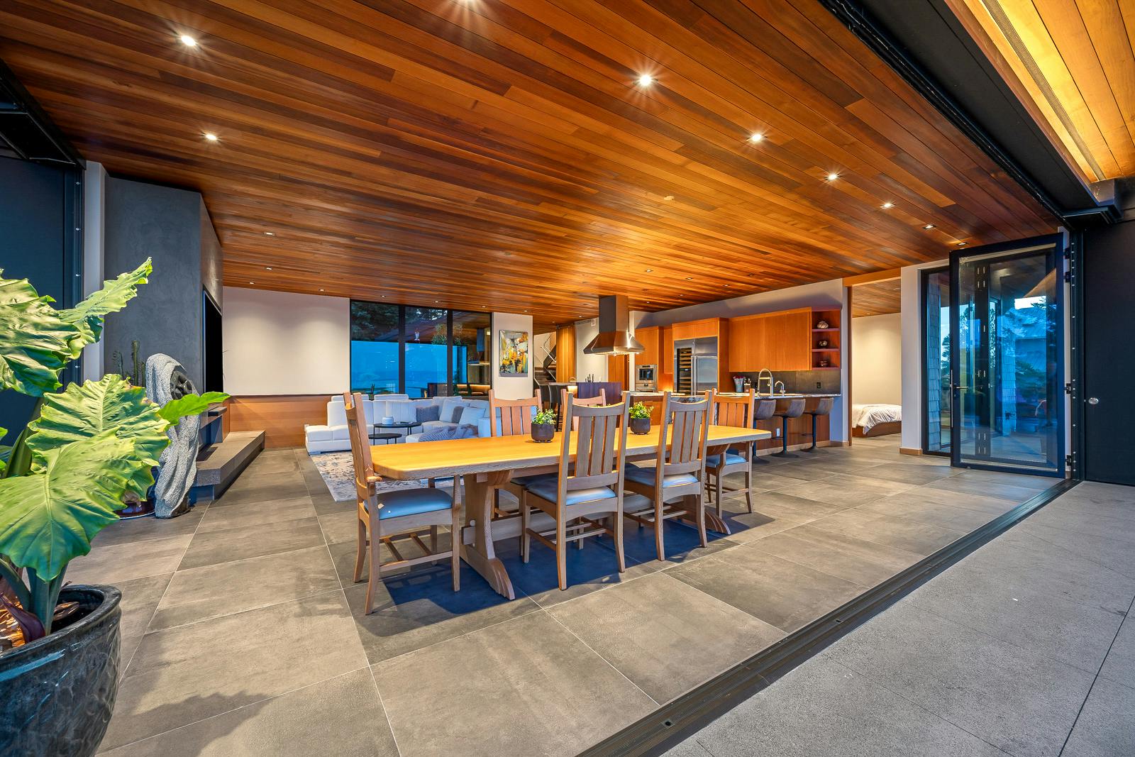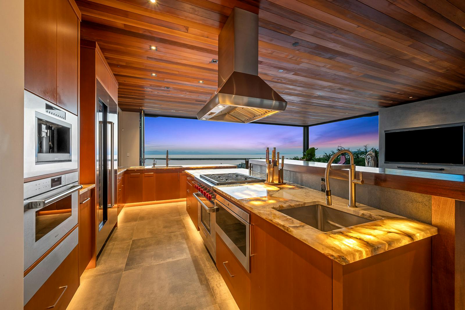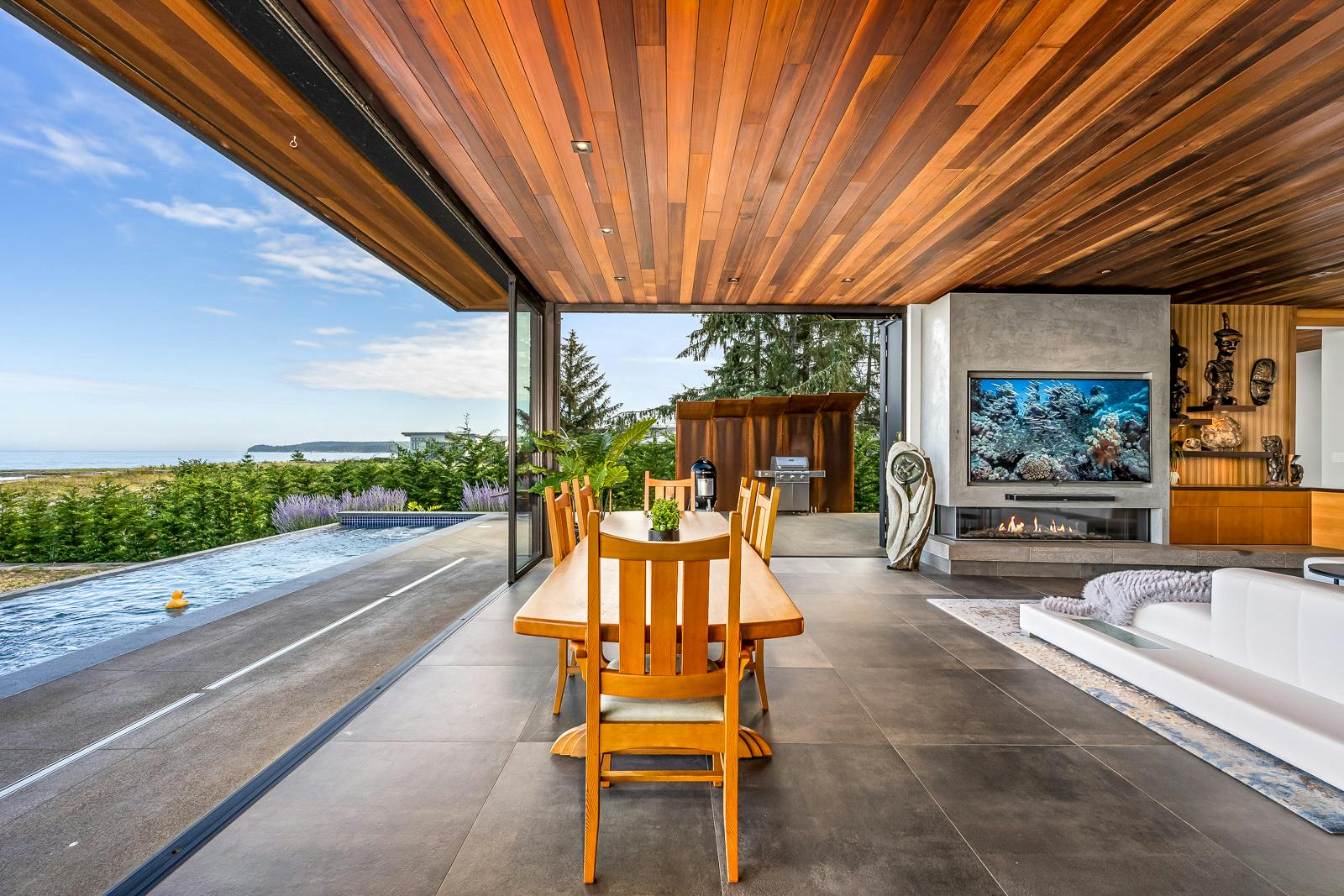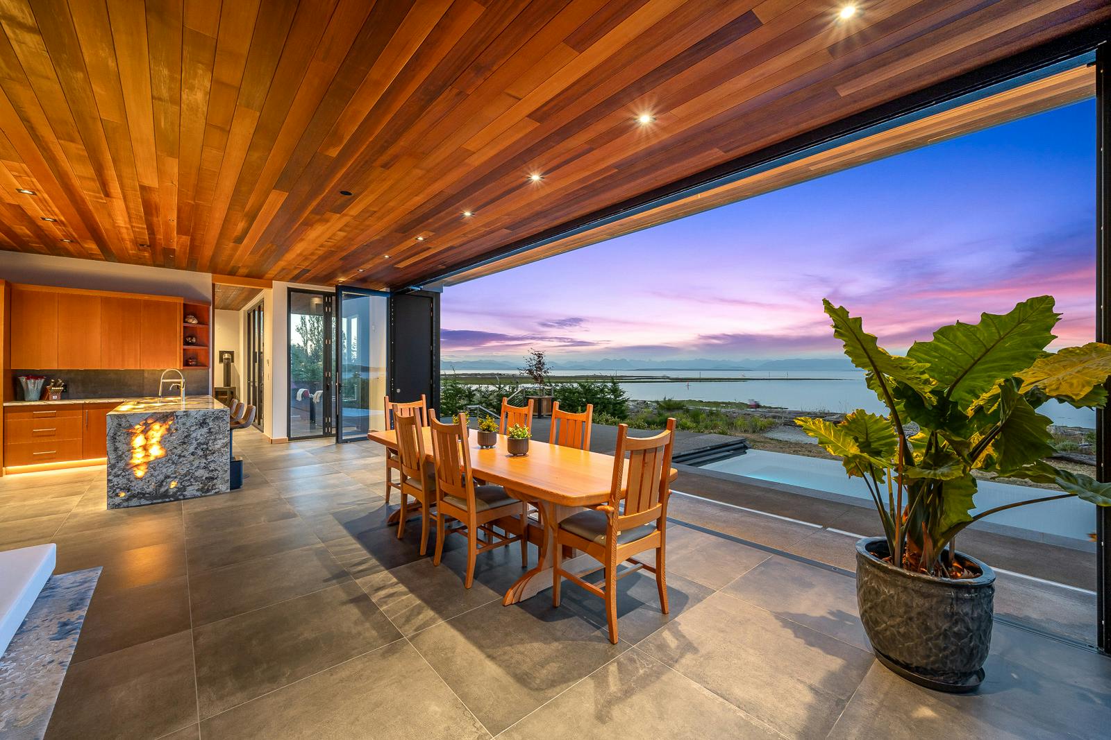At this Washington home, the deck was designed by Odd Lot Design to be an extension of the kitchen with a striking, curved wood framed folding glass door. Despite its small footprint, the kitchen now feels larger and more connected to the outdoor.