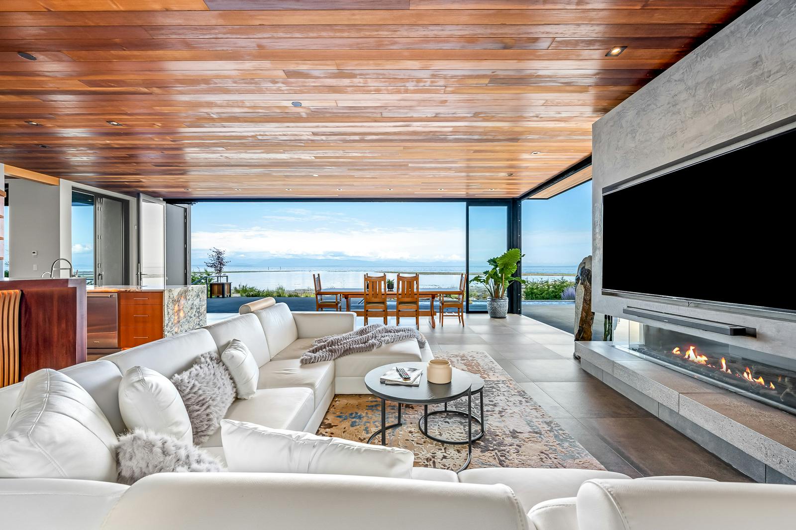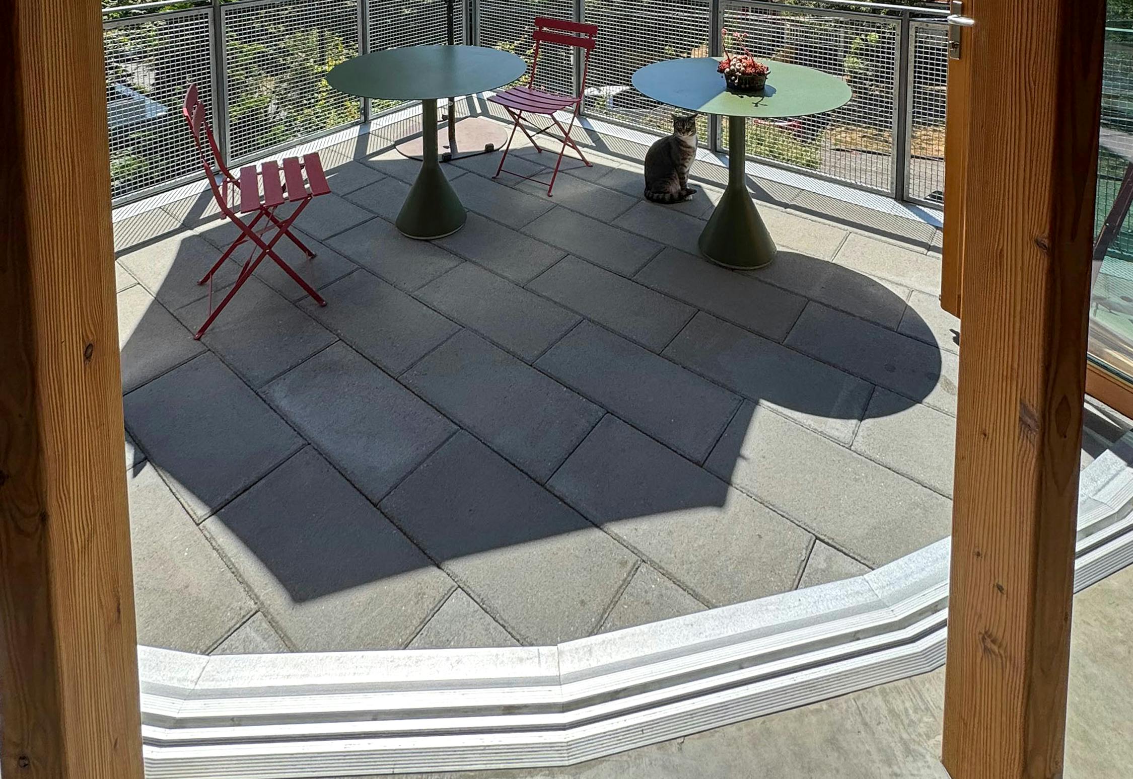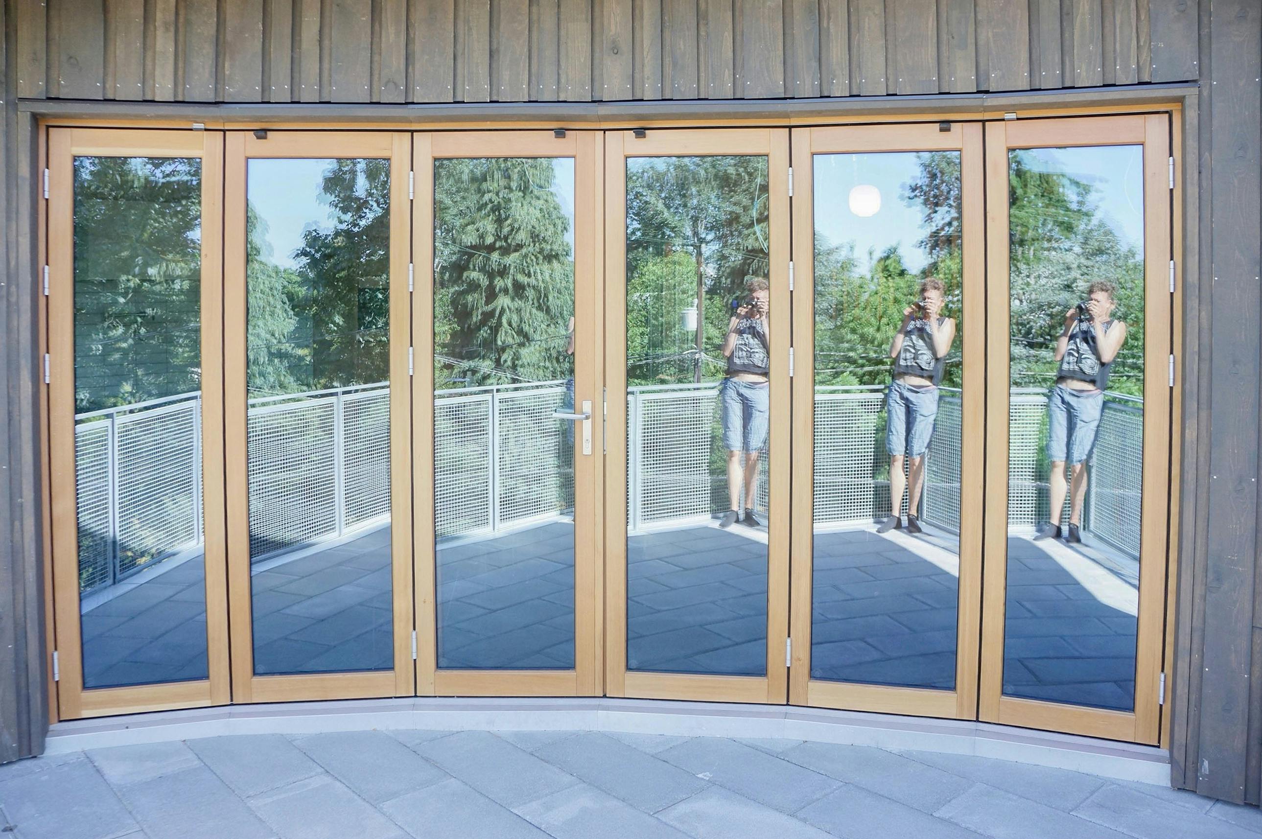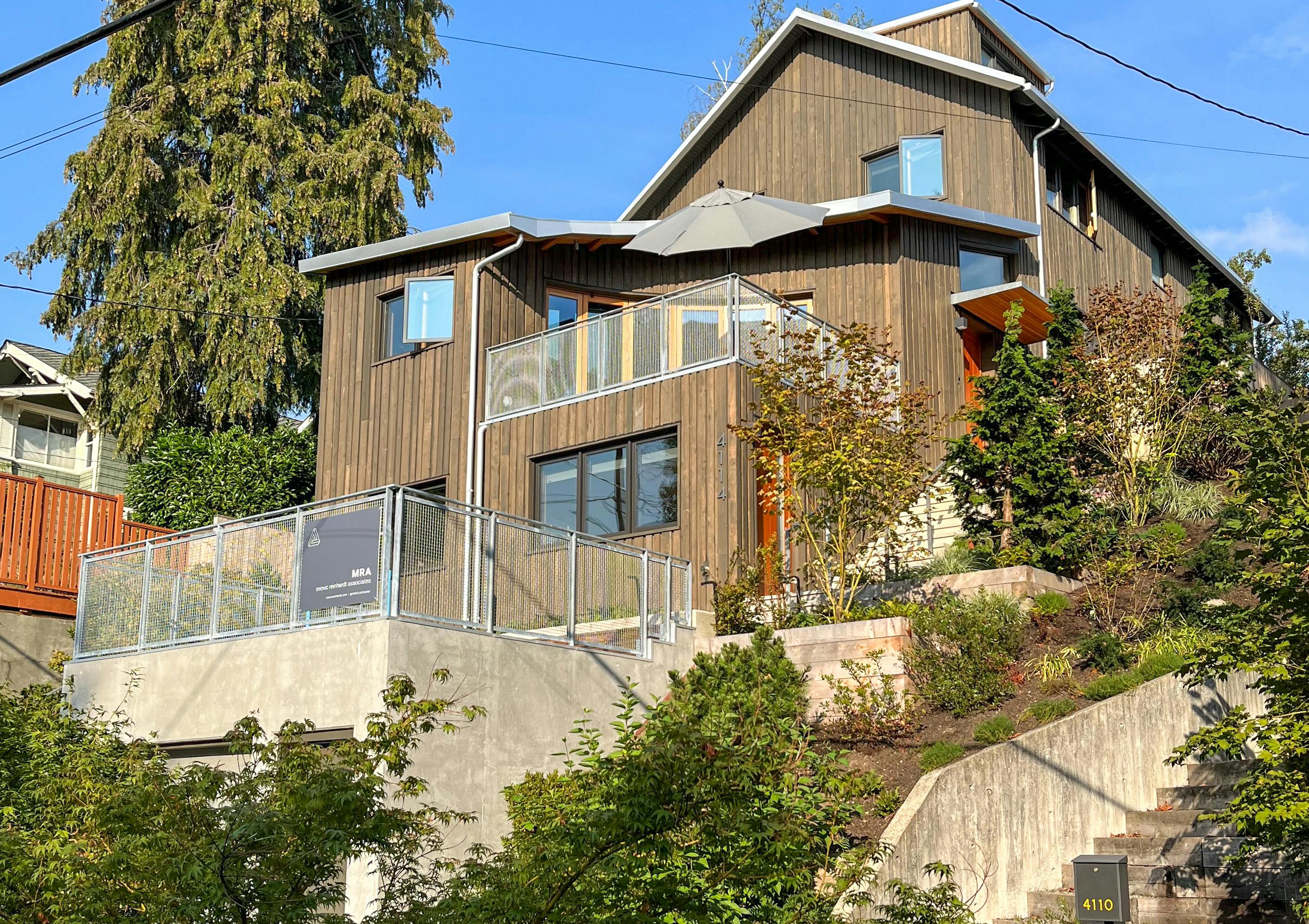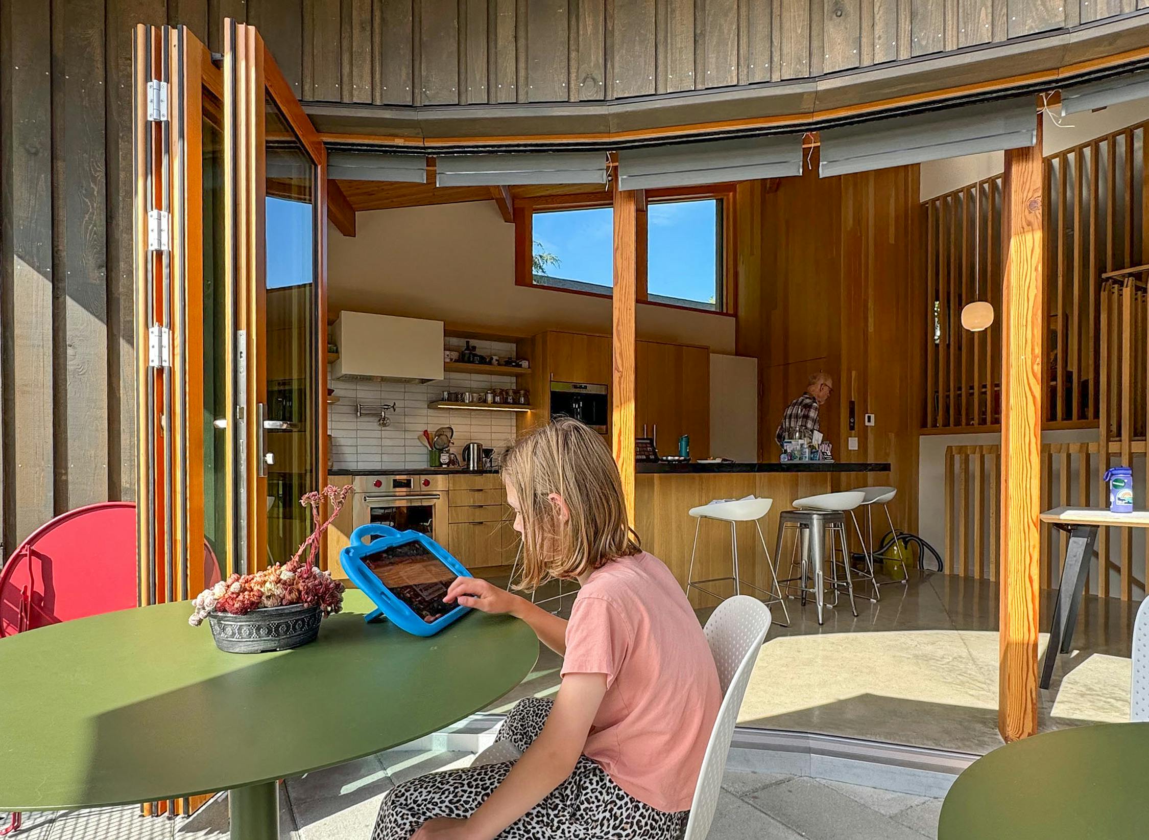 At this Washington home, the deck was designed by Odd Lot Design to be an extension of the kitchen with a striking, curved wood framed folding glass door. Despite its small footprint, the kitchen now feels larger and more connected to the outdoor.