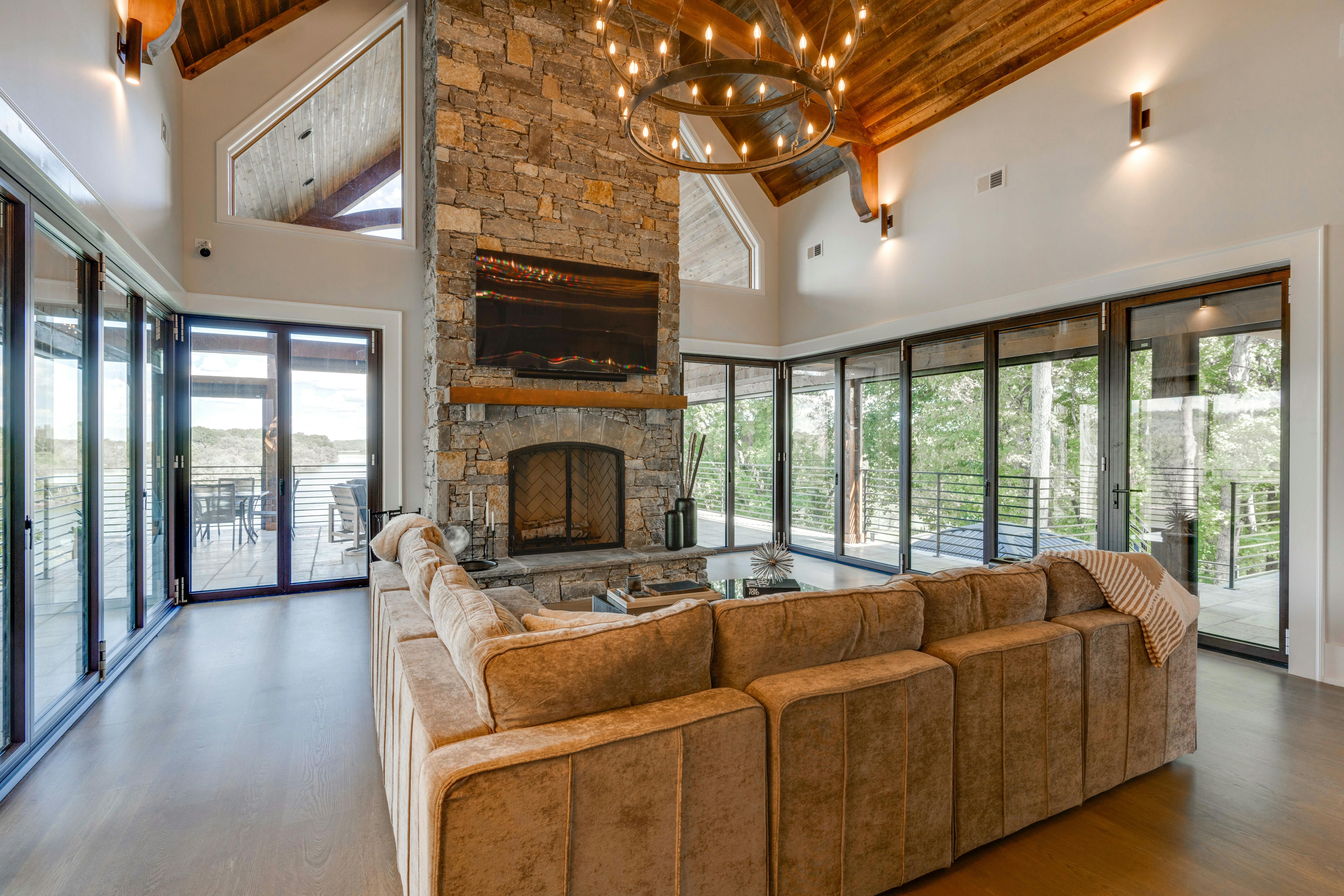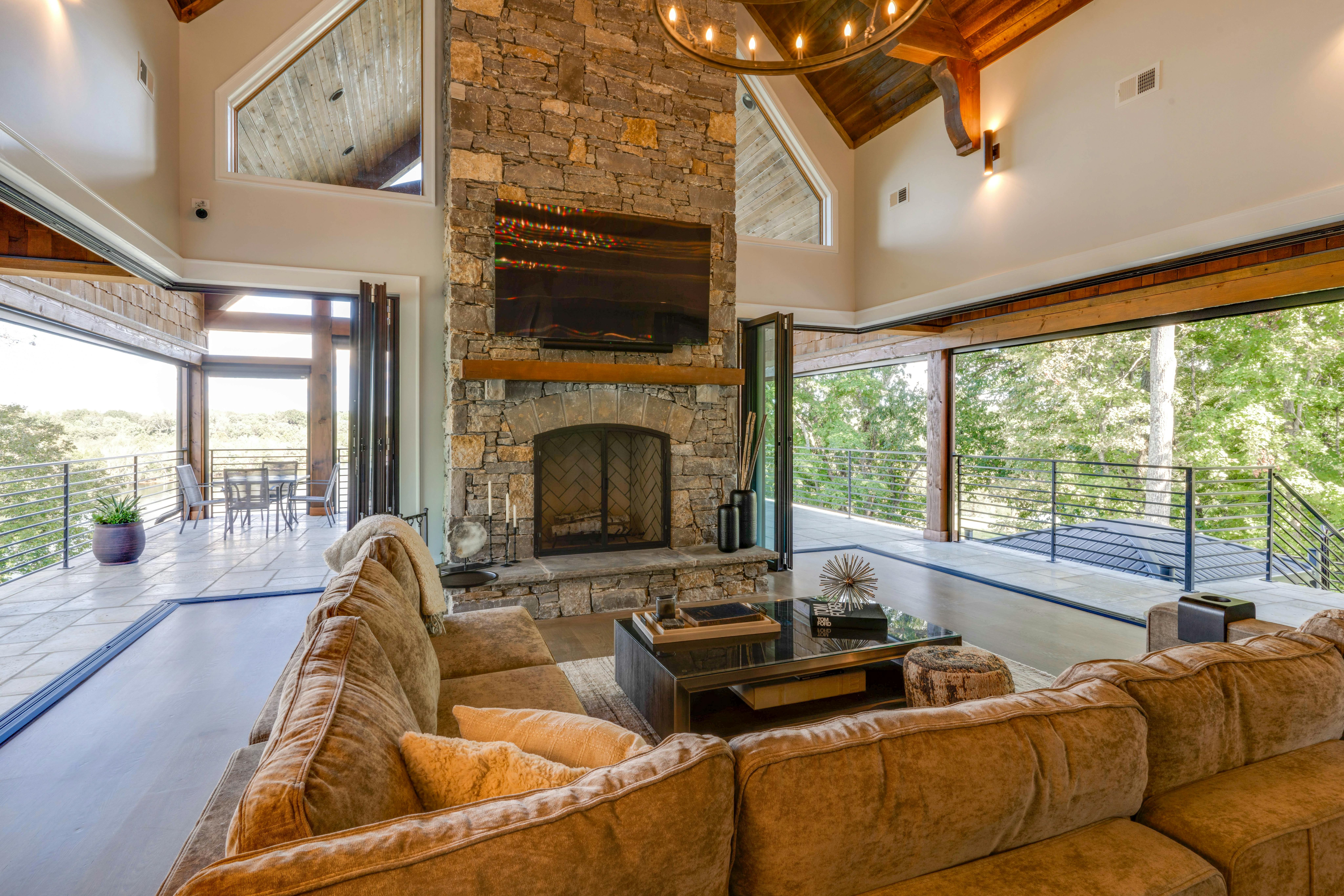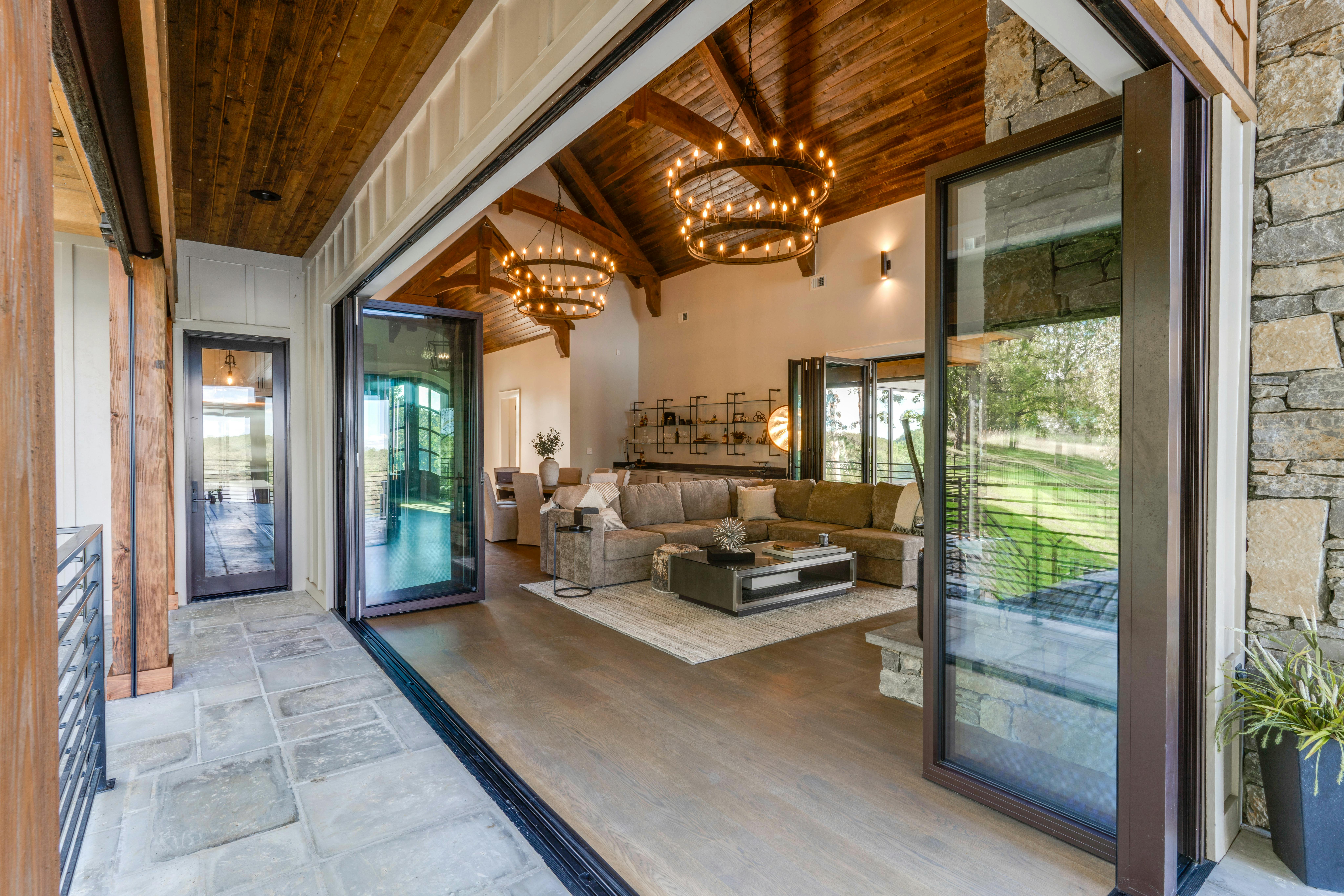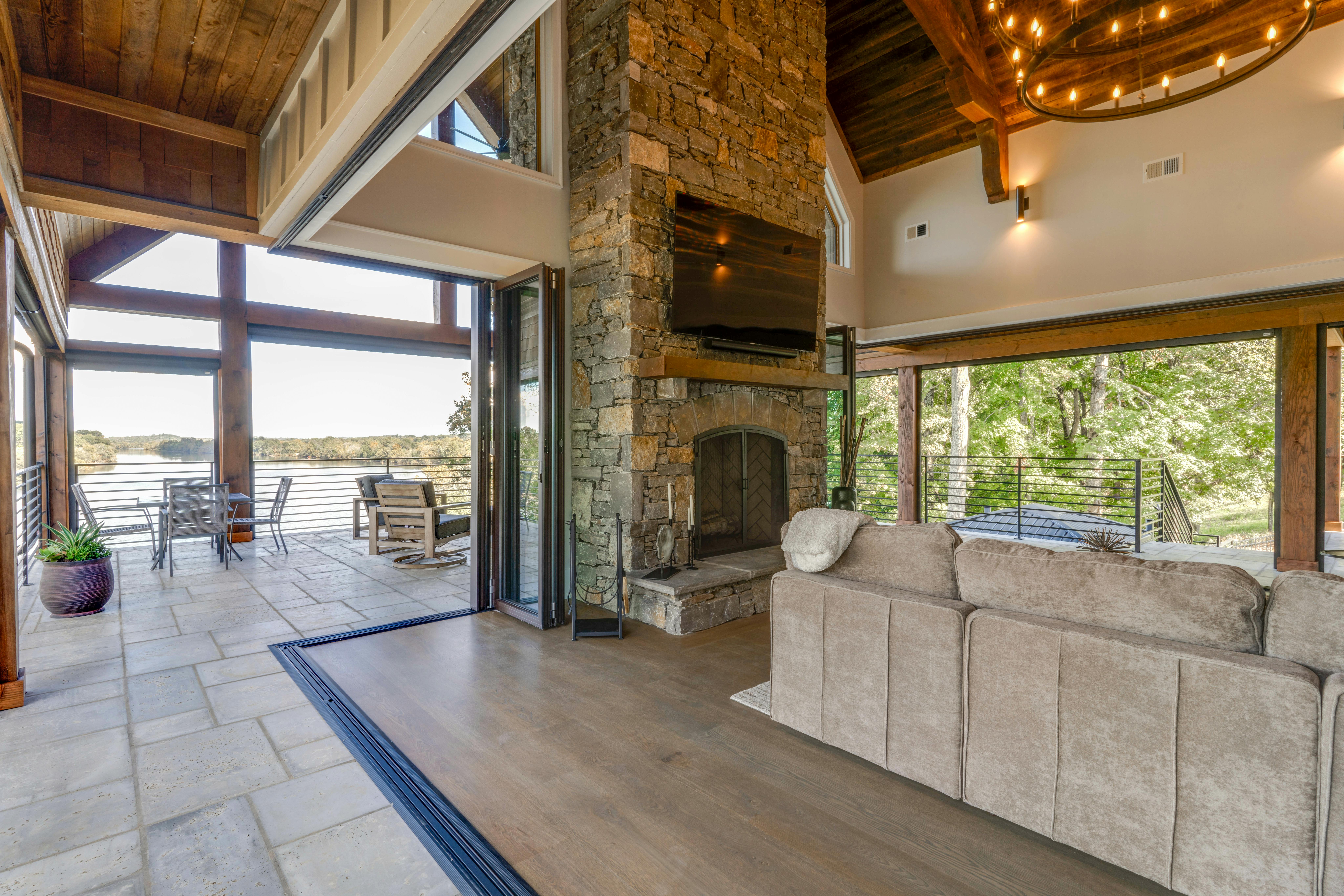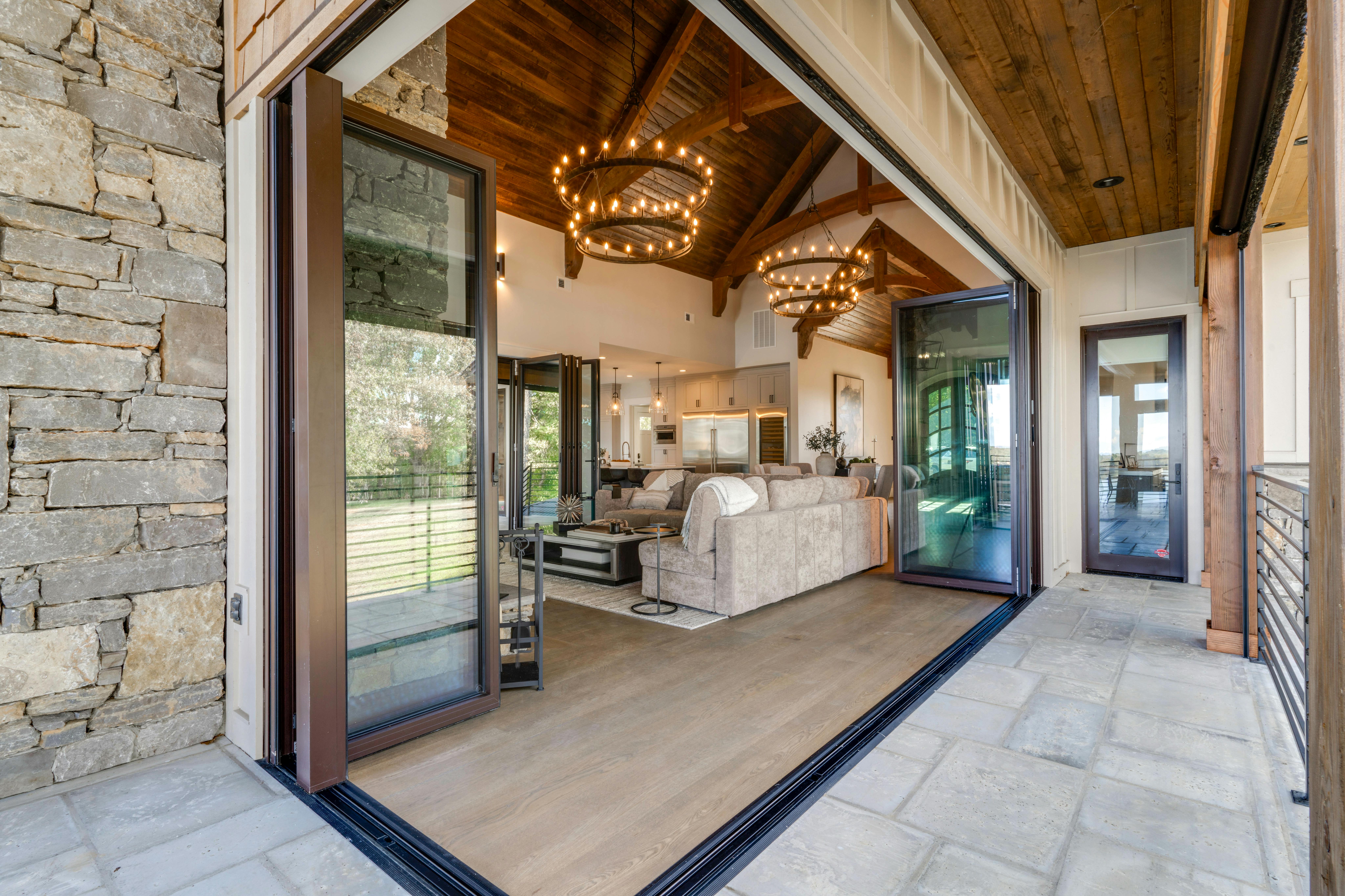 Celebrating the natural beauty of this Tennessee site, Home Design Works envisioned a timeless mountain home to foster connection and comfort. Two bifold door systems in open corner configurations honor the view.