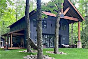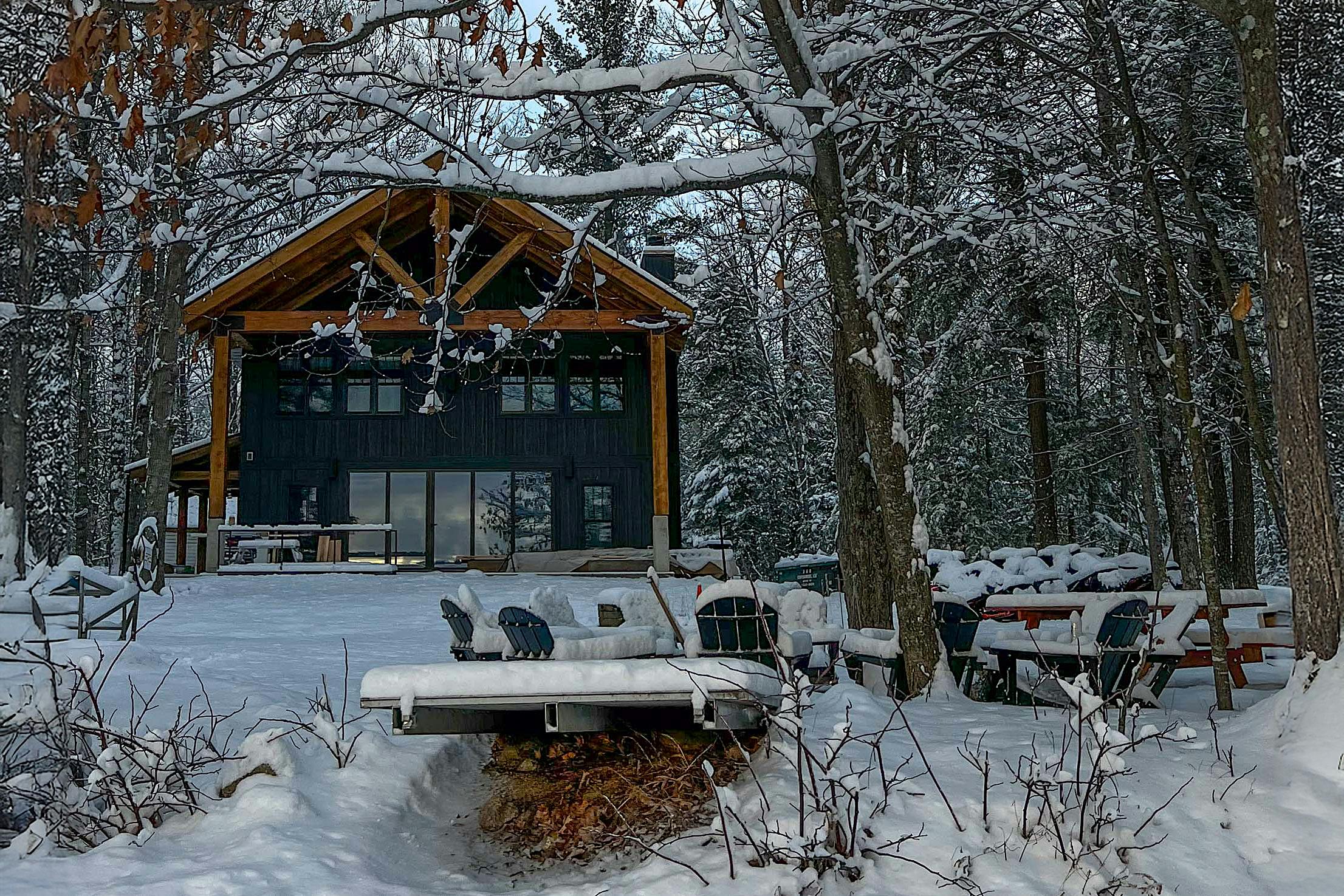 Located on a picturesque lake in Wisconsin, this rustic yet modern abode was envisioned as an inviting year-round lakeside retreat for indoor-outdoor living and entertaining friends and family. Designed by architect Michael Casper and built by Brownell Construction with guidance from Tahoe Build, the home was built with weather performing and energy efficient solutions to extend its function well into the snowy, winter months.