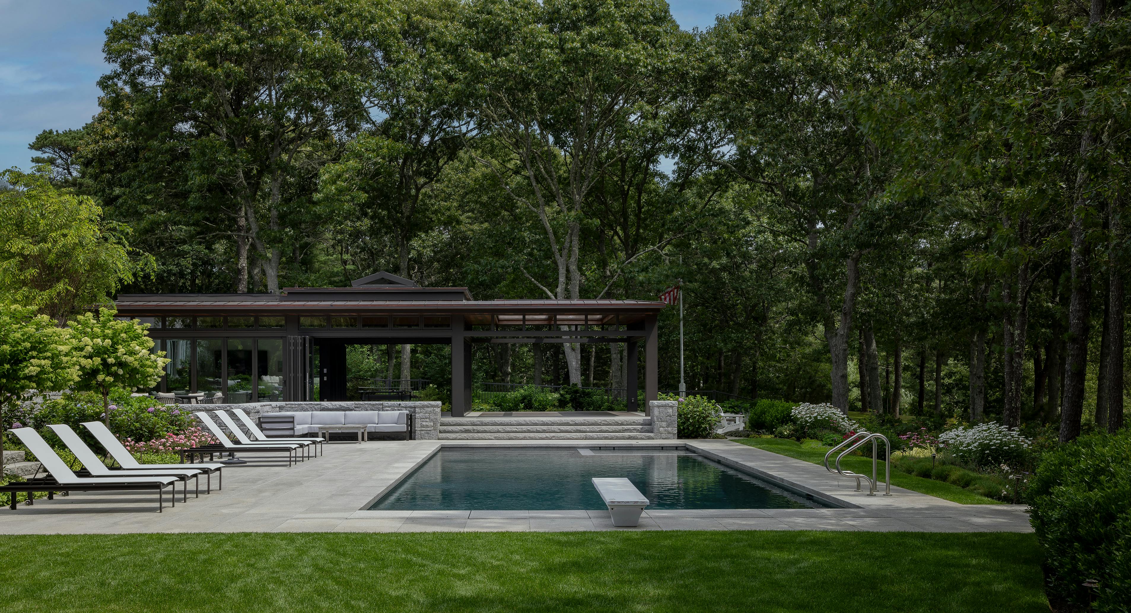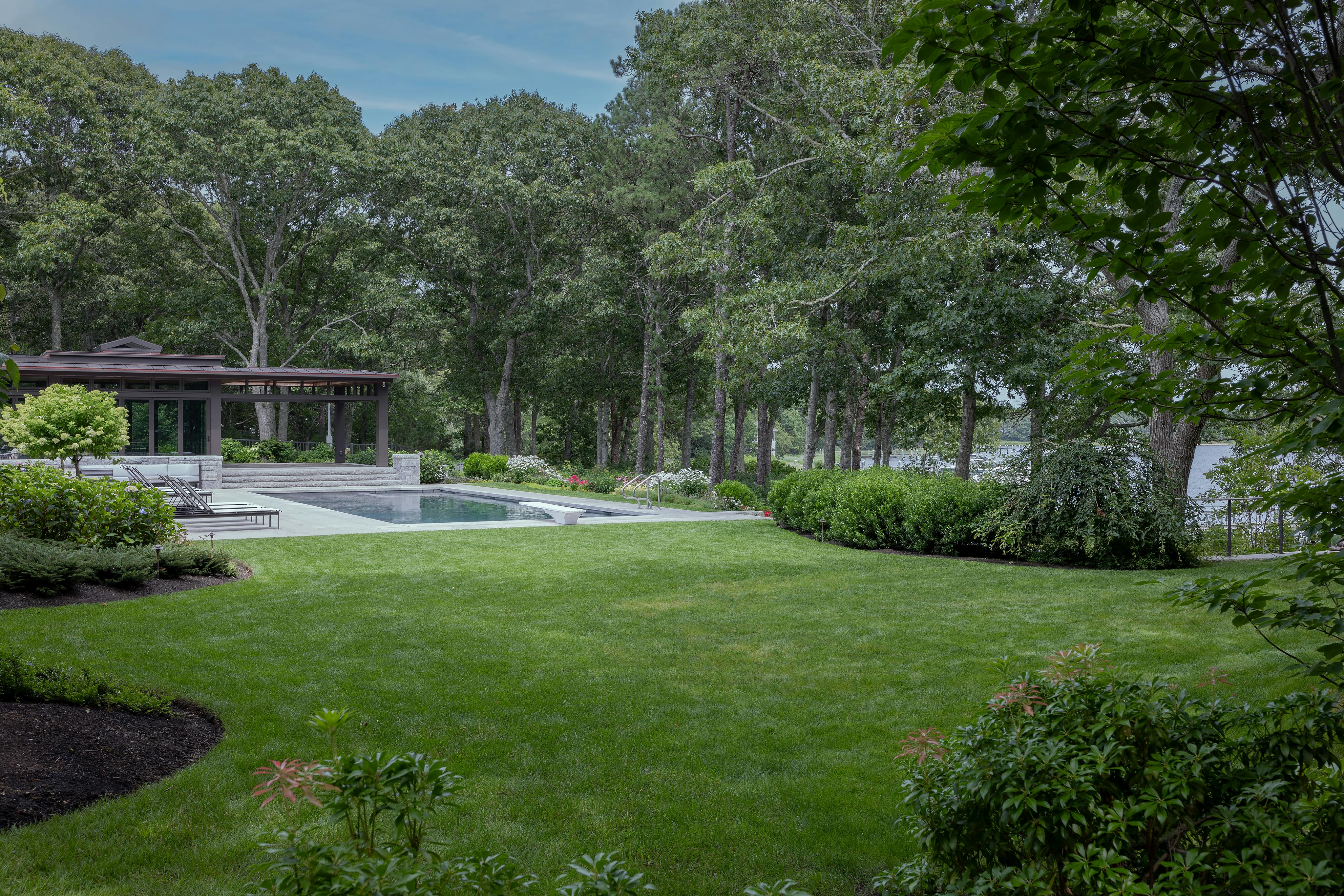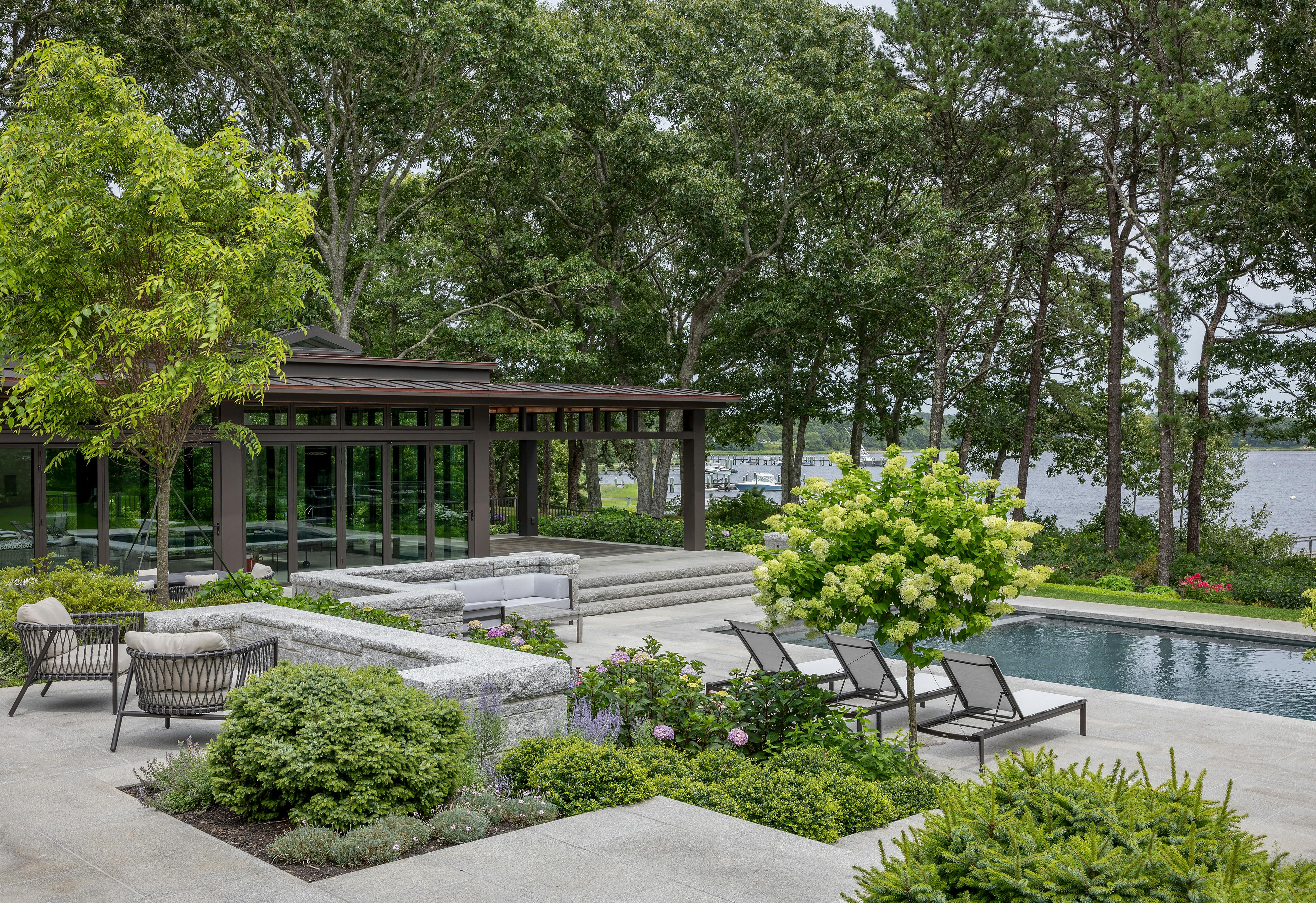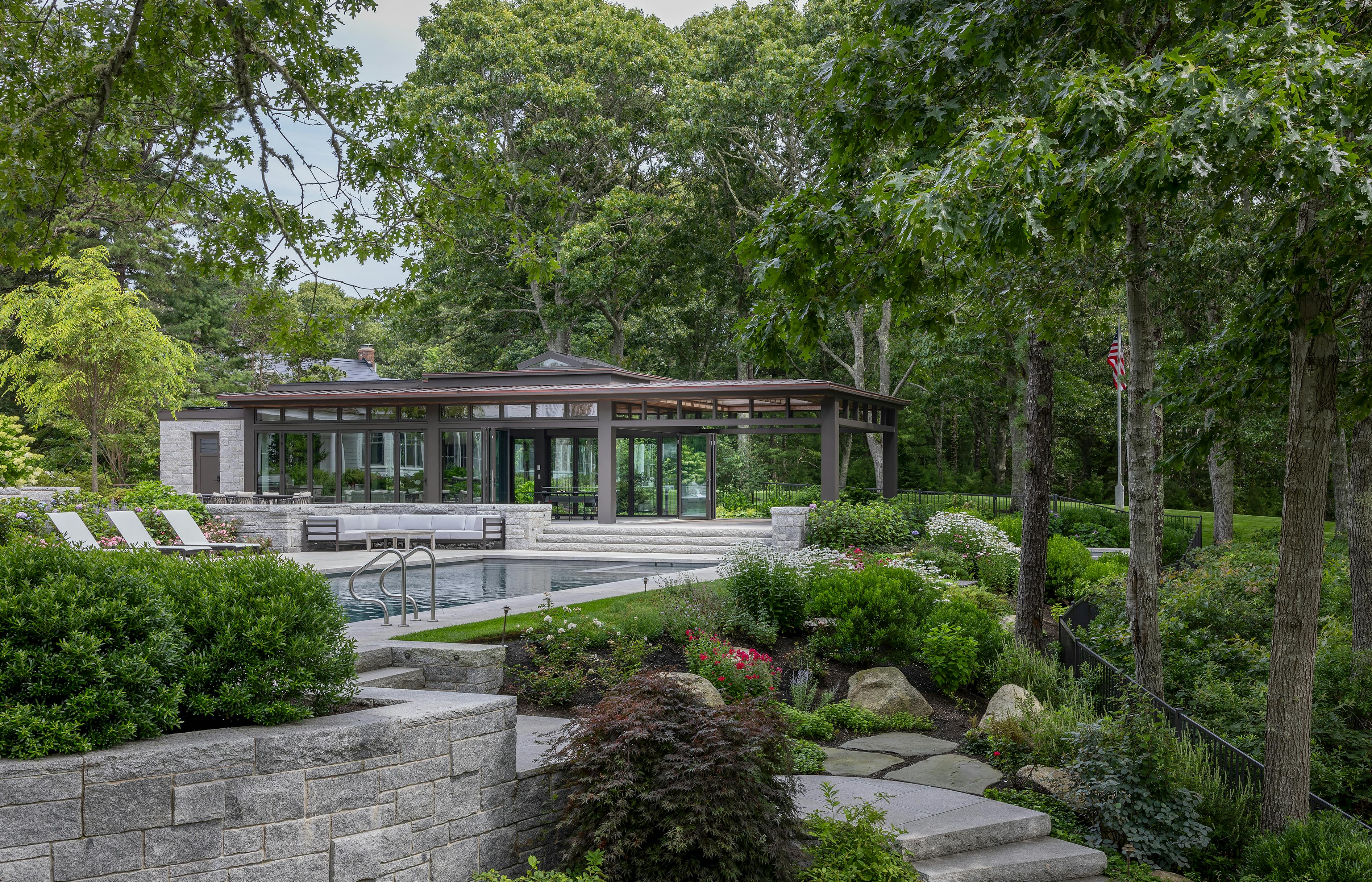 Drawing inspiration from the topography, this Cape Cod project was designed to create open, transparent structures that nestle in the trees and hover above the land. Designed by Doreve Nicholaeff Architecture.