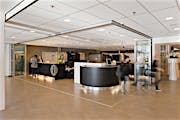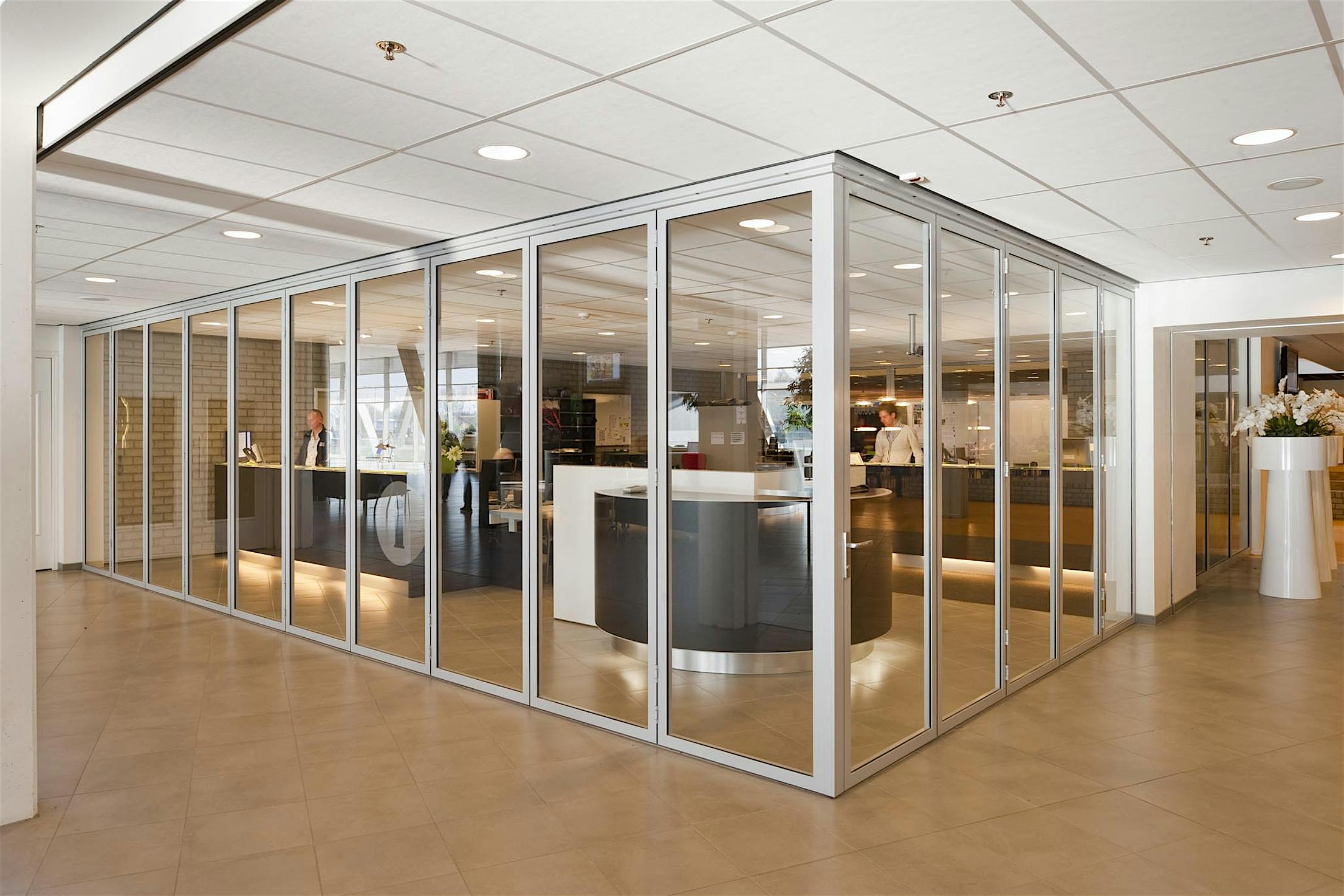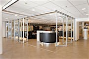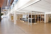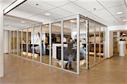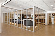 Although the school’s original vision included fixed metal and glass walls that would form two separate classrooms, the architect proposed a more dynamic design with acoustic glass wall systems to provide maximum flexibility of space.
