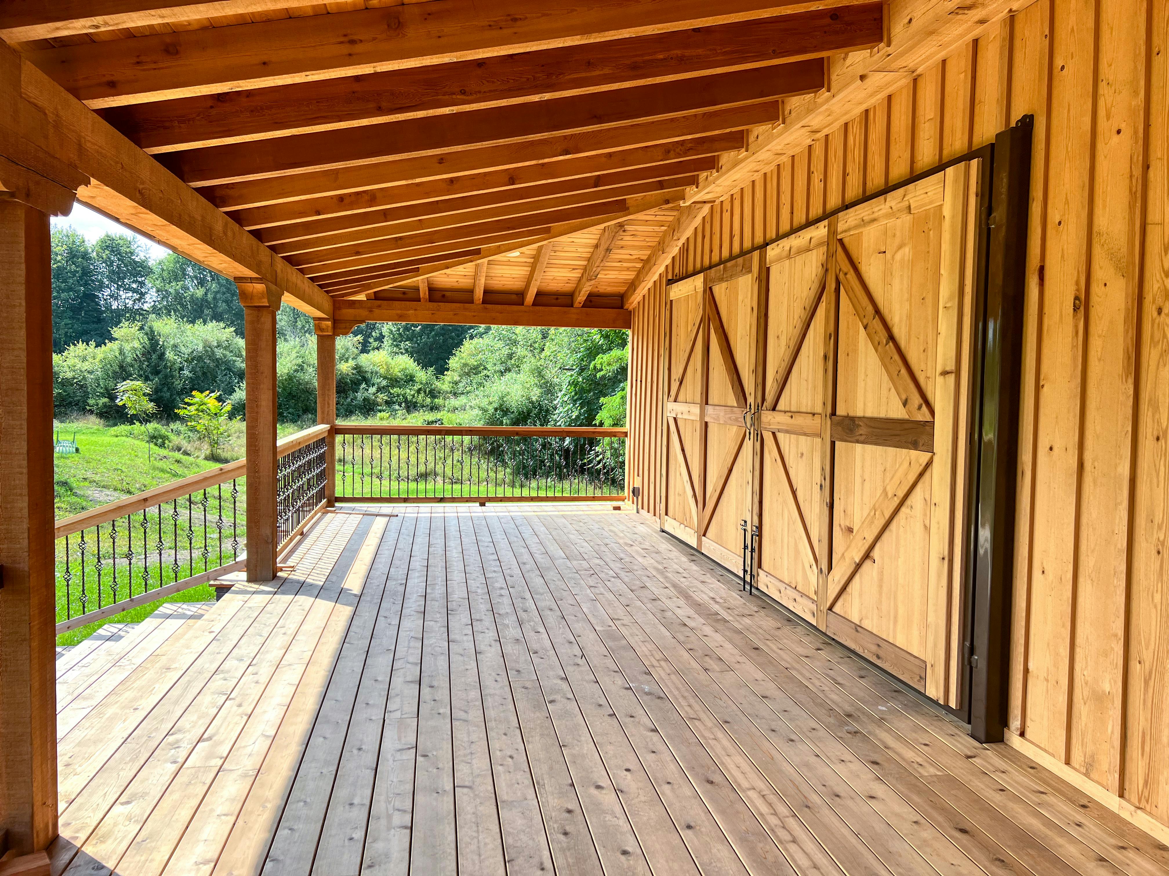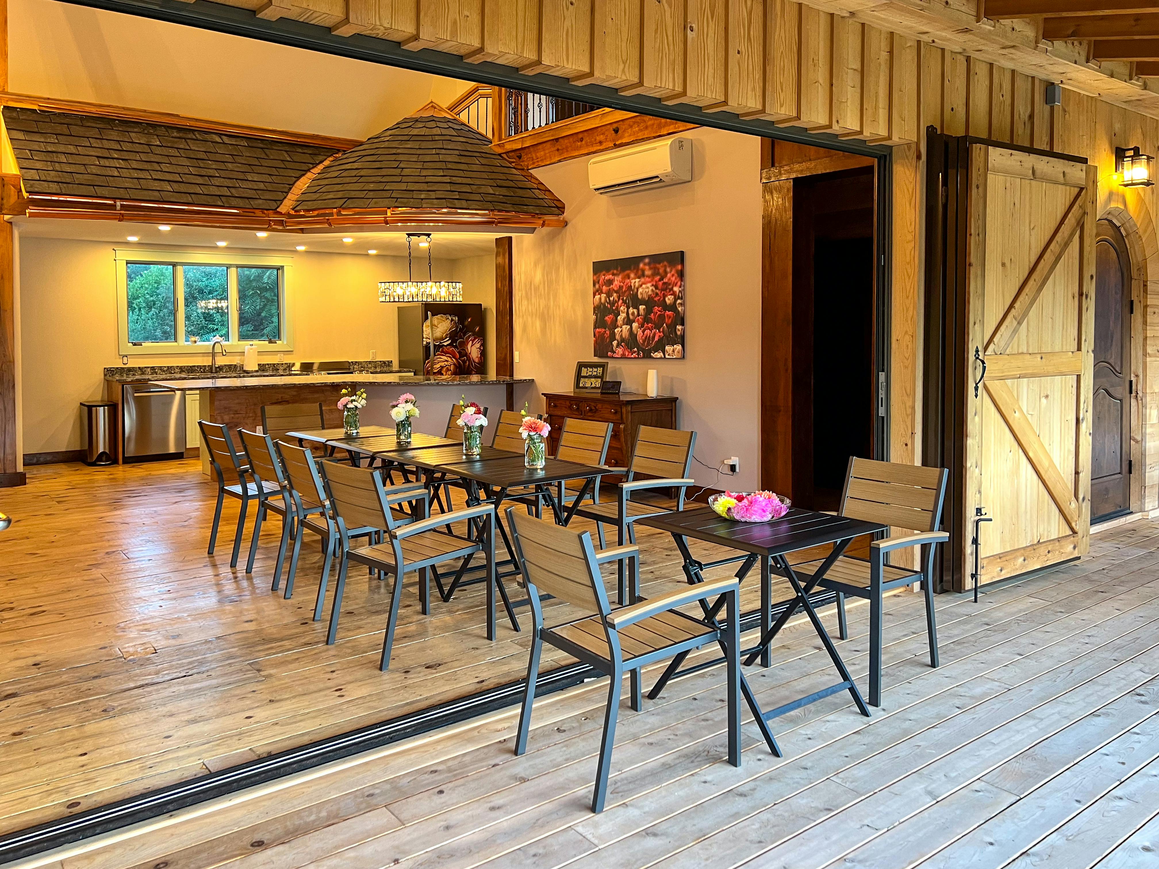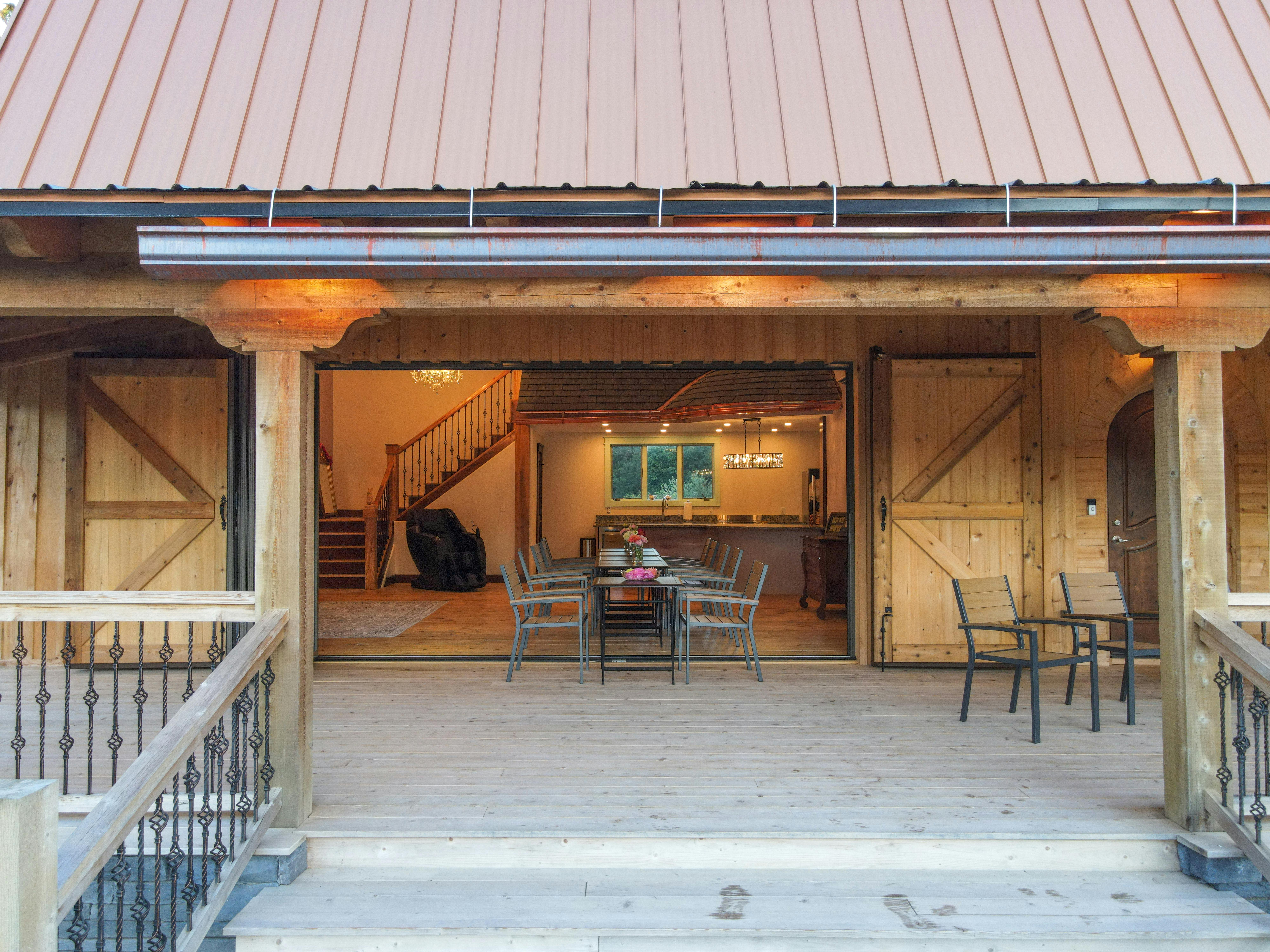 The vision for this Michigan project was to make something out of the ordinary for a 100-year-old barn. Designed and built by Marzenie Signature Homes, the reimagined ADU seamlessly incorporates a folding glass door to blend the outdoor space.