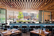 The bar opens on two sides with 15 panels of sliding glass wall taking up an expanse of 47 feet. The 86-foot-long dining room wall opens on three sides with 26 panels that park within three compact bays. The panels store completely out of the way preventing interference from open views, traffic flow, and table layout. “The way the operable doors retreat into discrete areas was really important for us,” notes Touloukian. “The flush sill details and the ability to have a pass door were also significant selection factors, as was energy efficiency. NanaWall allowed us to open it up and extend the room, make the space feel larger. The system opened up the building to make great connections to the park and to the historic buildings downtown.” The combined effect of the spreading roof and opening walls were fundamental to the design. “We lift the building up,” he explains, “and create complete reciprocity between the building and the outdoors. The perimeter of the building disappears. There is no interior or exterior, it’s all one space.”