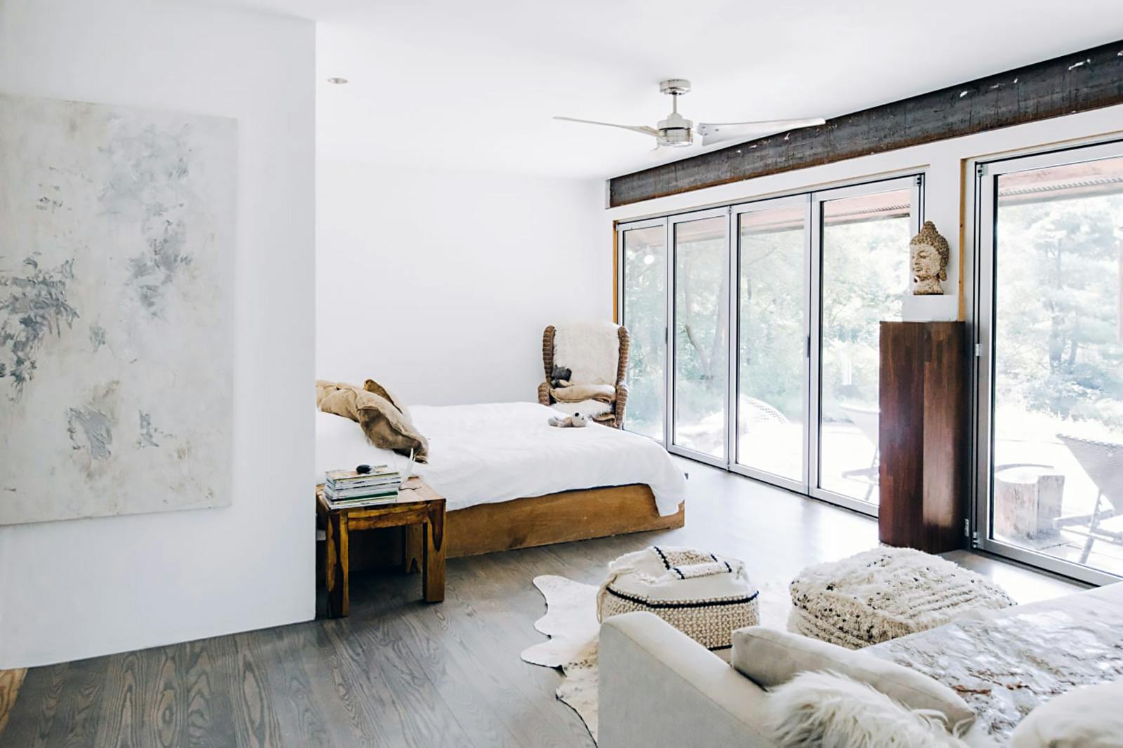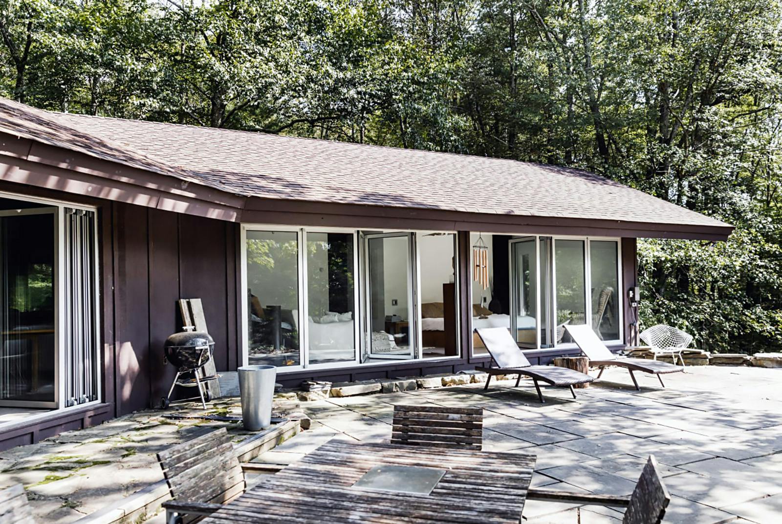 Multiple units of NanaWall SL60 were selected for the project because of its minimal sightlines and its ability to thrive in a tough Northeast climate. Folding door connect the mountain terrain with the inside of the home, even when the doors are closed.