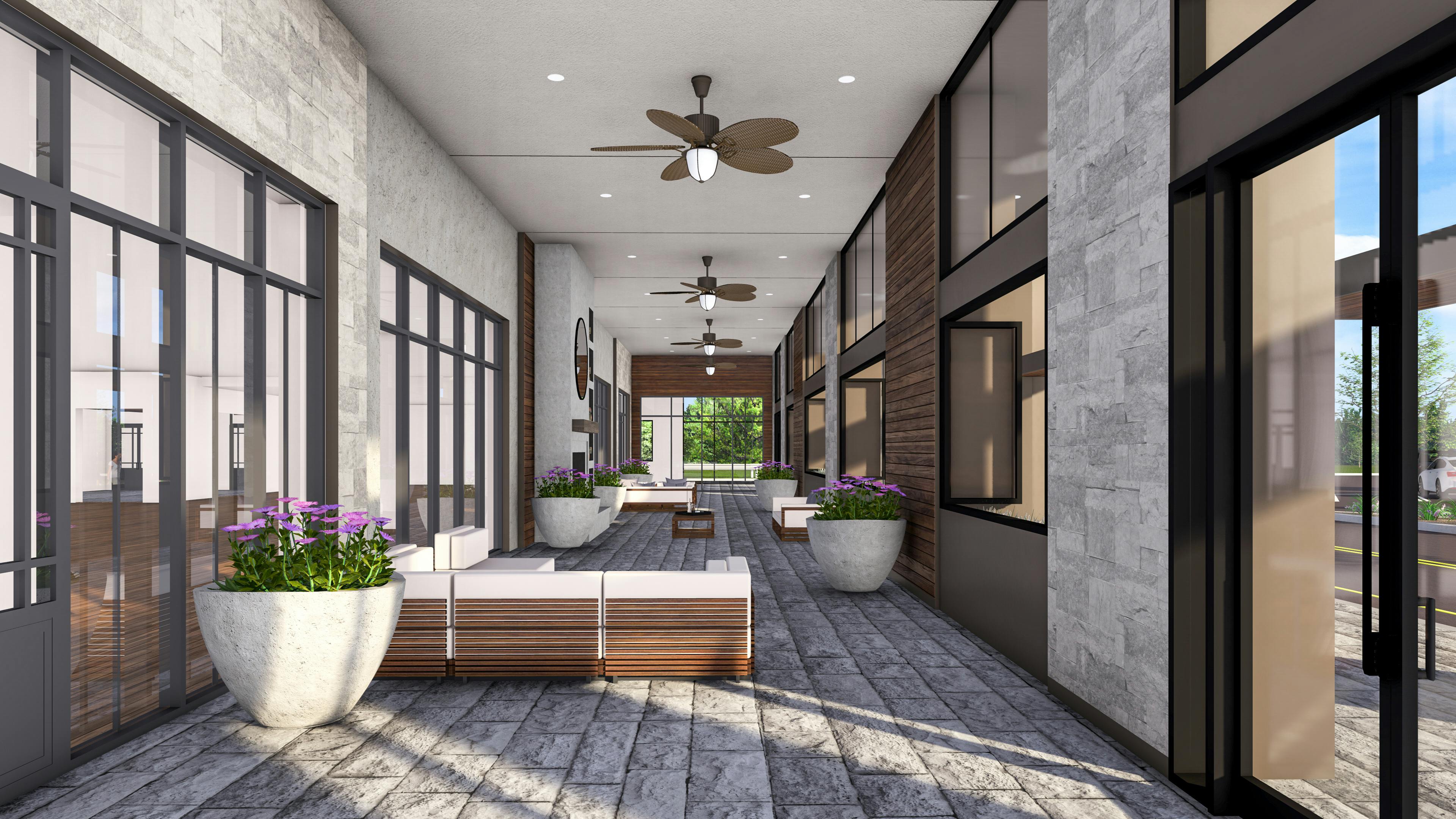 The Charles Sparks team chose a NanaWall system for this Starbucks because the product allowed the firm to modify the appearance of the wall. They needed to parallel the train station and café aesthetics.