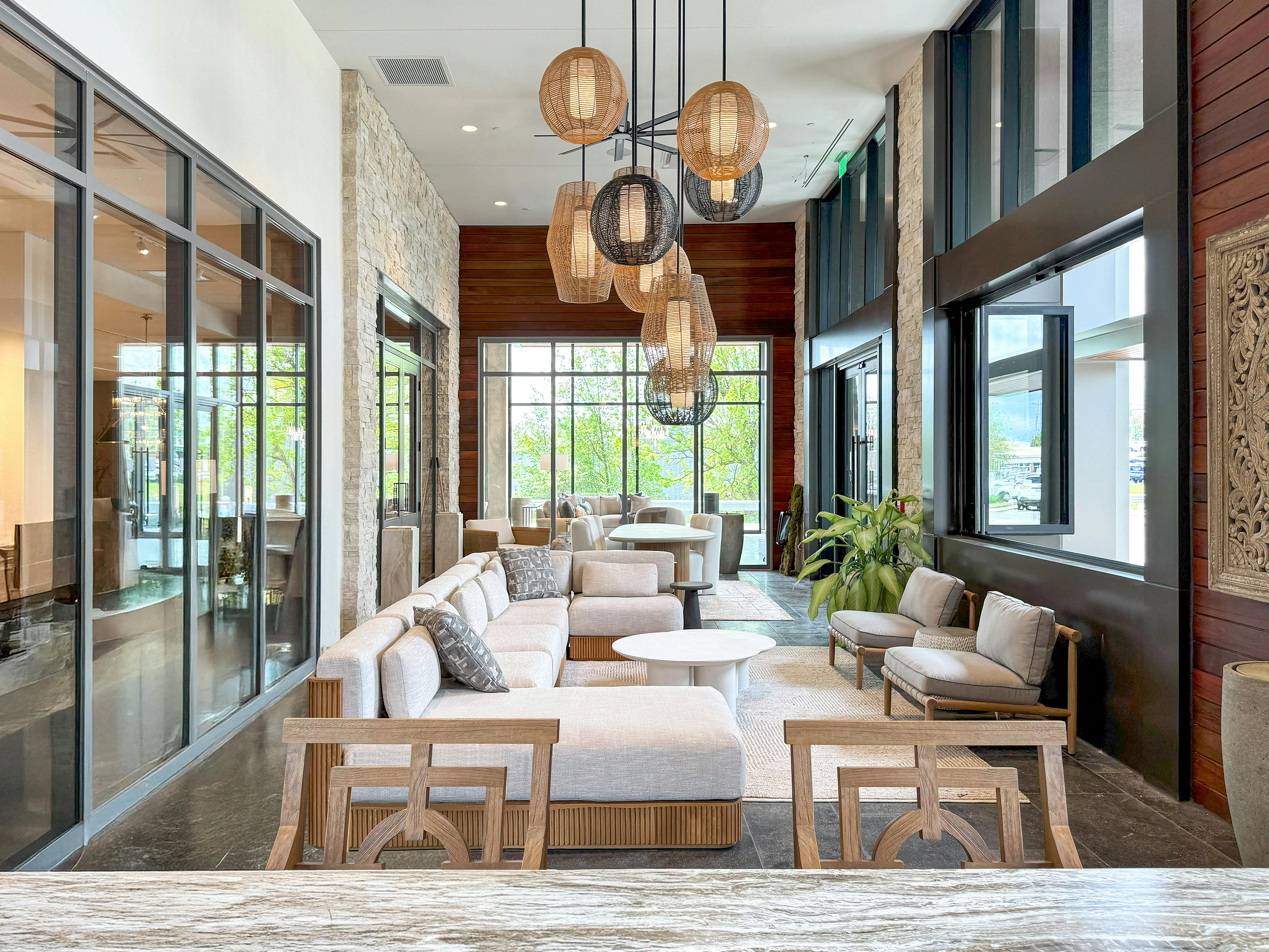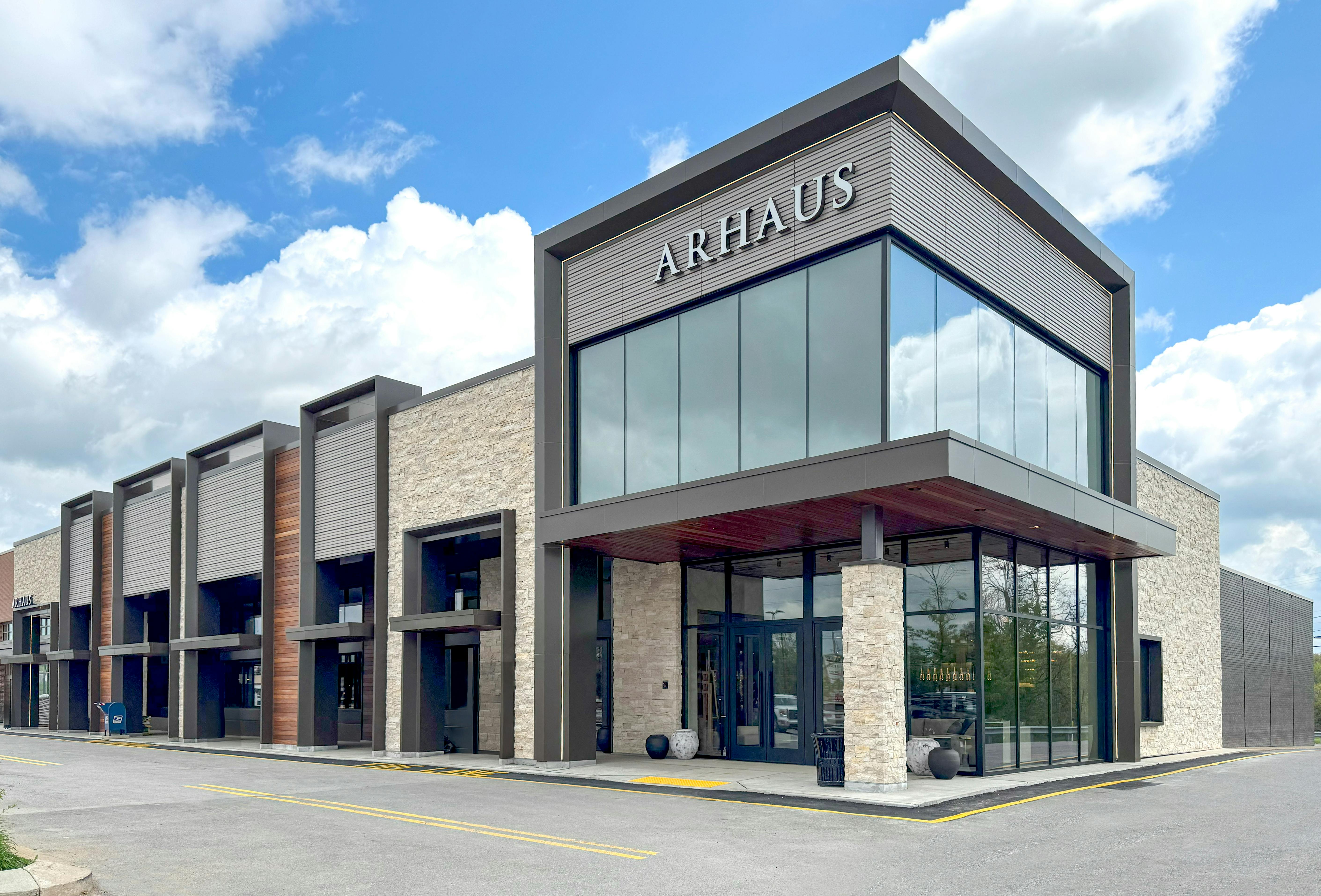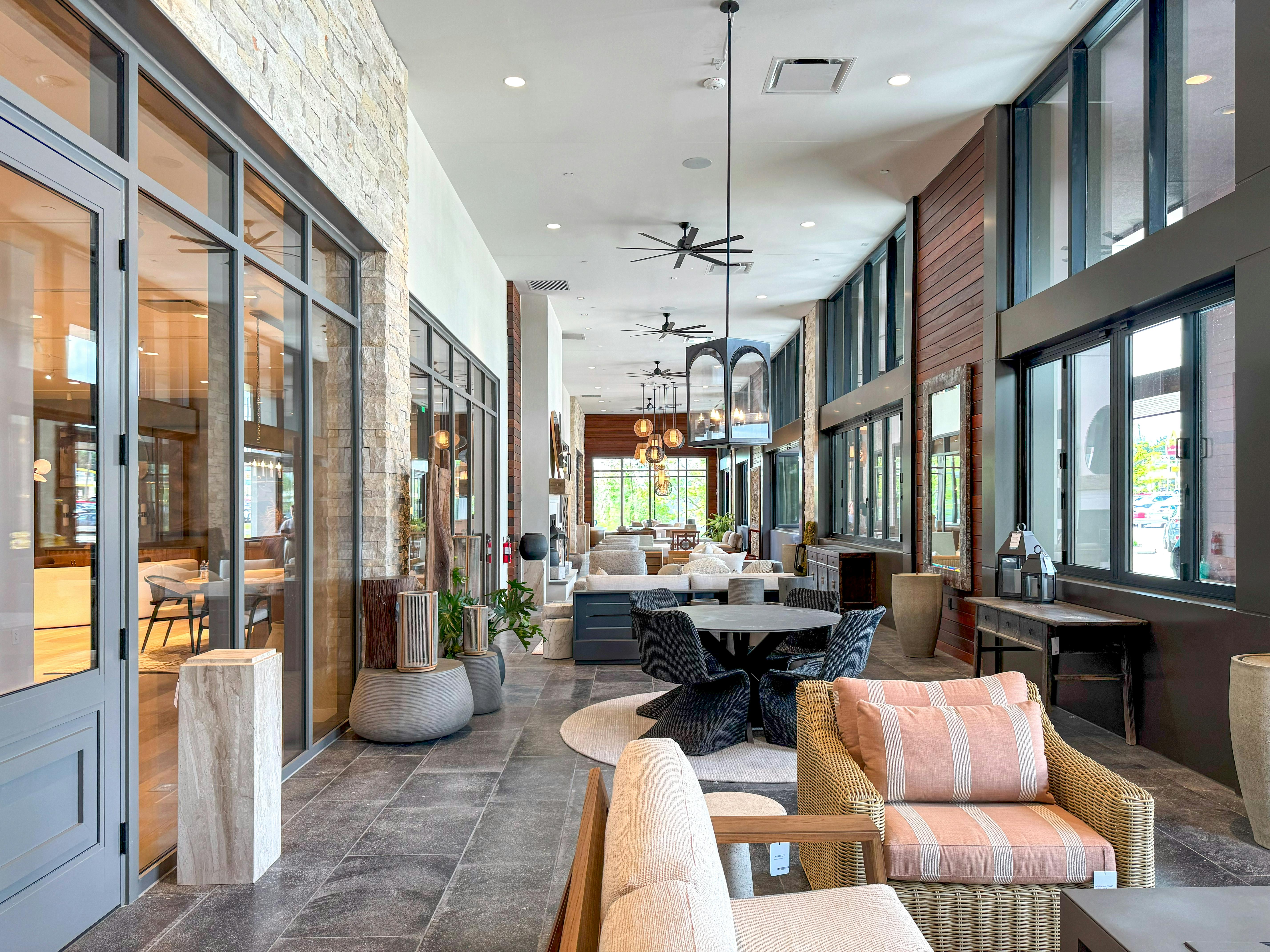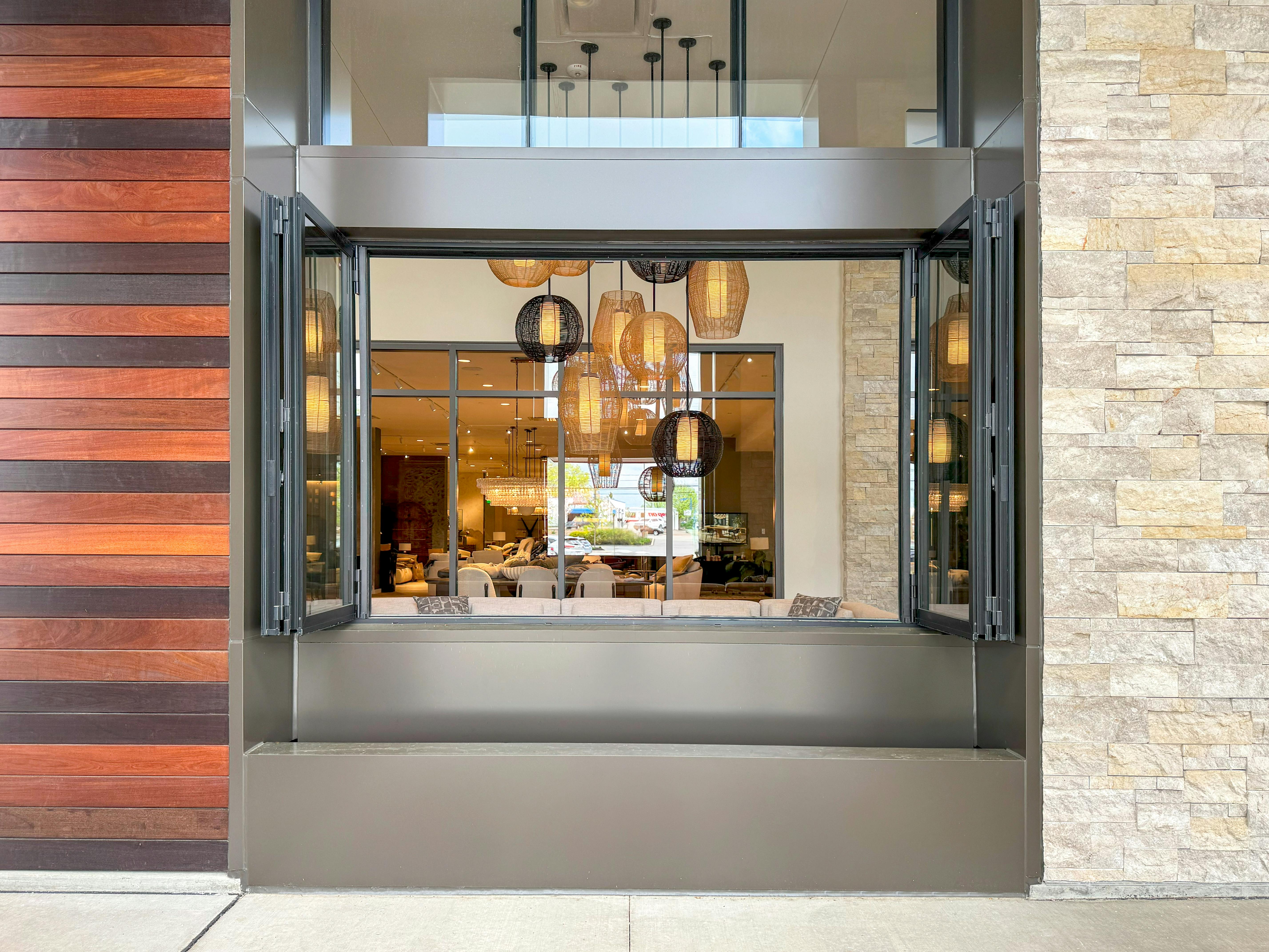 Designed by Onyx Creative, this Pennsylvania Arhaus store uses folding glass windows to create an open-air shopping experience that seamlessly blends indoor and outdoor spaces.
