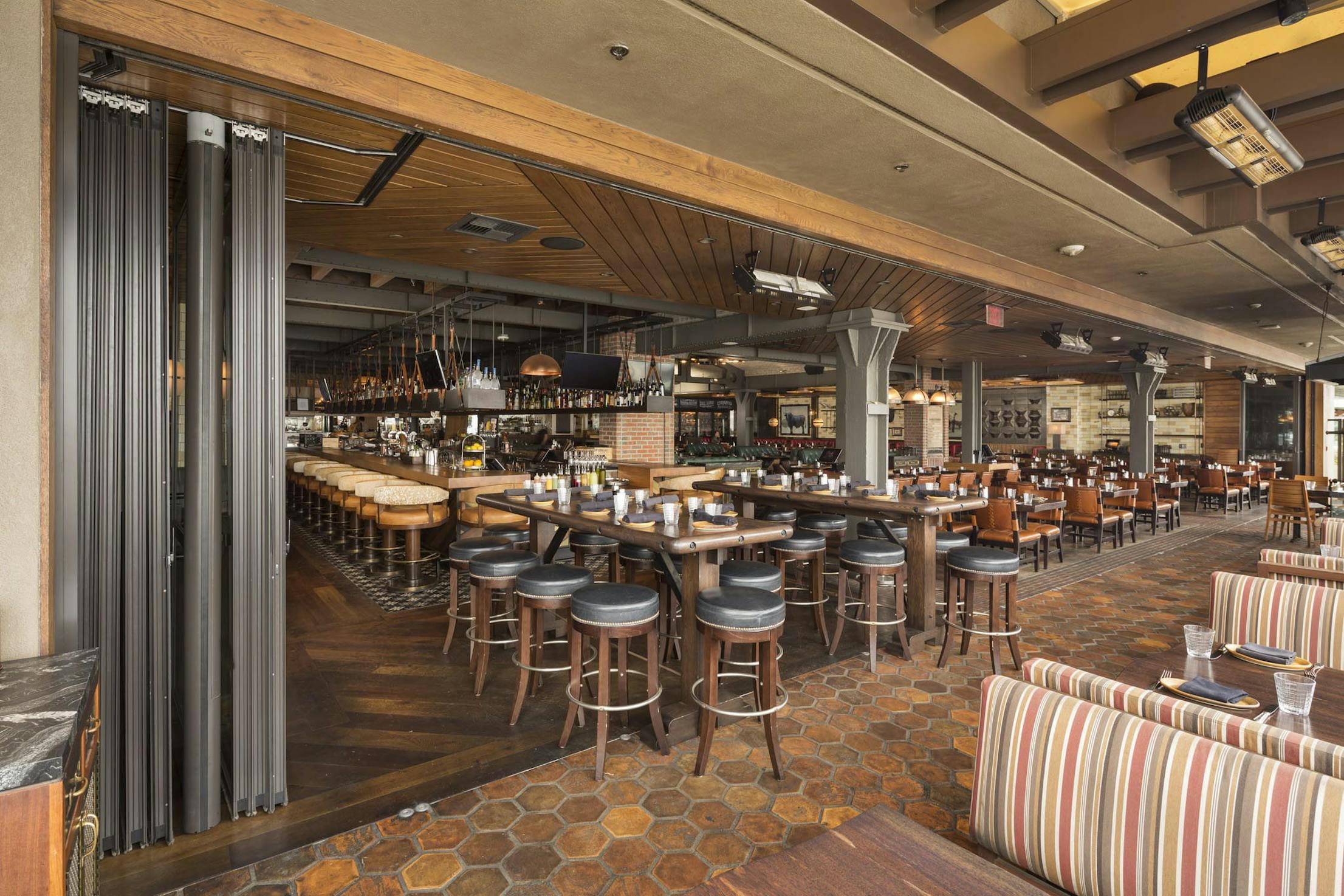This Florida restaurant blends indoor and outdoor dining with elegant ease, opening wide through multiple folding glass doors. Completed by Petrie Construction LLC, it offers an immersive coastal experience.