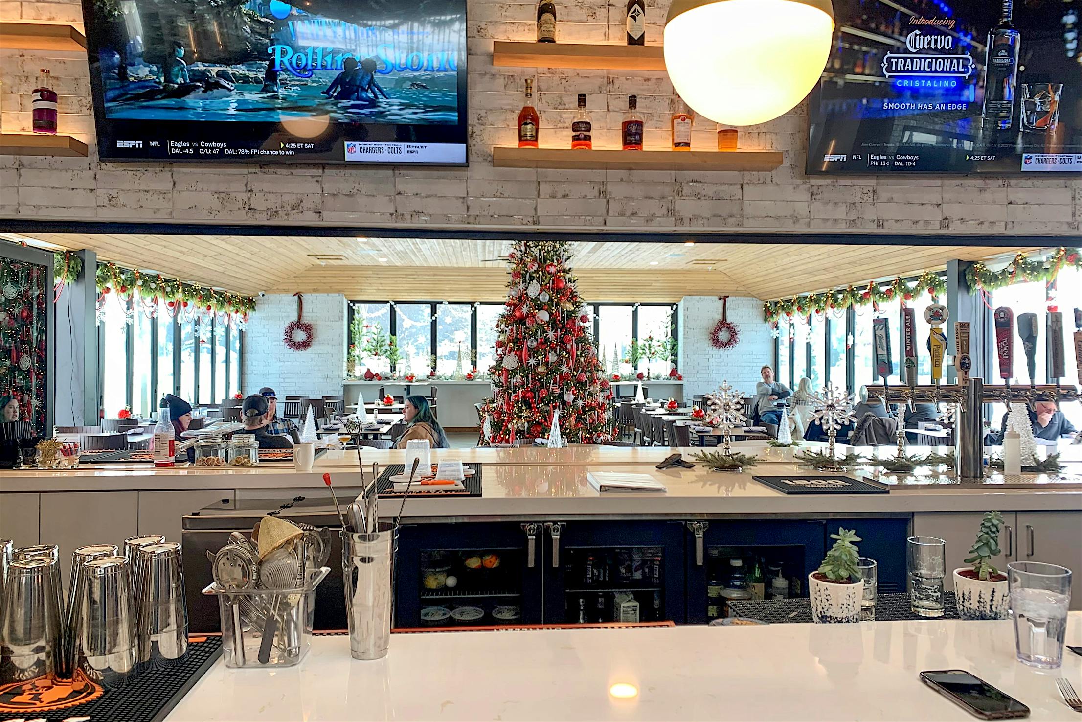 Behind the main bar, we removed the old bank Teller window and installed a NanaWall to open into the enclosed patio area. We used three more NanaWall Systems in the enclosed patio area to allow the space to be open air in the summer months but still function as climate-controlled space in the cold Minnesota winter months.