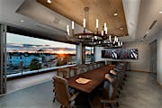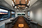 Perfect application for a NanaWall to open a Corporate Conference Room to a covered balcony and setting sun.