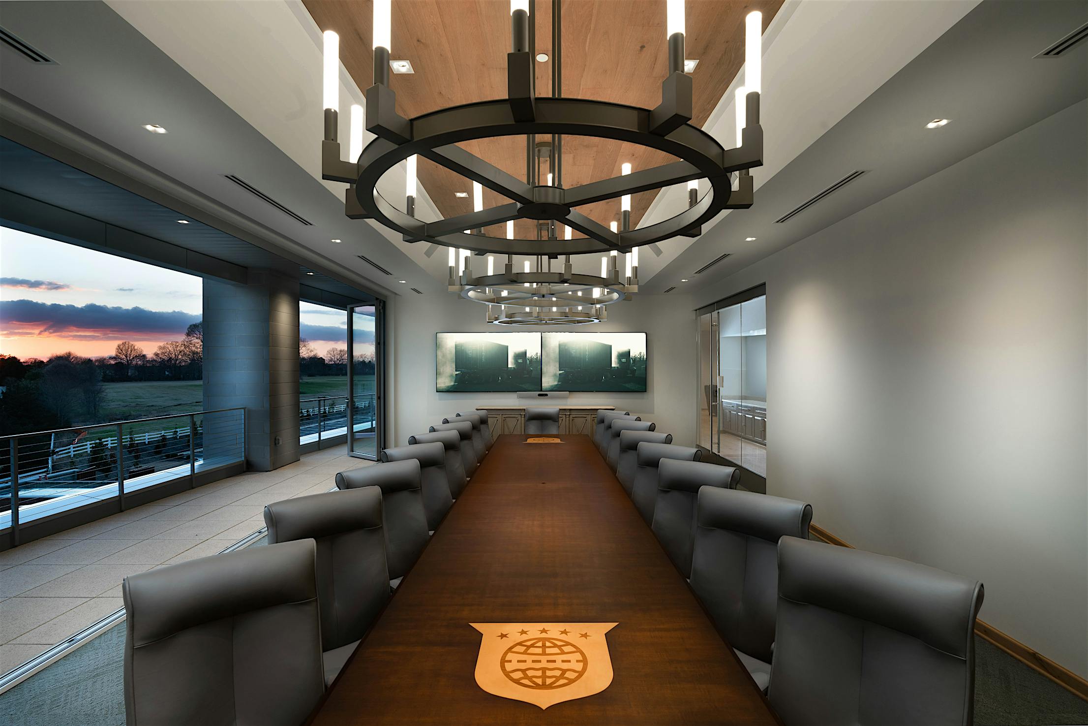 Preserving as much openness as possible and the gorgeous views while creating a flexible meeting room at Actelion’s U.S. Headquarters was a priority for this interior project