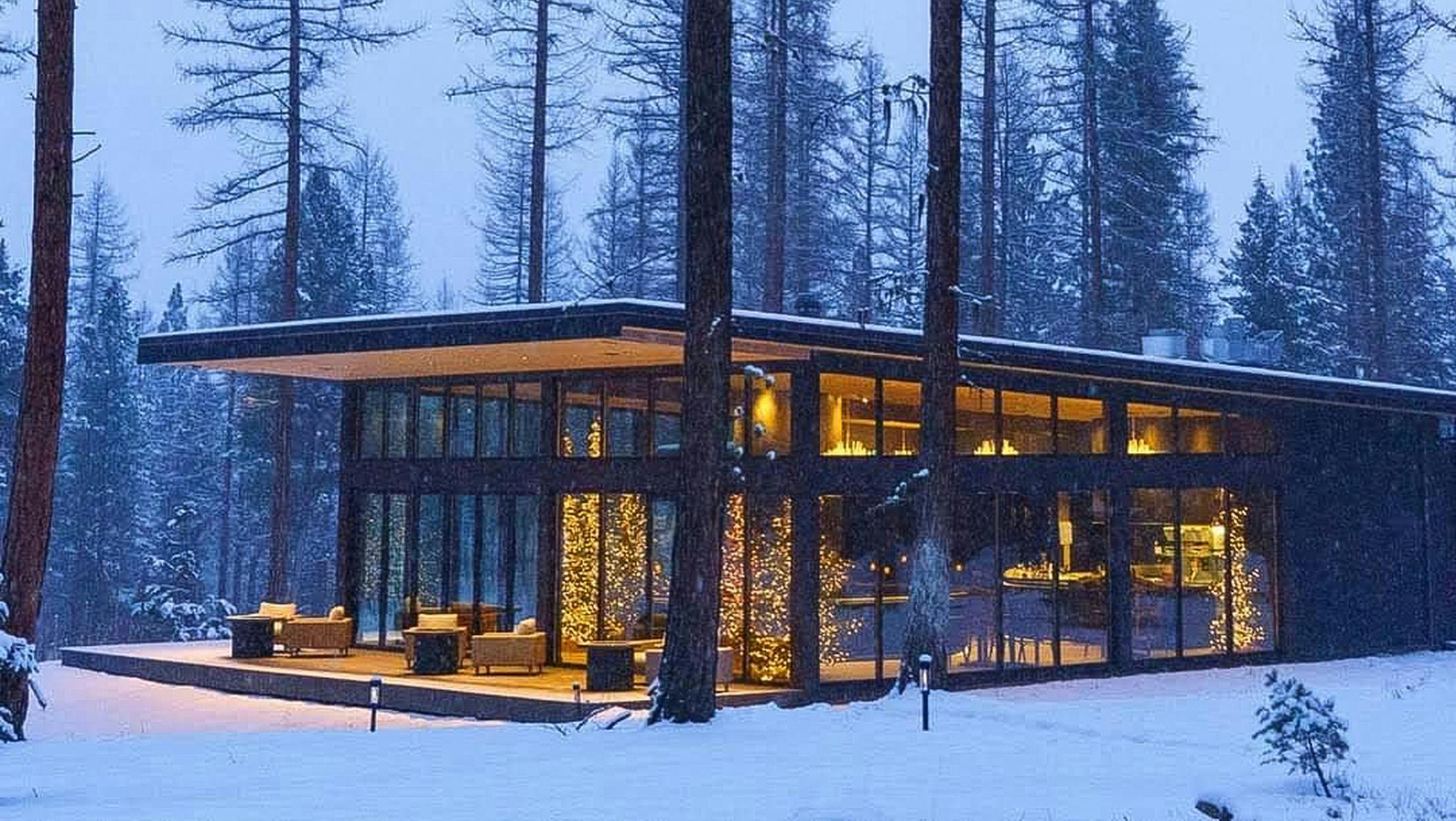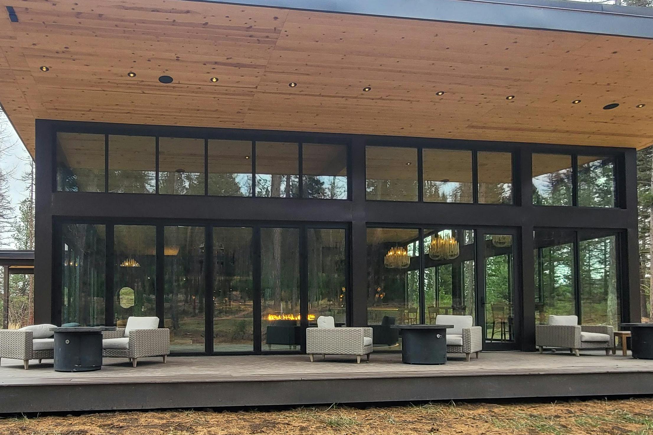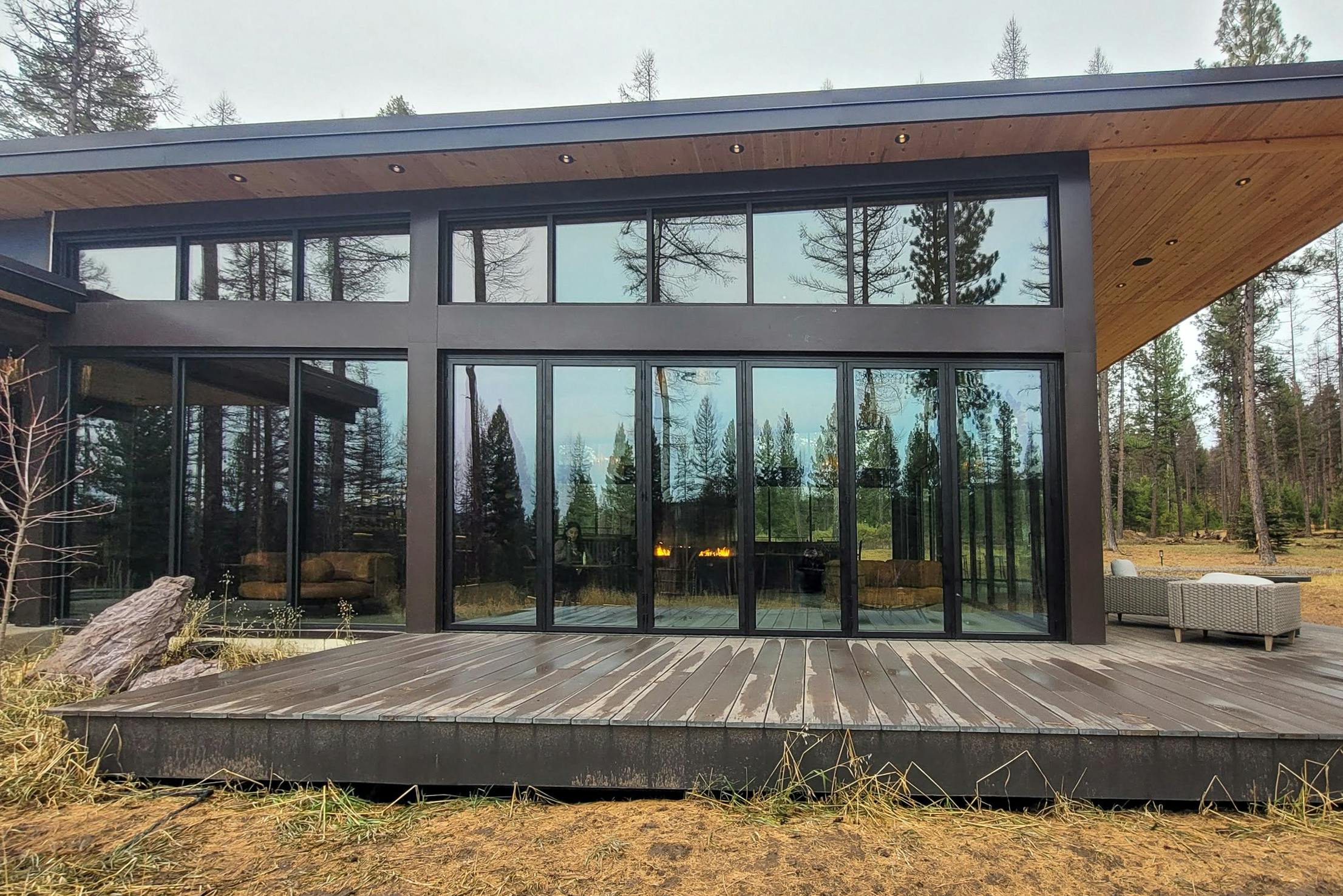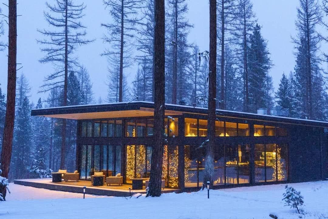 NanaWall doors truly help all year round by opening up to enjoy the woods around the property or keep it cozy on beautiful snow days.