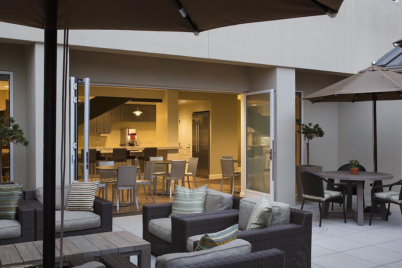 When the NanaWall systems are fully open, the combined spaces are ideal for staff gatherings and events. What had previously been under-utilized areas of the building are now the most popular coffee, lunch, events and work.