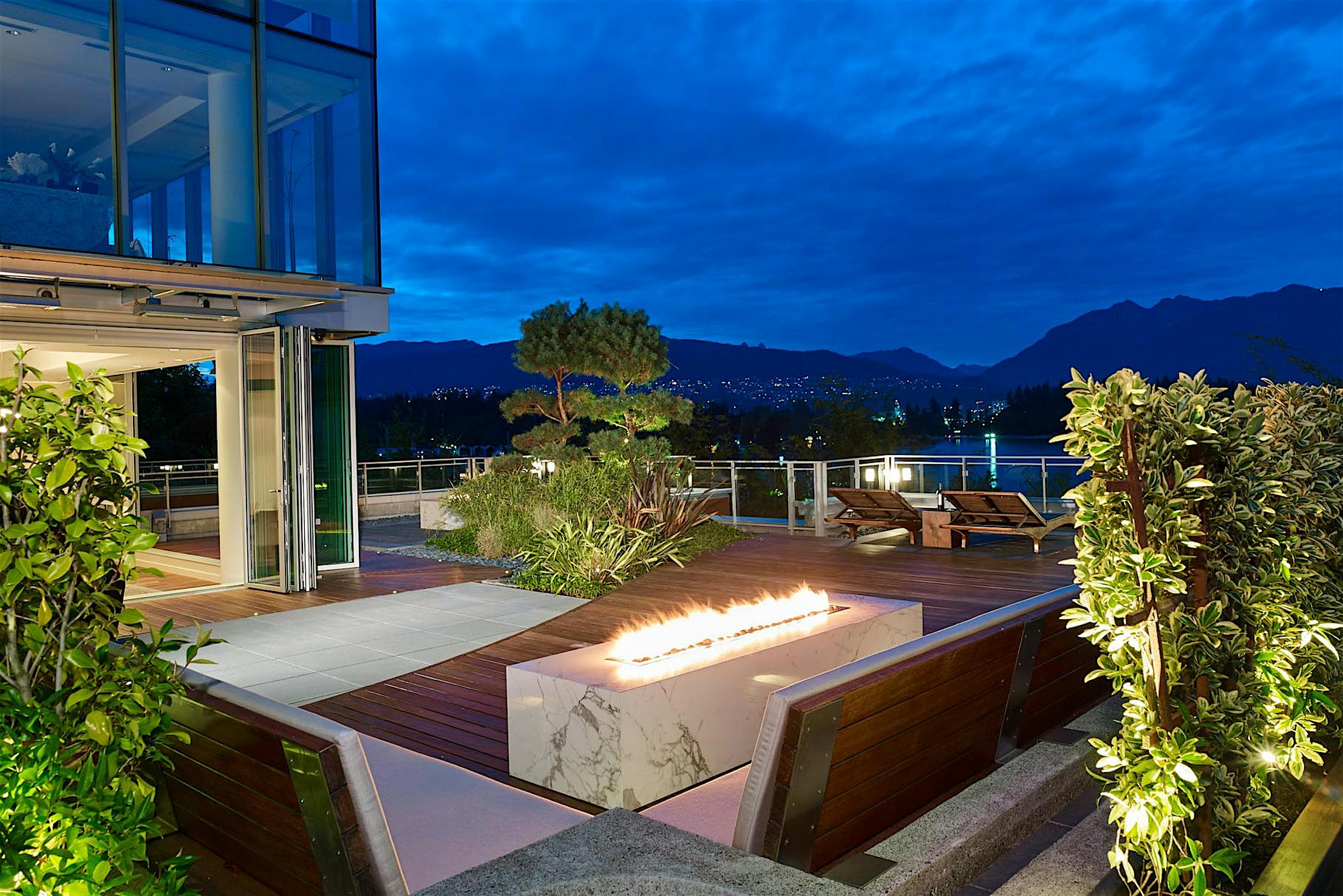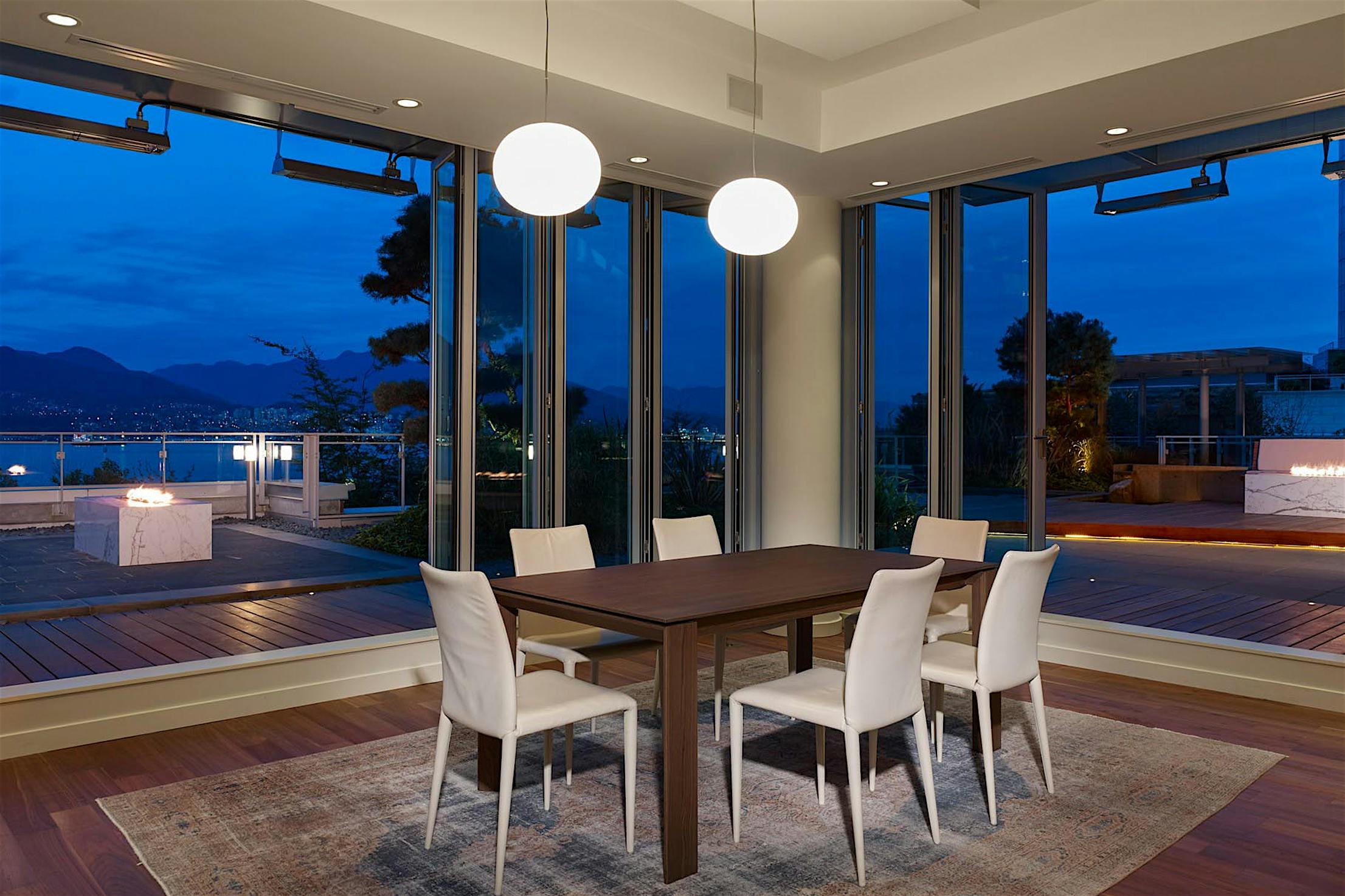 From the glass wall systems leading to the large outdoor patio to the perfectly carved path leading to the boat dock, the home integrates open-air spaces and immersive outdoor recreation experiences.