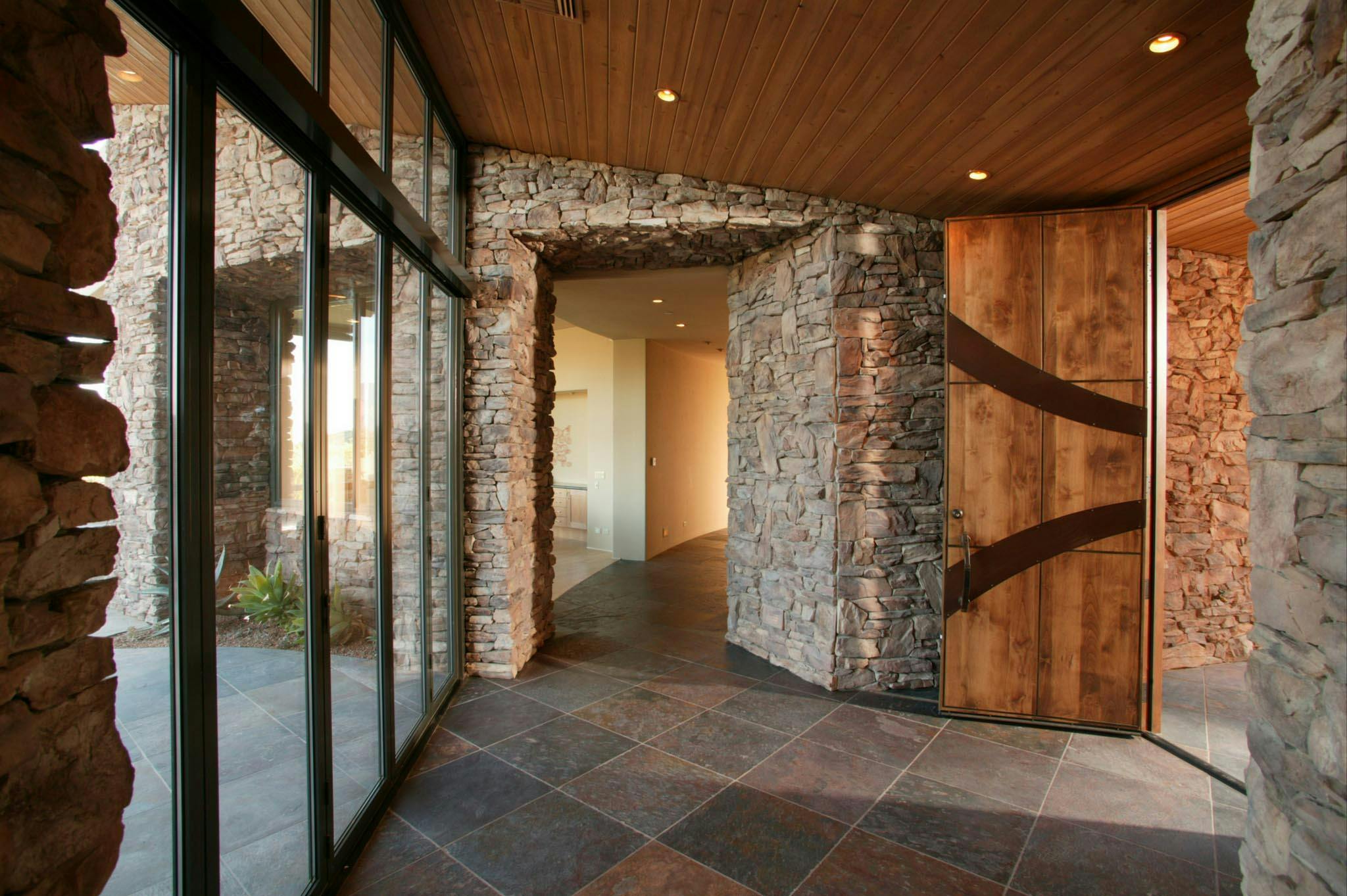 The cornerless operable glass wall wood system for the space is expansive, bringing the passive ventilation inside this architectural masterpiece.
