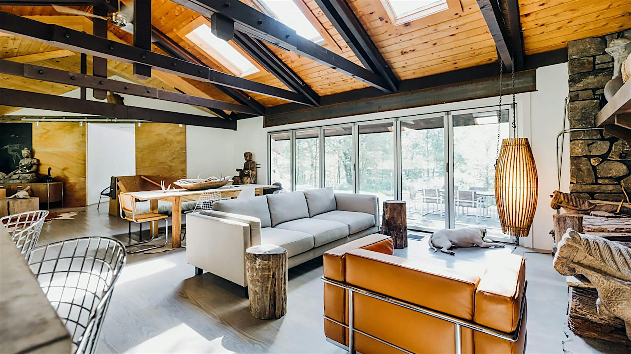 There was one major goal in mind when renovating Kate’s new household: bring the outside in. After 25 years of living in the urban hub of Manhattan and working as a celebrity makeup artist, she was ready for a change of surroundings. With a passion for animals she wanted to transition her life to be more in tune with nature. She decided to ship out to the Poconos Mountains in Pennsylvania to escape the bustle and start an animal rescue non-profit. The homeowner took over an old home in the mountains and a massive 17-acre area to go with it. Although beautiful, the home needed some work. She wanted to change the house the same way she was shifting her life: bring the outdoors in.