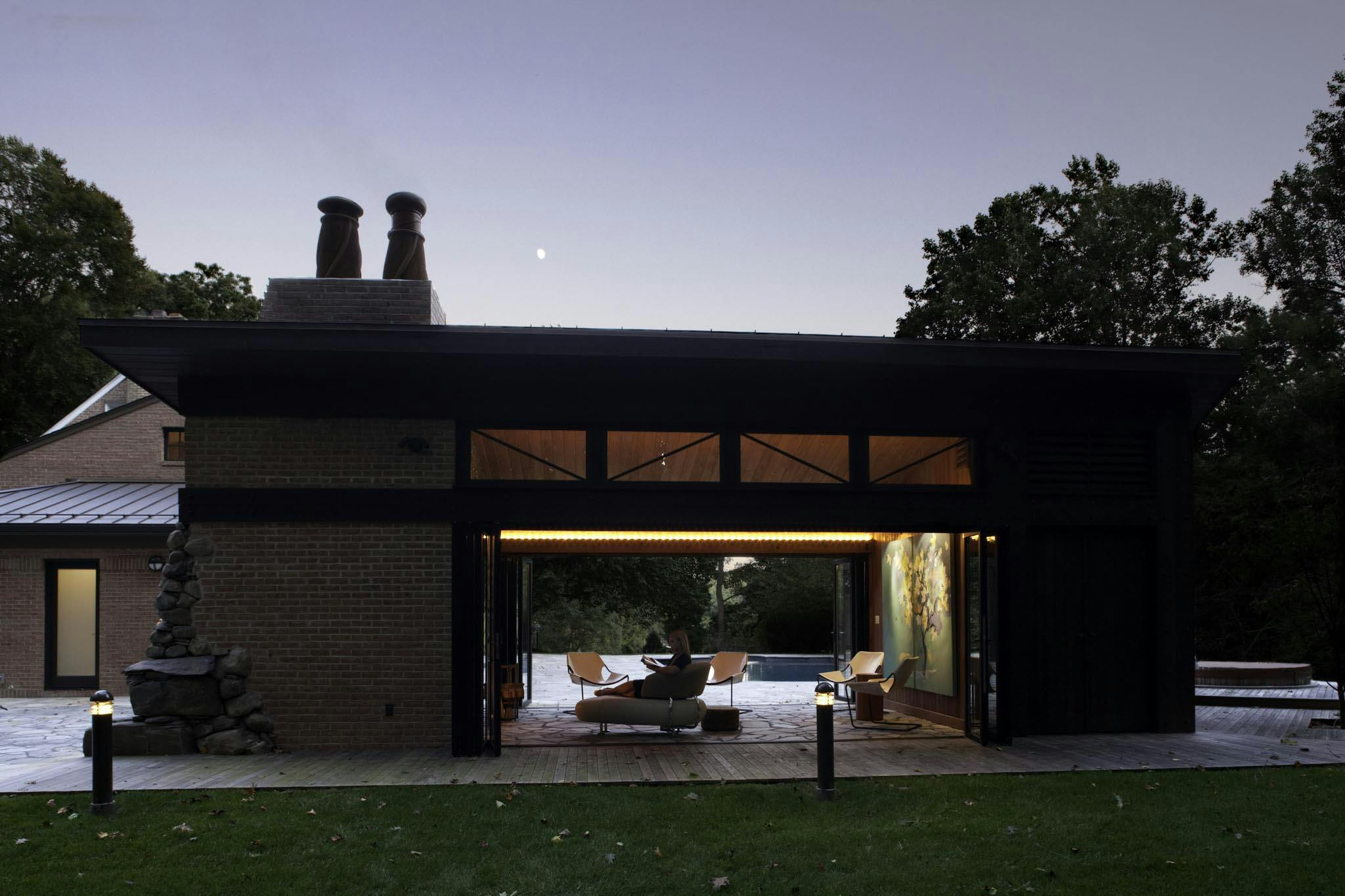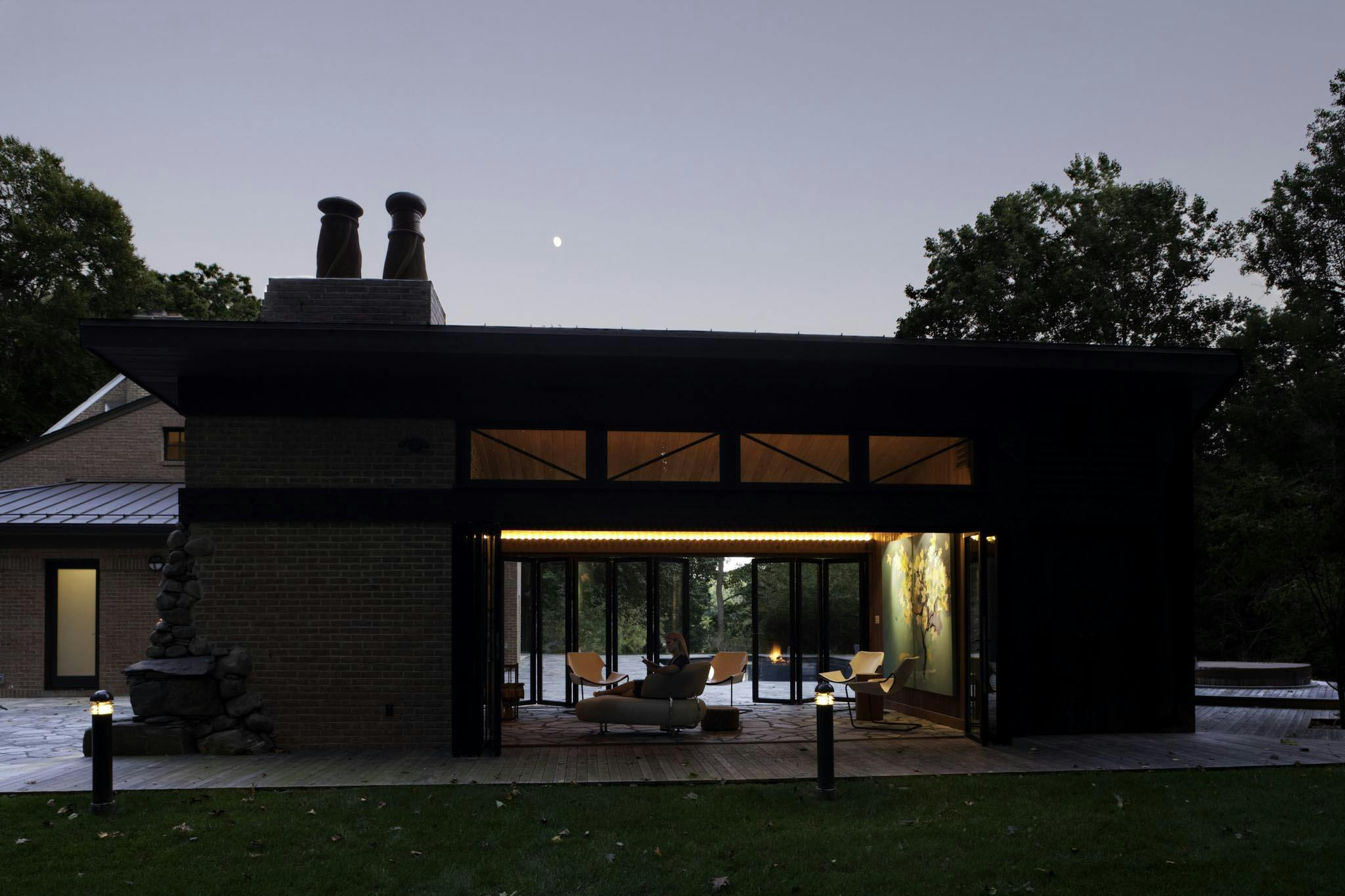“This project was designed to have simple and intimate relationships with nature, featuring a series of interconnected spaces that effortlessly blend with the landscape. The NanaWall folding glass walls seamlessly provide open-air transitions, natural ventilation, and abundant daylight, embracing optimal well-being and curating a blissful waterfront escape through continual connection to the outdoors,”