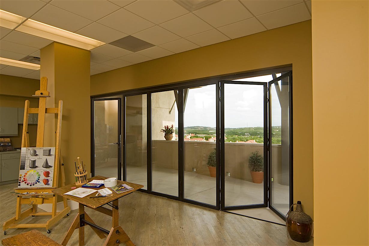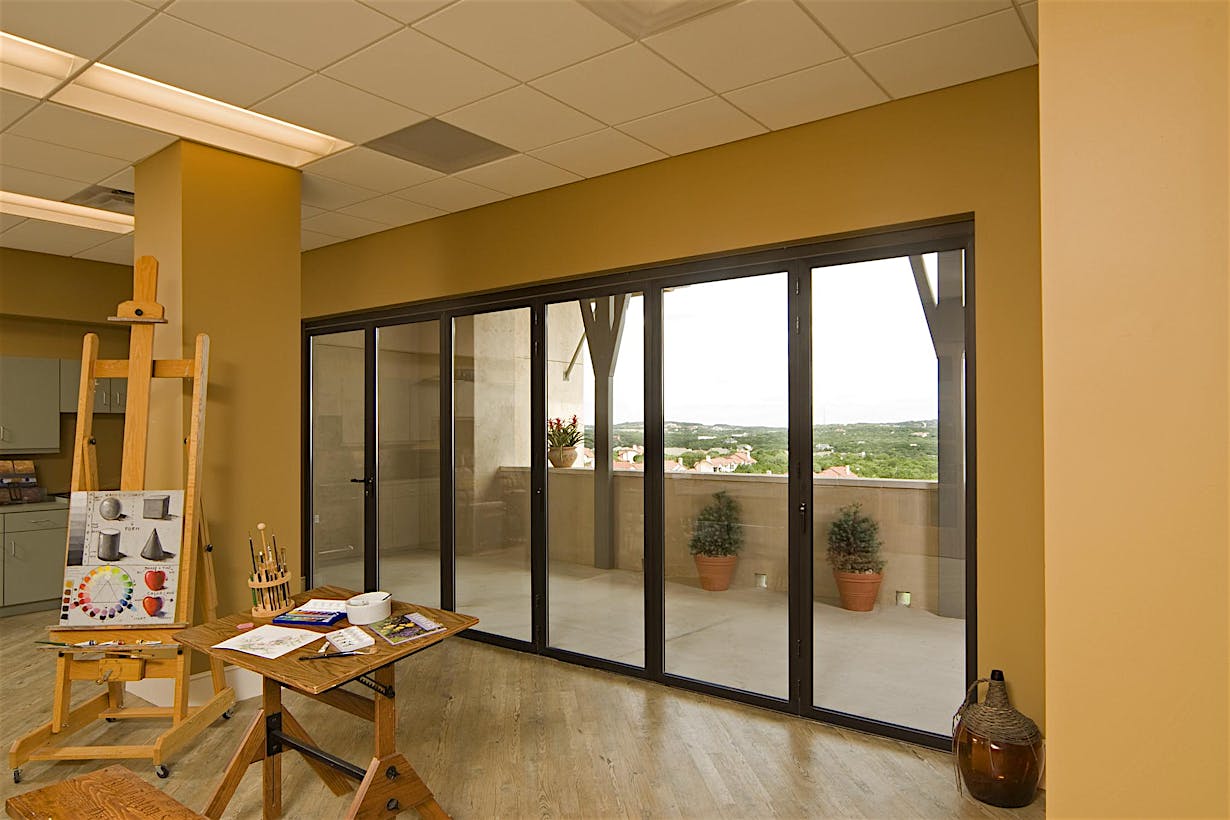 Essential to the Querencia experience is the facility, designed by D2 Architecture. David Dillard, principal at D2, says there is a “cultural marriage between natural world and Austin.” The NanaWall installation in the Fitness and Wellness Center and Art Studio not only enhances but symbolizes this marriage.
