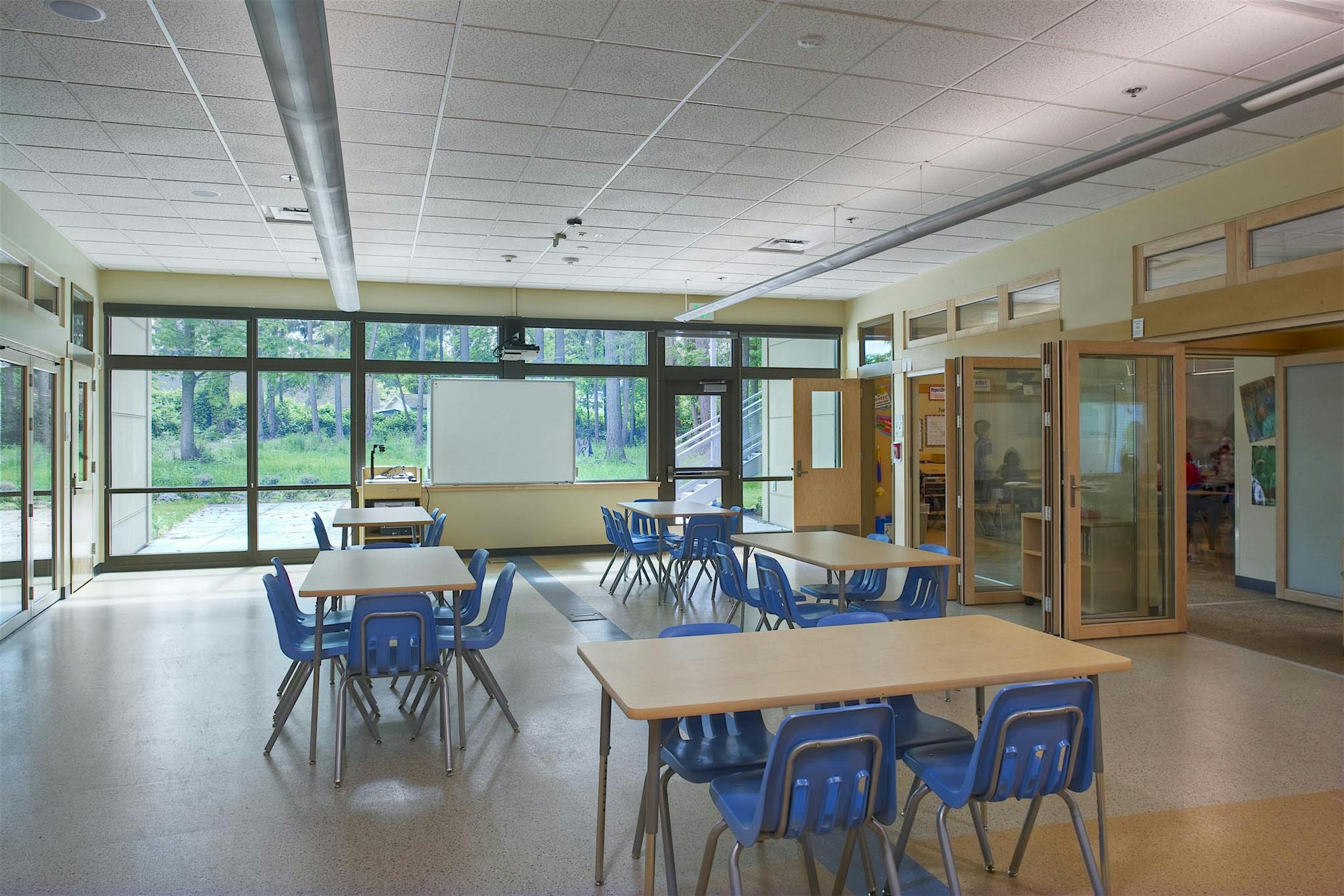 To optimize the limited floor space and increase the classroom flexibility at Burleson Elementary, two NanaWall SL45 systems replaced fixed walls to create a new multipurpose FlexSpace.