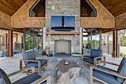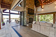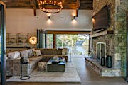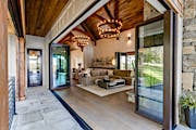 The two NanaWall open corner bifold glass doors were specified on either side of the living room, in cornerless configurations that allow the space to open on three sides. A grand fireplace chimney made of natural stone meets the two systems in the middle, serving as a stylistic divider without interrupting the flow. The nearly 9-foot-tall doors effortlessly extend the interior living areas to the open-air deck, offering more space when entertaining or simply enjoying the fresh air.