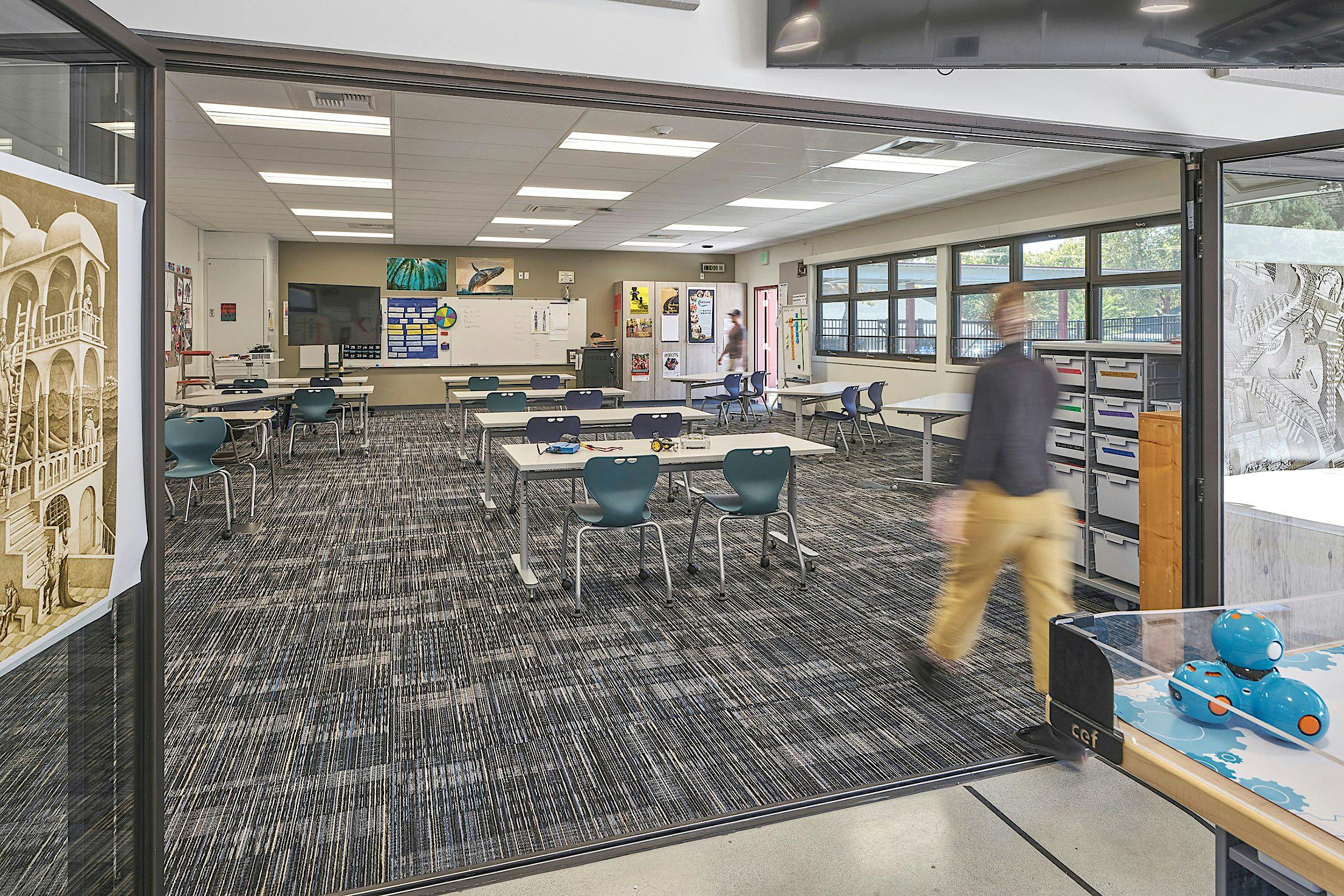 “FoldFlat folding doors move completely out of the way, so there’s no safety issue for students or teachers. They also close and open seamlessly, which is nice”