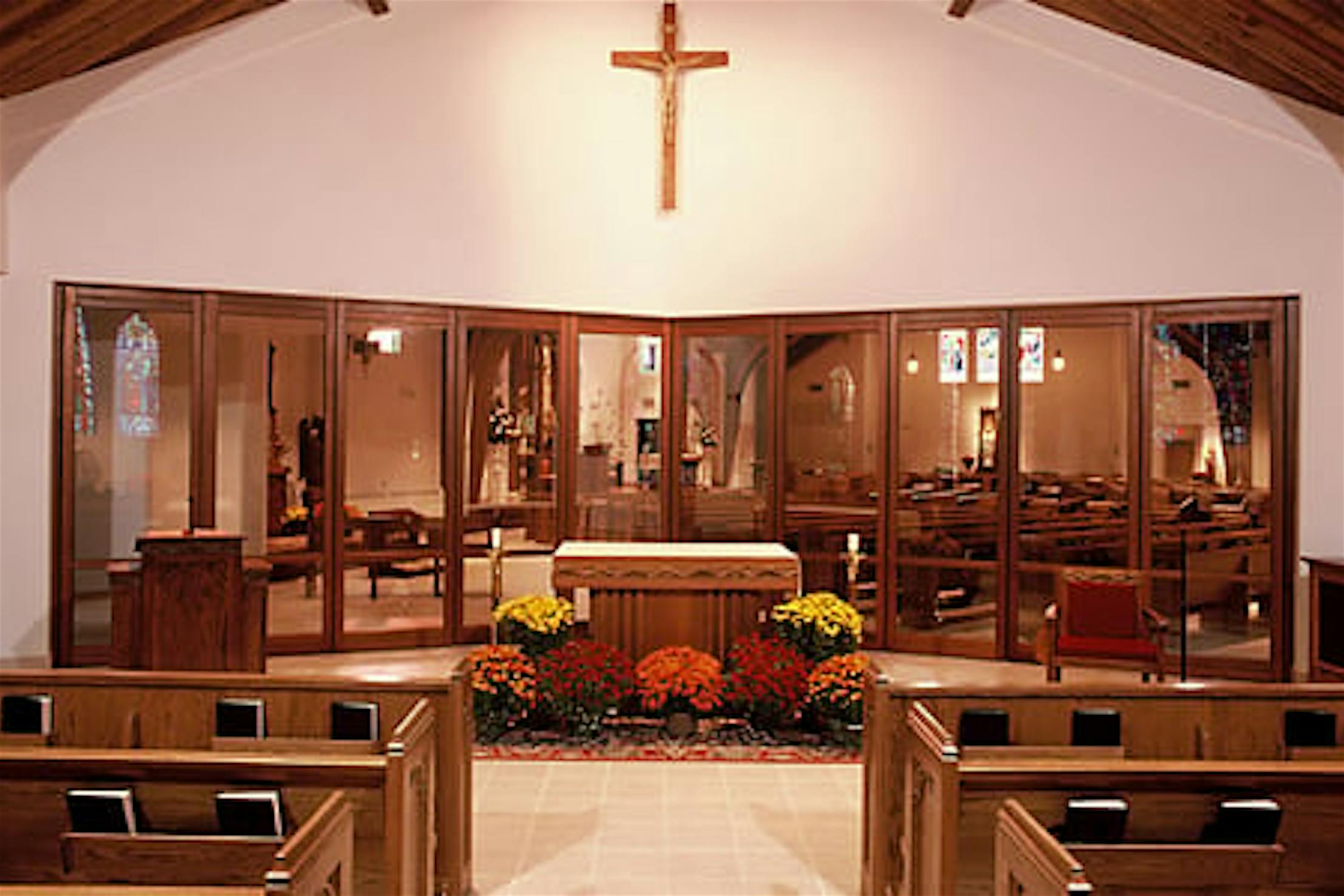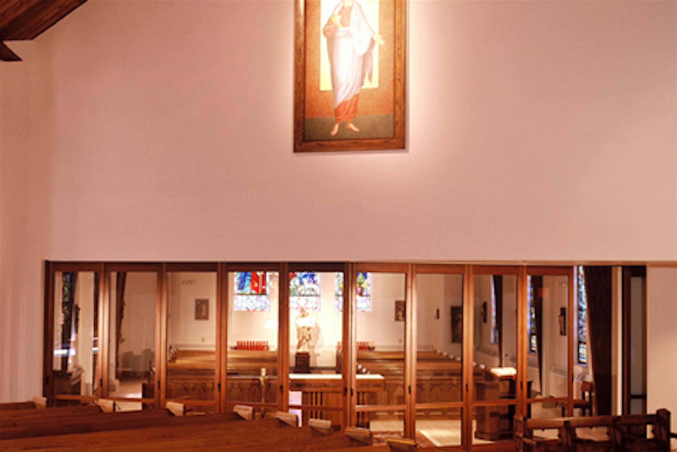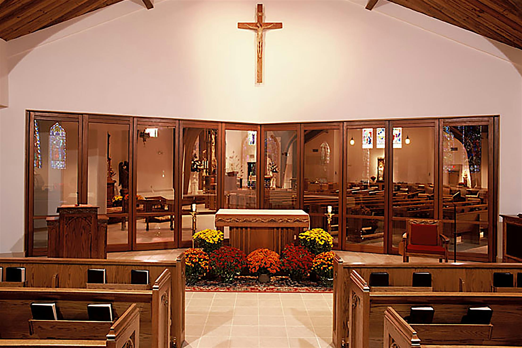 St. Anthony of Padua Parish occupies a site in Ambler, Pennsylvania, 16 miles north of Philadelphia. The church was designed with two separate but adjoining worship spaces. To meet project goals requiring both visibility and noise attenuation, the design team installed an exquisitely integrated NanaWall installation to separate the chapel and nave.