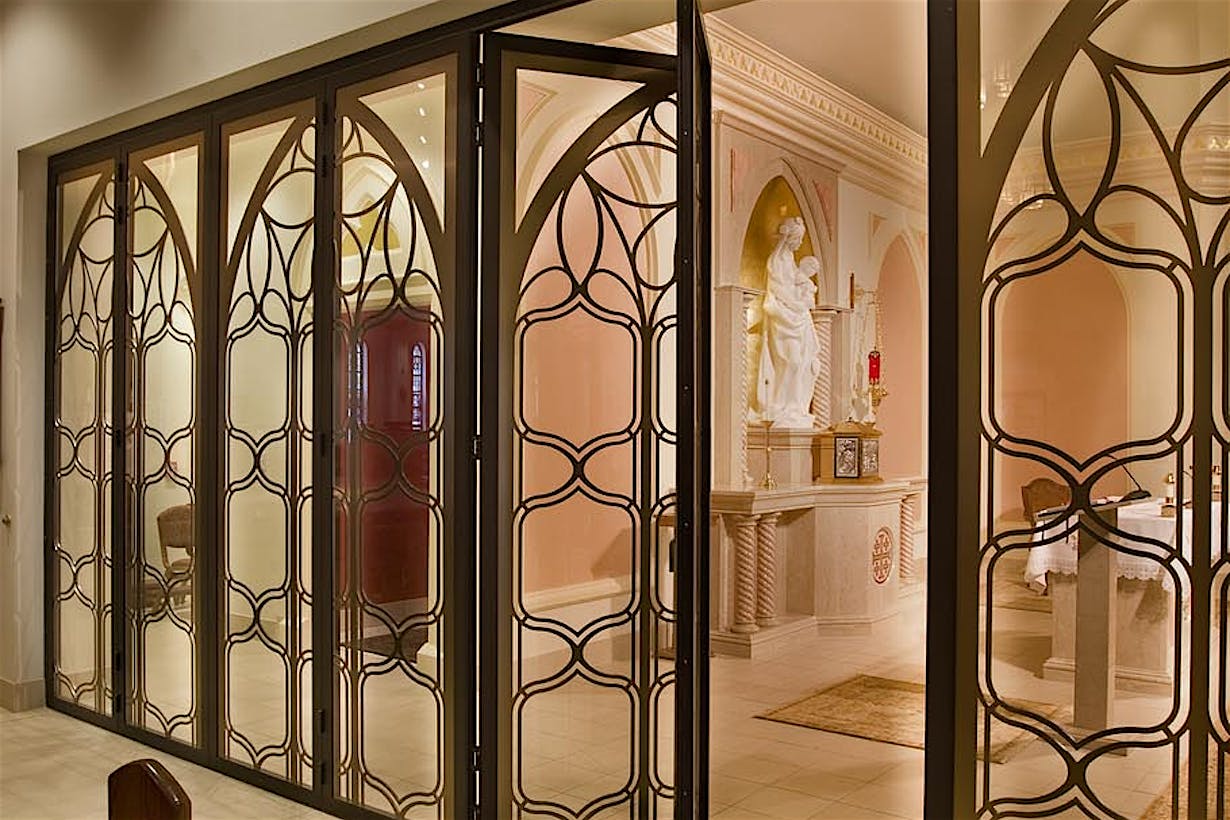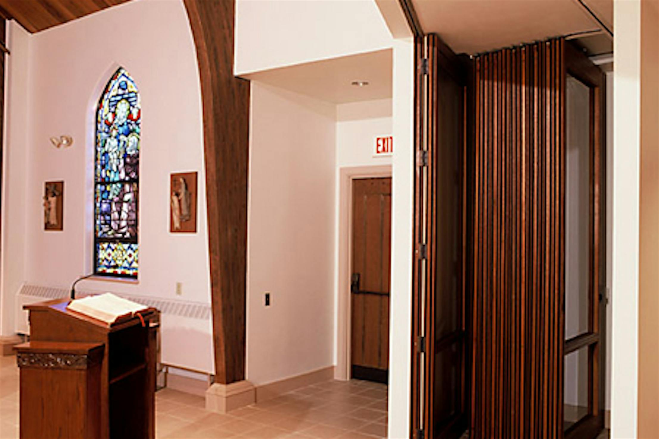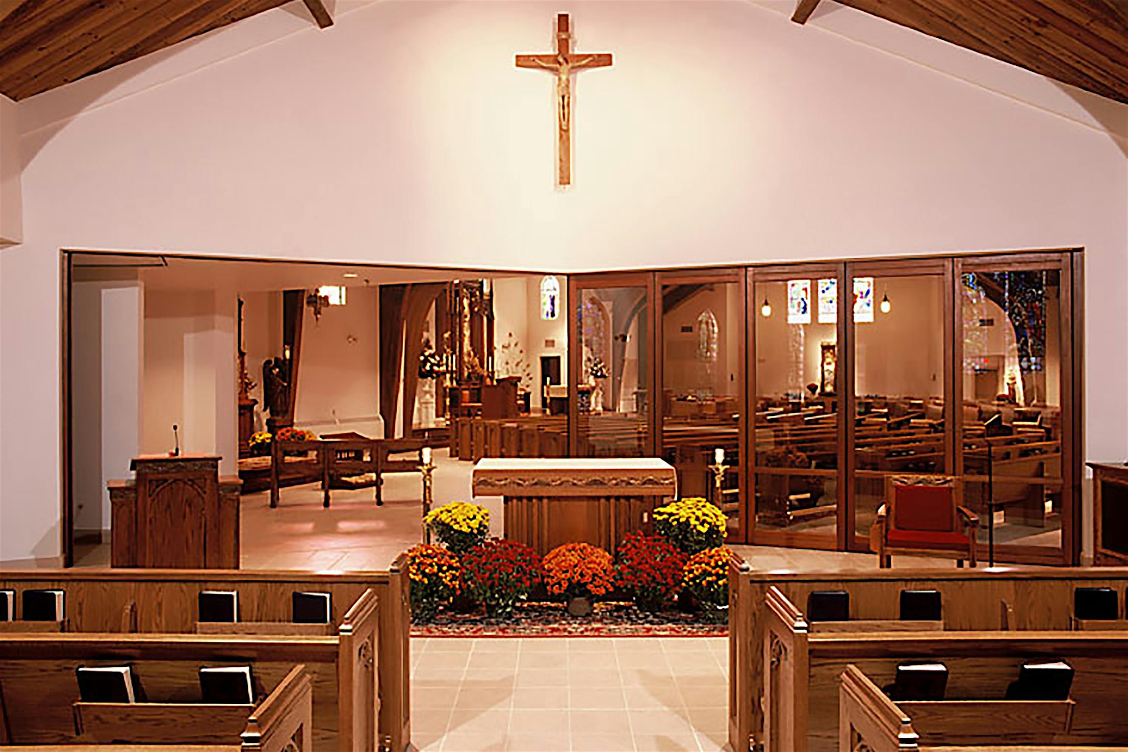 St. Anthony of Padua Parish occupies a site in Ambler, Pennsylvania, 16 miles north of Philadelphia. The church was designed with two separate but adjoining worship spaces. To meet project goals requiring both visibility and noise attenuation, the design team installed an exquisitely integrated NanaWall installation to separate the chapel and nave.