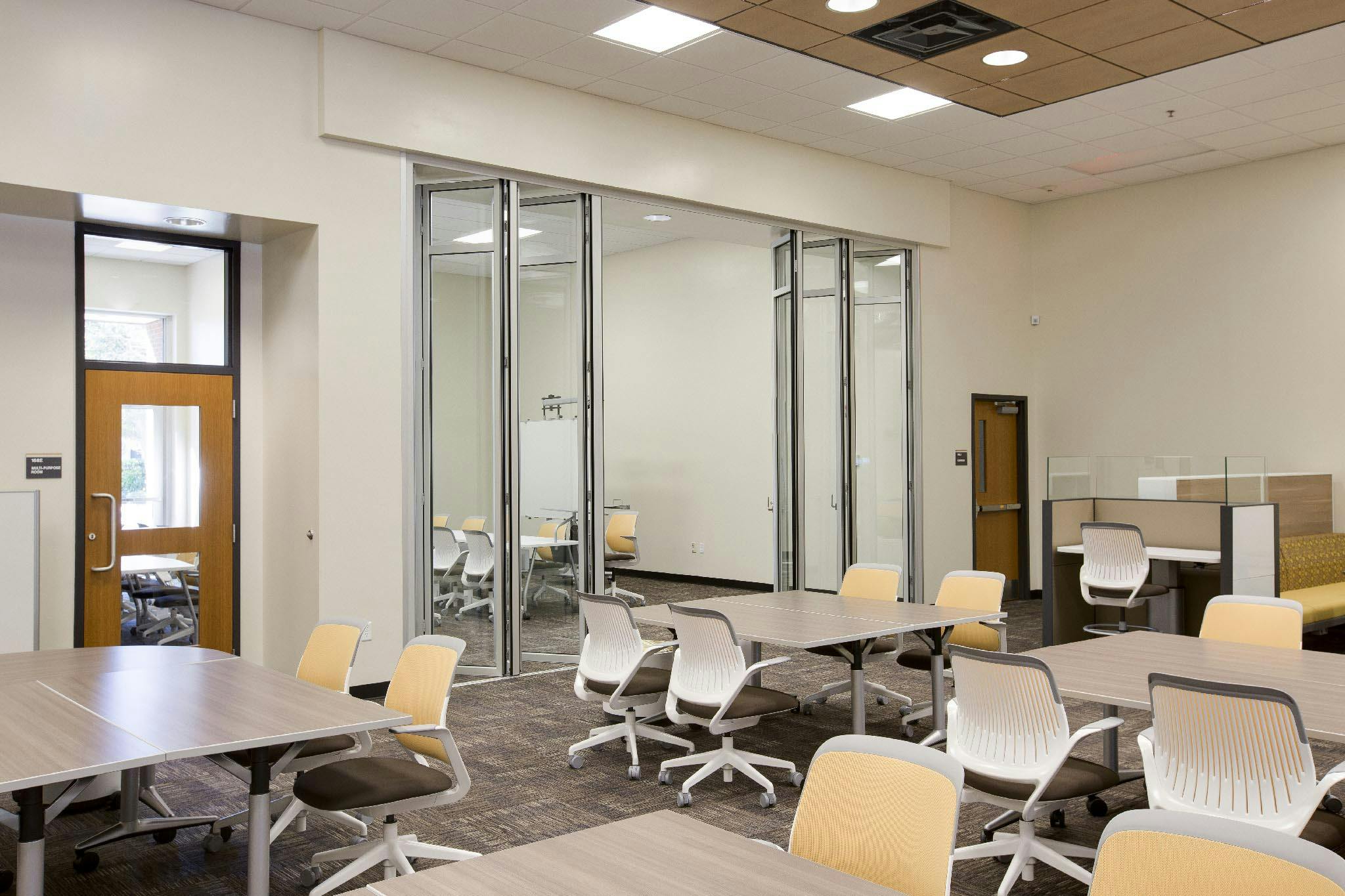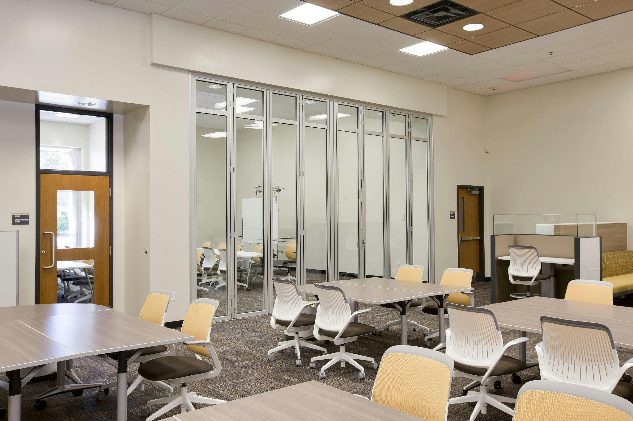The vision at this Florida school was to transform an existing educational space by partitioning it by function and group size, utilizing a folding glass wall.