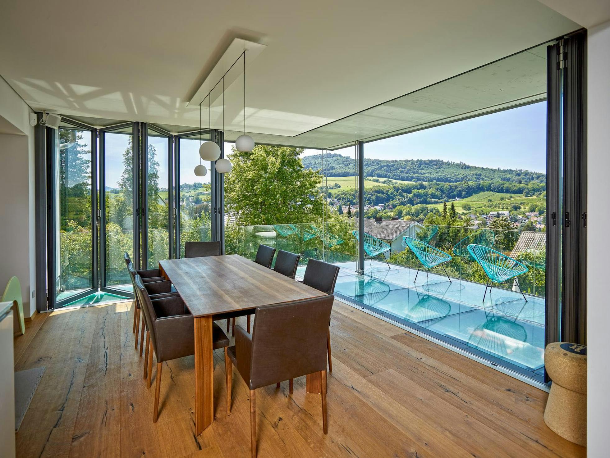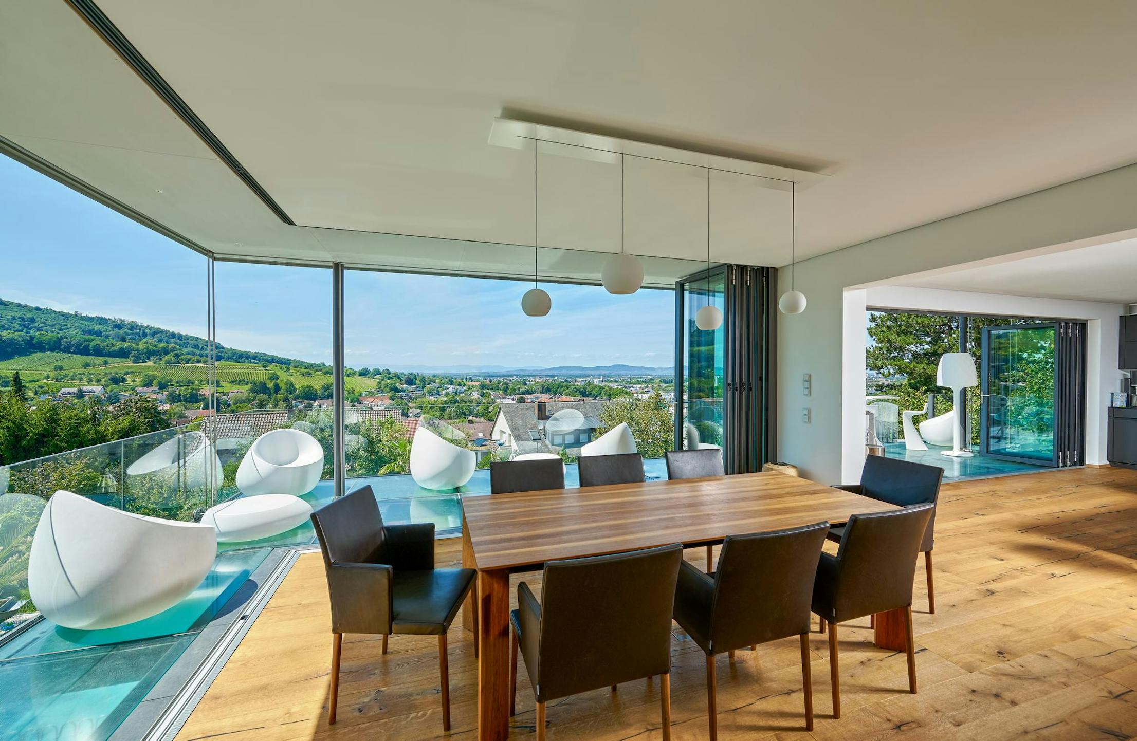 Providing a continuous indoor/outdoor experience, where the house opens completely to the outside without delineating a boundary, was essential in this contemporary residential project. HSW60 stacking glass doors system was the specified solution.