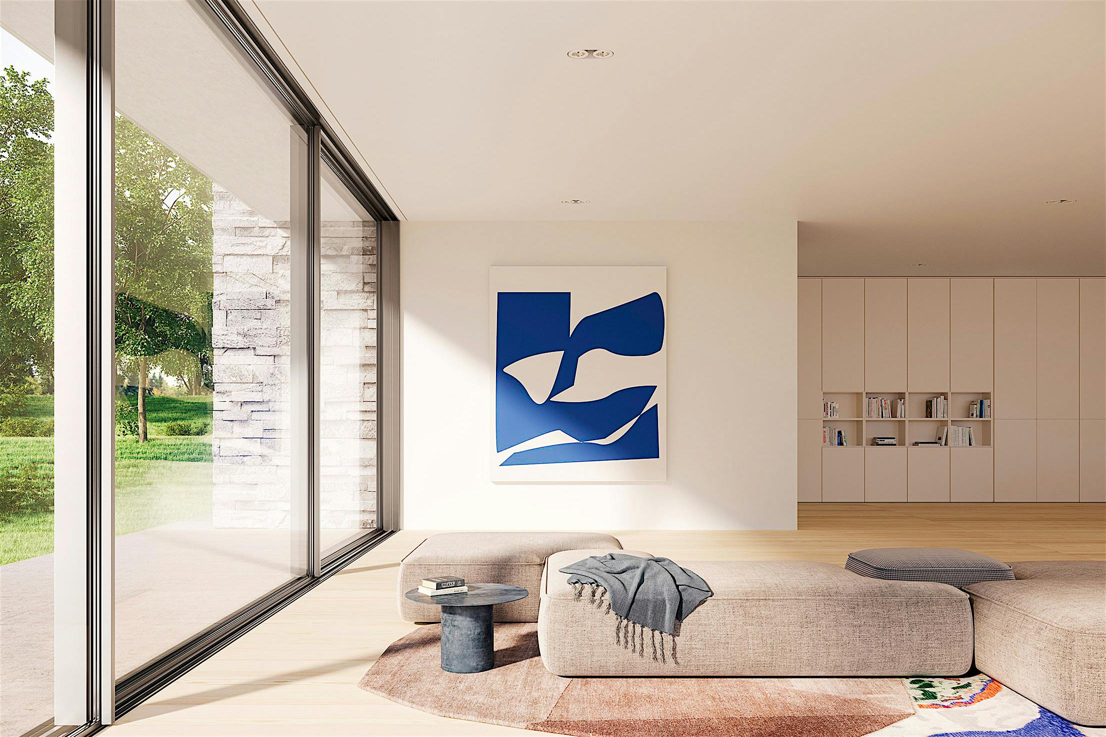 Folding glass patio doors in modern residential enhance seamless indoor‑outdoor flow.
