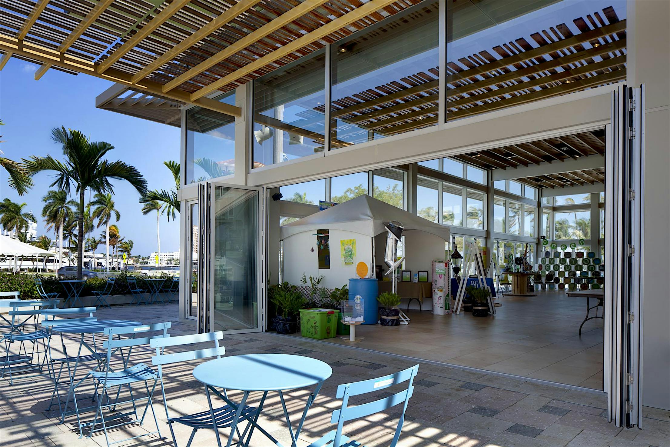 The modern architecture of this Palm Island residence is complemented by the clean lined, NanaWall SL73 Aluminum Framed Thermally Broken Hurricane Approved Folding System which is used within four openings on the façade.