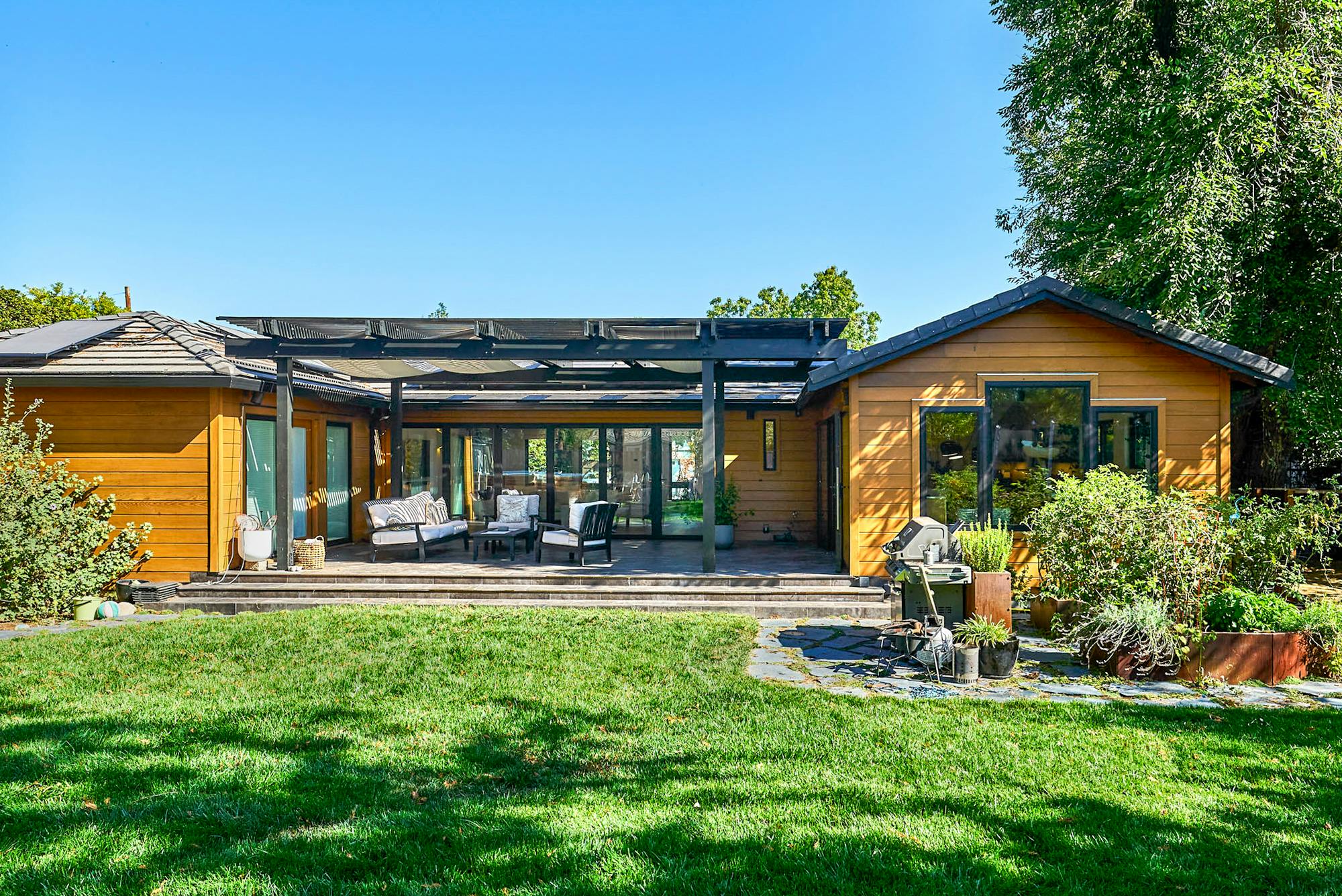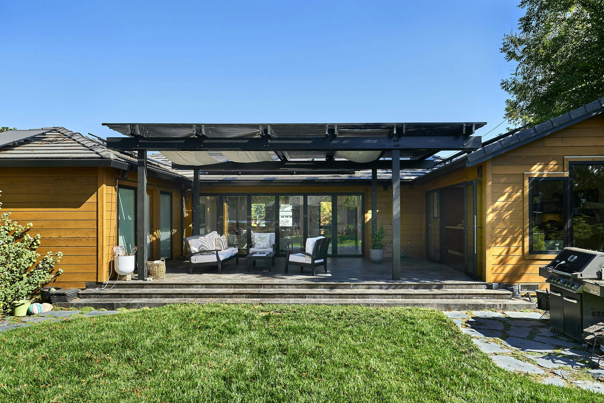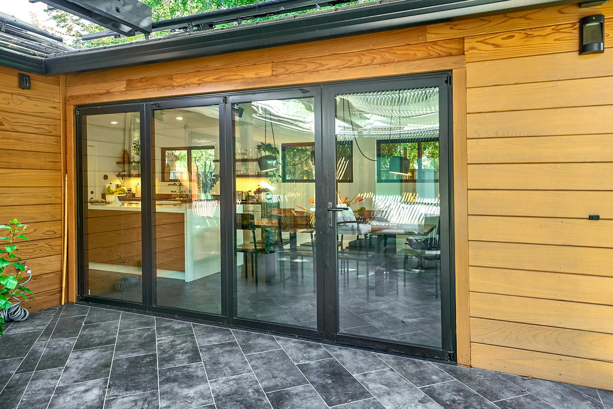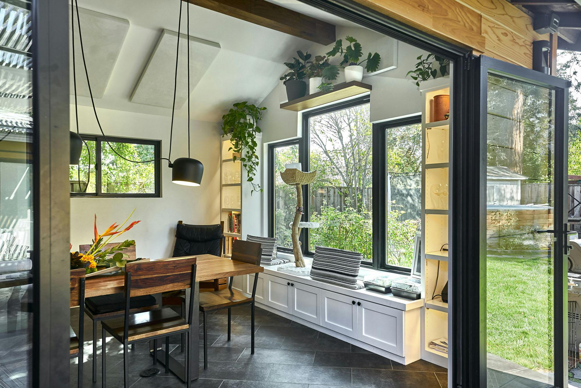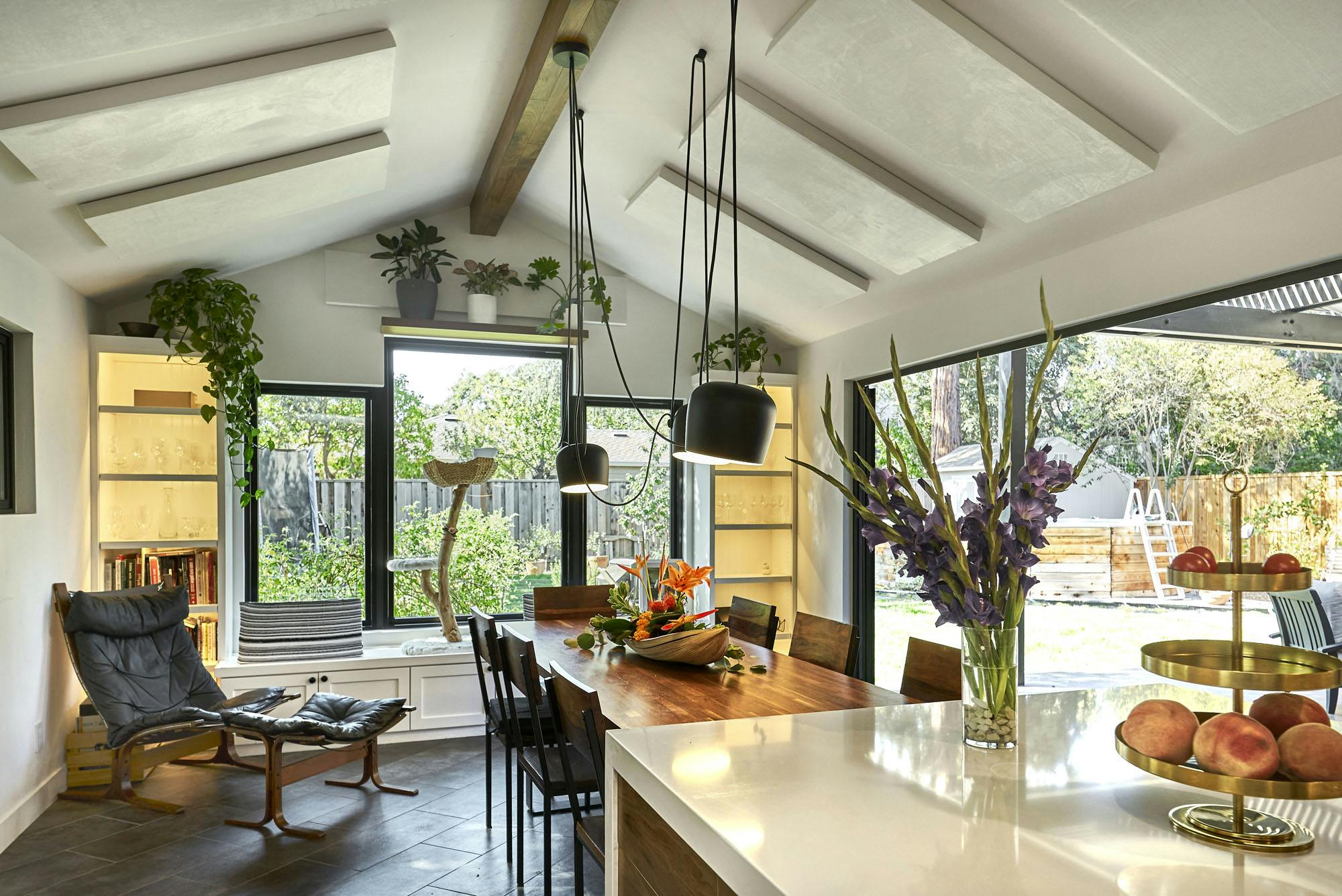 When the folding glass doors at this California home open, the outdoor living space effortlessly becomes an extension of the home. Designed by Brad Cox Architect, the opening also enhanced the mood and comfort of the dining room and kitchen.