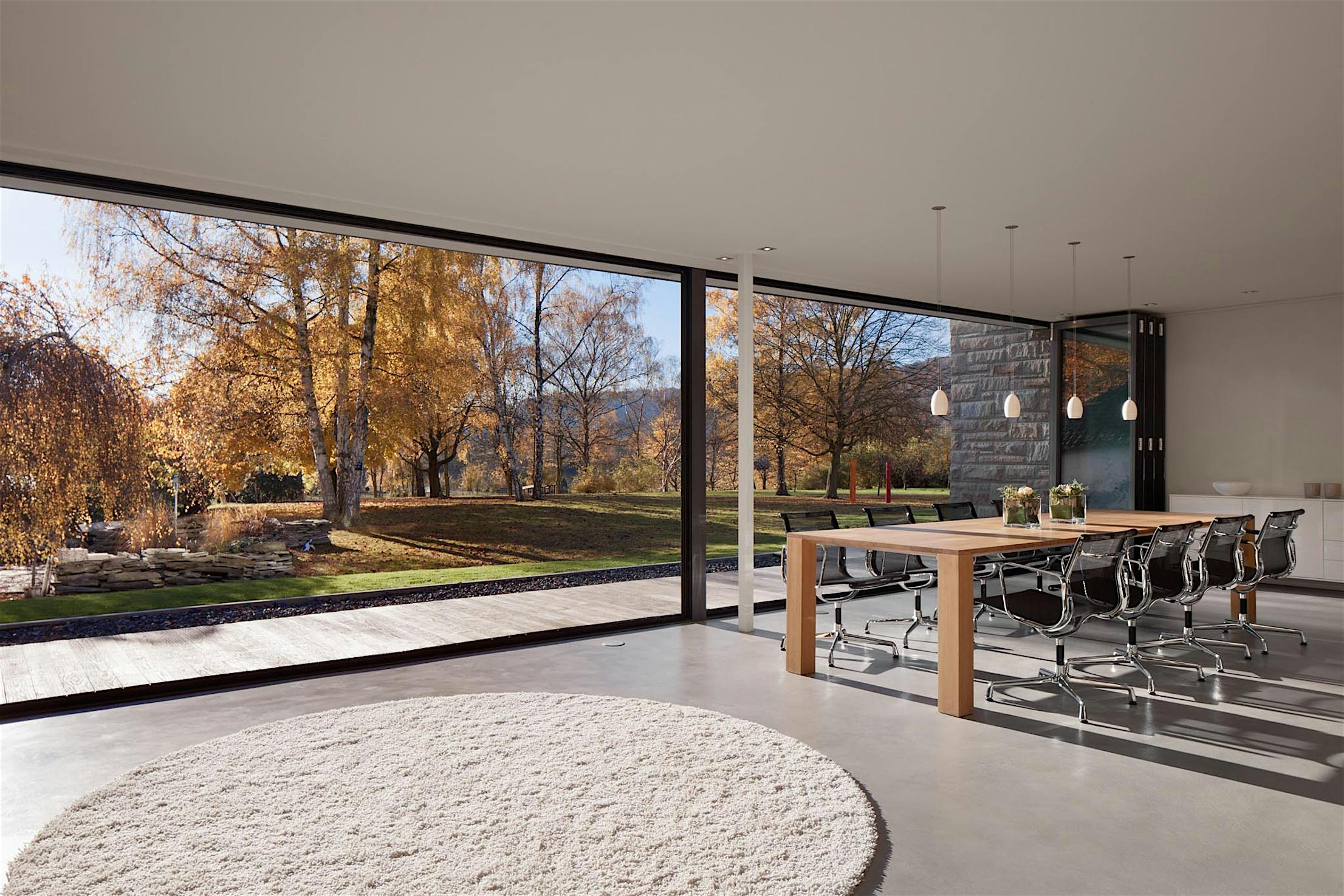 The glass wall system is made of individual panels, each running along a single track and providing effortless design flexibility.