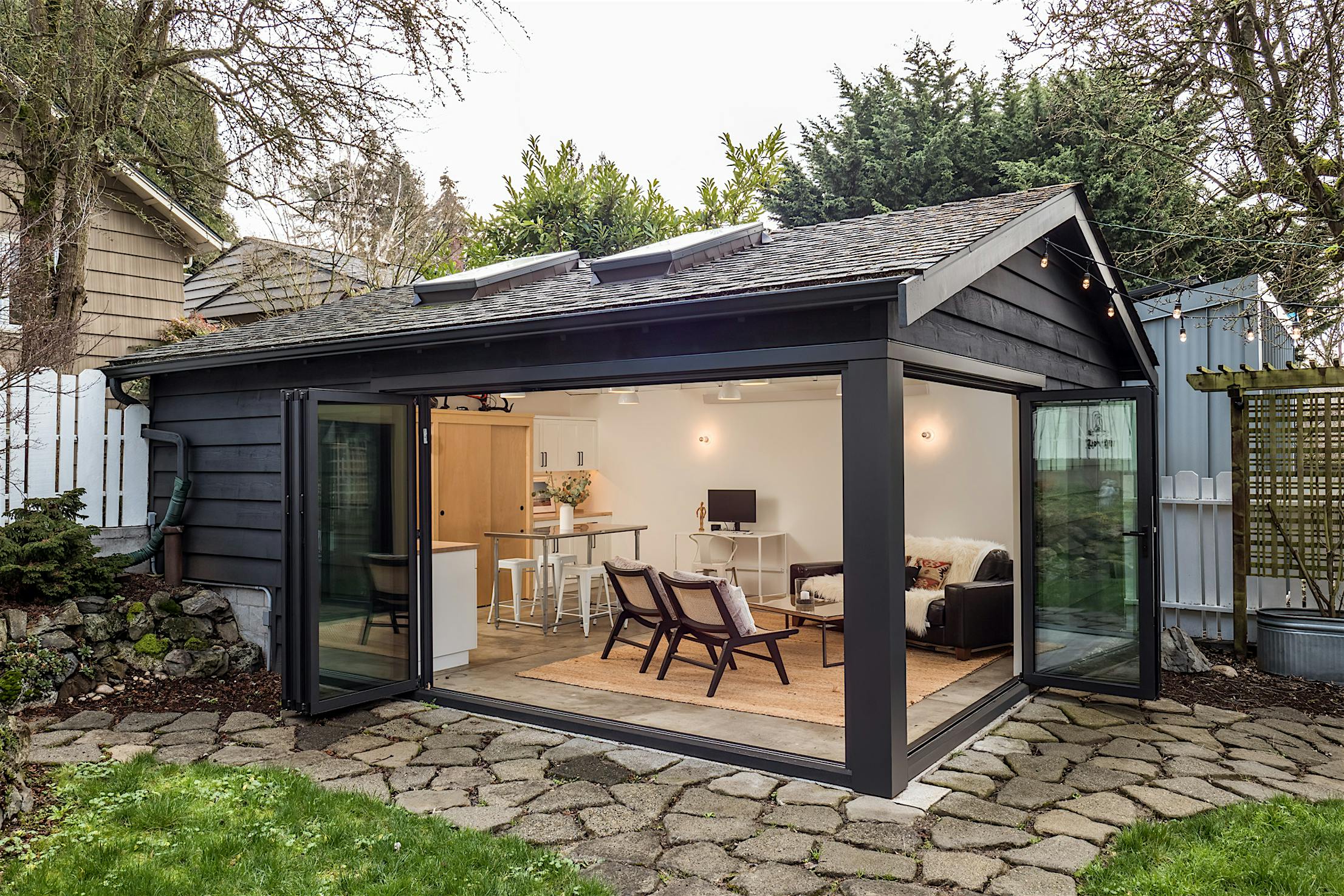 Opening glass walls are key to space maximization in smaller dwellings to optimize functionality and create truly versatile ADUs.